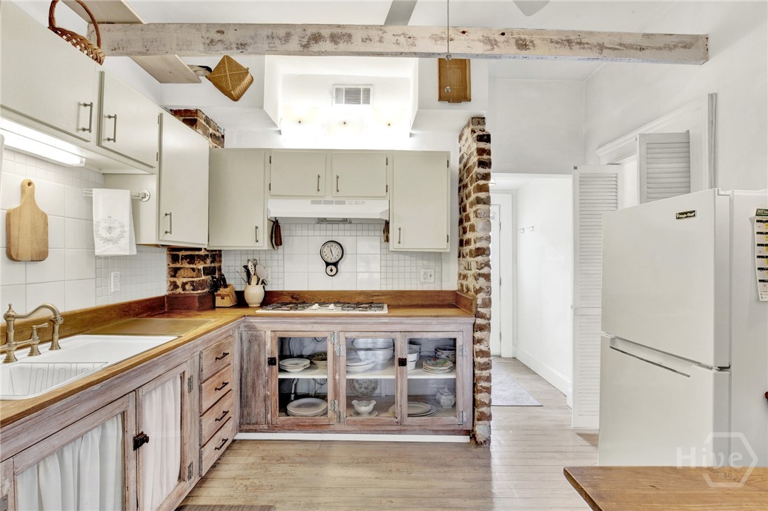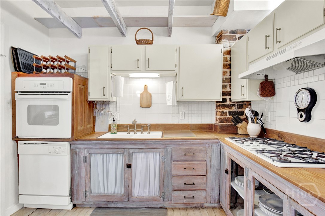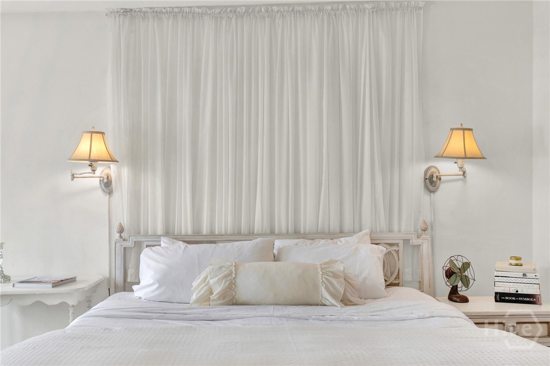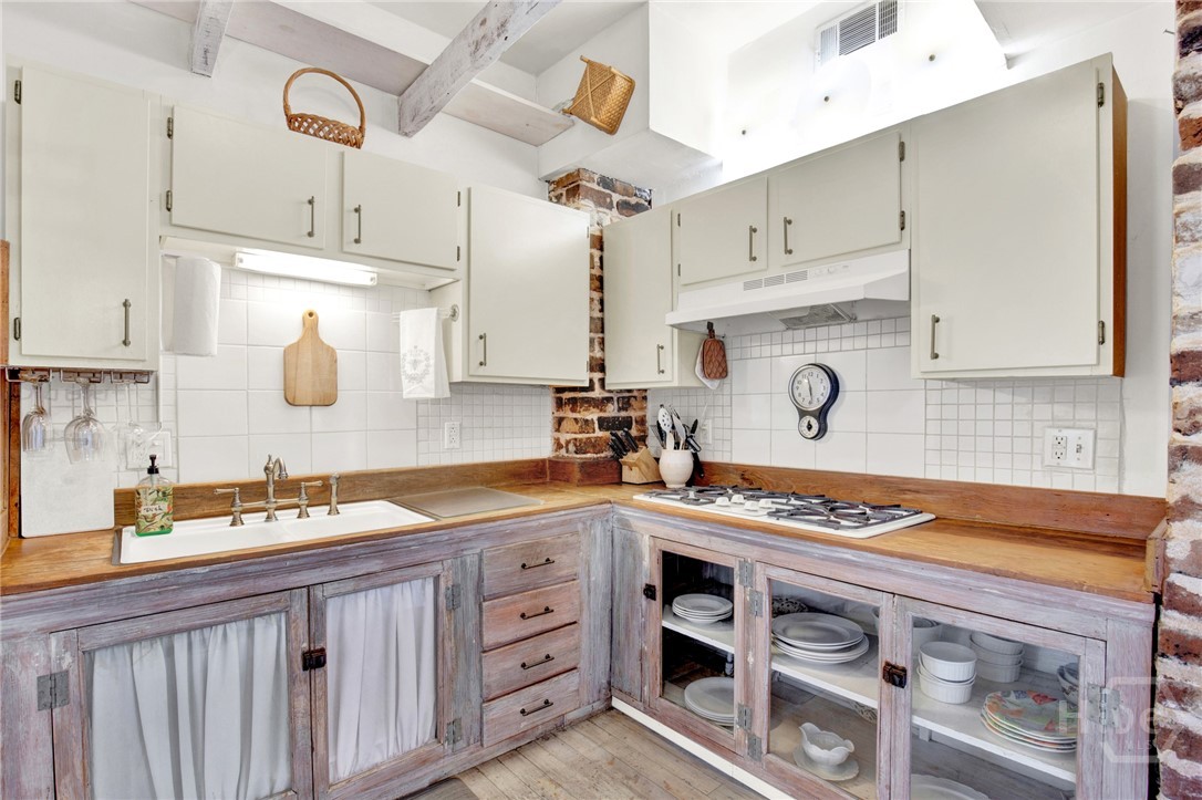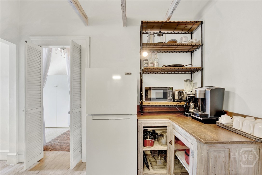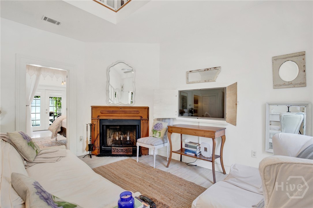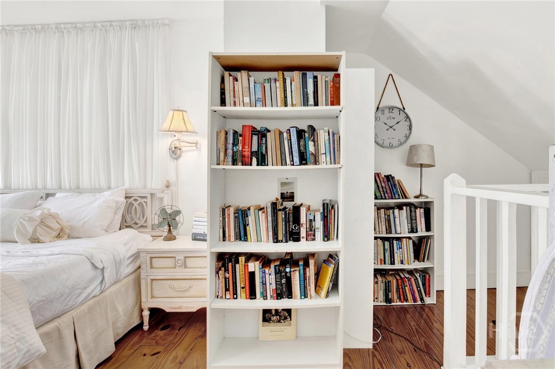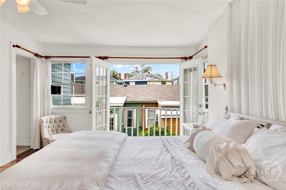 The property holds a non-owner occupant STVR license and is currently in use as a STR. Tucked away on a quiet street in Savannah’s Landmark Historic District, and walkable to everything Historic Savannah has to offer, this 1890 2 bedroom 2 bath townhome exudes French cottage style with it’s simple but elegant decor, neutral colors and bright airy spaces. Step inside to the light filled main level with original pine flooring, exposed brick accents and vaulted living room with a fireplace. Also on the main level is a fully equipped kitchen, guestroom, full bath with clawfoot tub and private rear deck. Upstairs, the dreamy primary loft includes a full bath, built-in bookcases, and french doors to a balcony overlooking the deck below. Recent updates include a new roof, interior and exterior paint, new HVAC, new water heater and more. This home is being sold furnished and turnkey.
