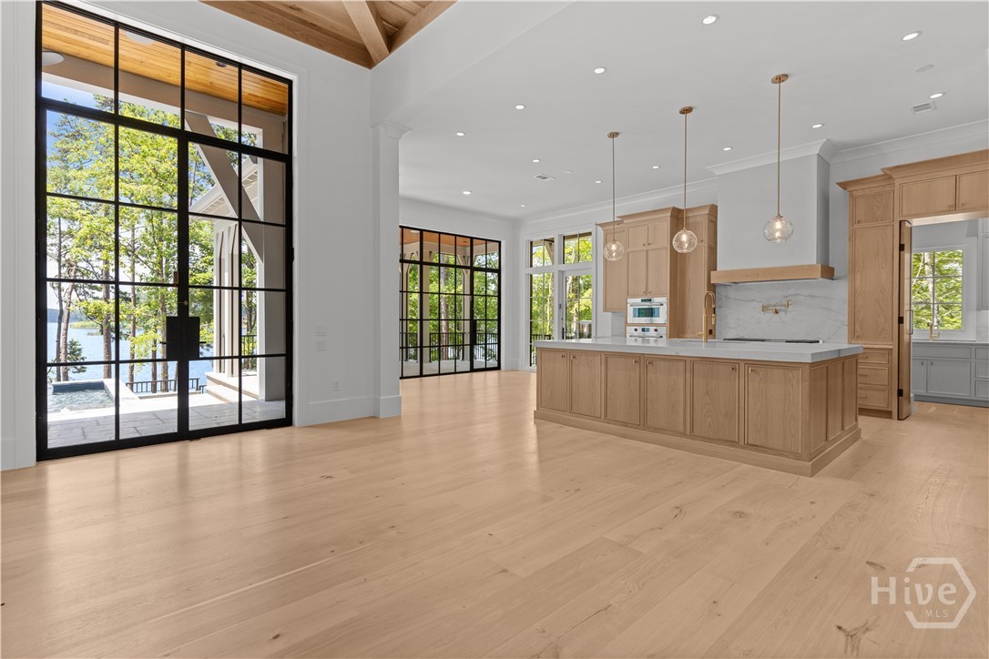 WELCOME TO THE PINNACLE OF LAKESIDE LUXURY, NESTLED WITHIN THE PRESTIGIOUS ENCLAVE OF RICHLAND POINT AT REYNOLDS LAKE OCONEE. This brand-new custom masterpiece redefines luxury living with its breathtaking design and exquisite attention to detail. This property offers an extraordinary lifestyle, where every element exudes elegance and grandeur. Spanning an impressive 9,818sf of heated living space, this home provides a seamless blend of contemporary style and timeless charm. The wide-plank European oak wood floors and solid oak beams accentuate the grandness, while the quartz and natural stone countertops add a touch of refined sophistication. The marble and Thasos shower walls and marble floors in the bathrooms elevate the aesthetic to unparalleled heights. Featuring six ensuite bedrooms and eight full bathrooms, with an additional two half bathrooms, this home ensures comfort and privacy for all. A flex room above the garage with a full bath offers an array of versatile living options as a teen suite, bunk room, home gym or studio. The thoughtfully designed main level hosts expansive lounge and dining areas, gourmet kitchen featuring custom cabinetry, top quality appliances and scullery. Adjacent you will find an office, elevator and your wet bar and wine/bourbon room, featuring a Sub-Zero wine tower. Three laundry quarters are available: one in the primary suite, one on the main level, and one on the second floor. Here you will find an elevated space with wet bar that is enhanced with coffered ceilings, custom built ins, floor to ceiling windows and doors opening to a balcony that provides breathtaking pool and lakeside views, while the terrace level space is pre-wired for a potential movie room, offering an immersive home theater experience. Set on a sought-after point-lot with 480' of shore & over 240° of water-view, each room in this home offers expansive vistas of the serene Lake Oconee. The three-level terraced infinity pool, spa and natural stone sun decks create a sanctuary of leisure and tranquility. This extraordinary residence is not just a home; it is a statement of luxury and a testament to the art of fine living. Discover the epitome of elegance at Reynolds Lake Oconee, where every moment is a masterpiece, and every view is a canvas of perfection. Schedule your private tour today and step into a world of unparalleled luxury. Seller is making a Club Membership available to enjoy all that this exceptional community has to offer its residents.