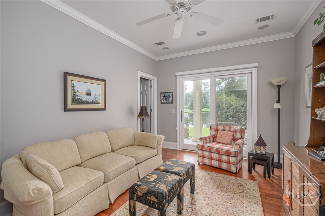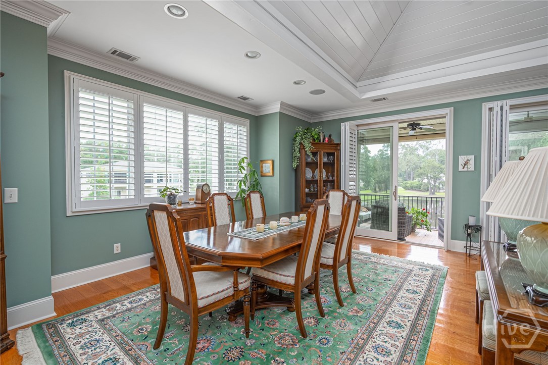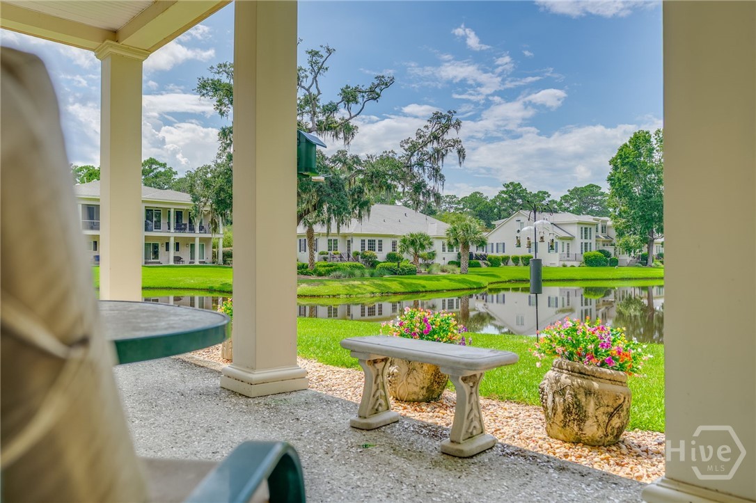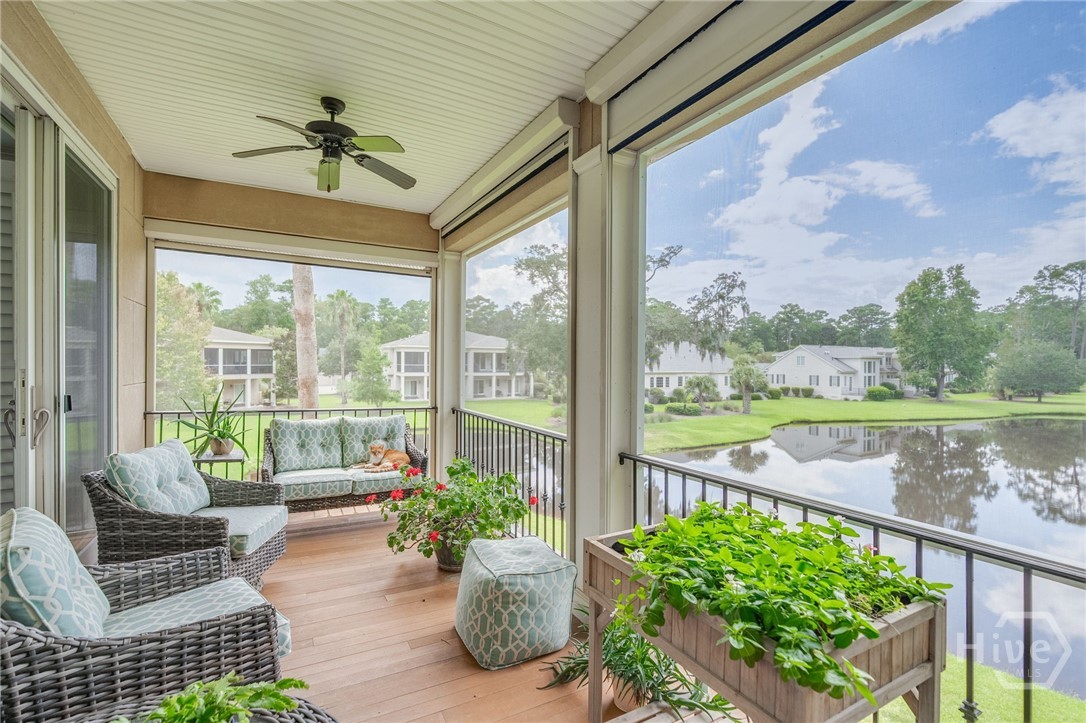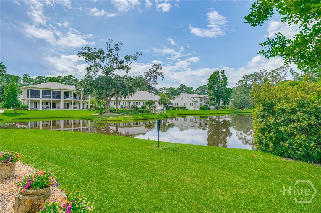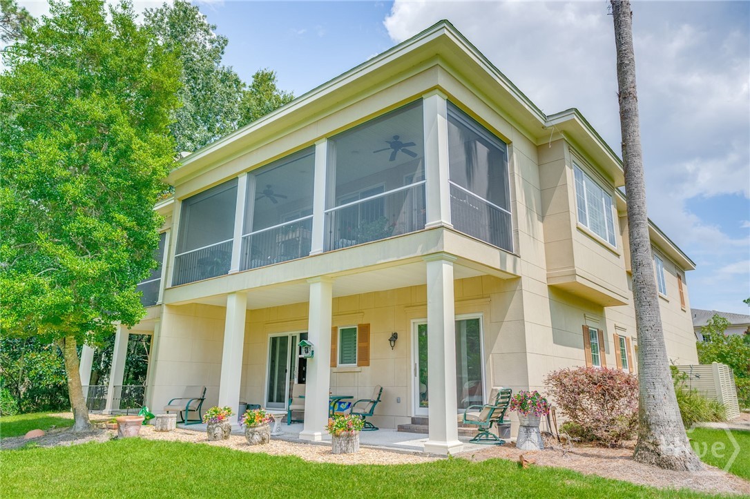 This stunning 3 BR 3.5 Bath townhome combines luxury living with serene lagoon views. Designed with an open airy floor plan it features vaulted ceilings, hardwood floors throughout, a gourmet kitchen, and spacious living areas that flow seamlessly to a screened porch and covered porches on main level. Large master BR and 2 guest BR each with their own private baths for ultimate comfort and privacy. An elevator provides easy access to all levels. Two car garage with separate golf cart space and extra storage space. Enjoy low maintenance living with more time to enjoy all that The Landings has to offer.