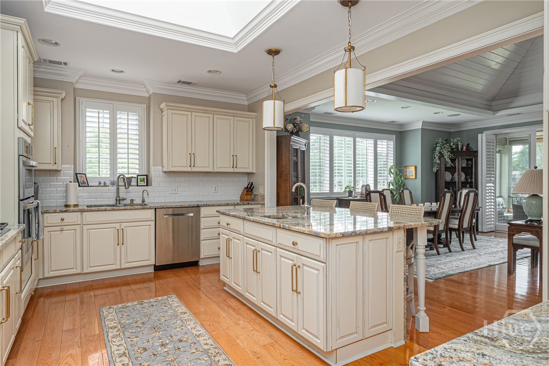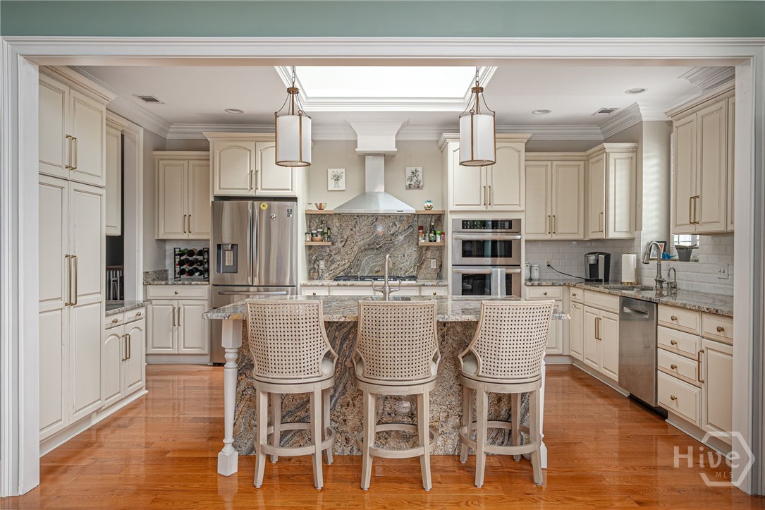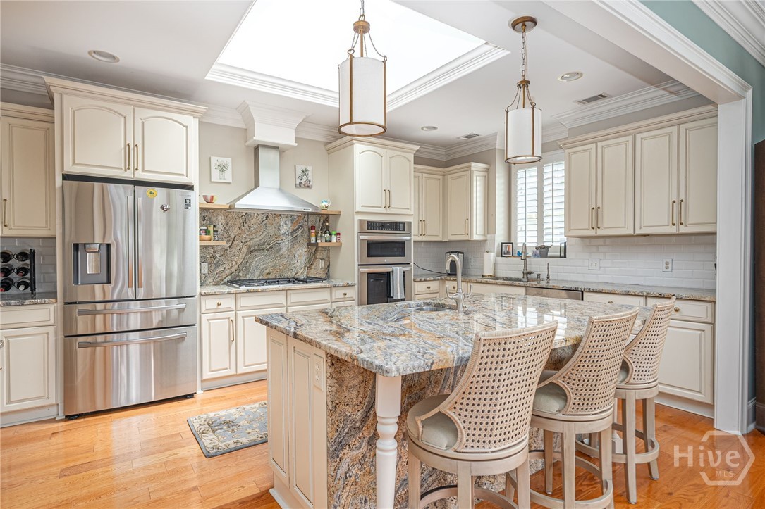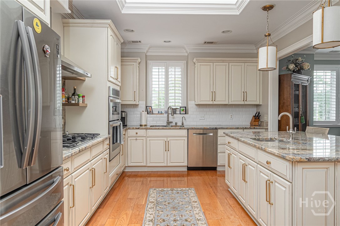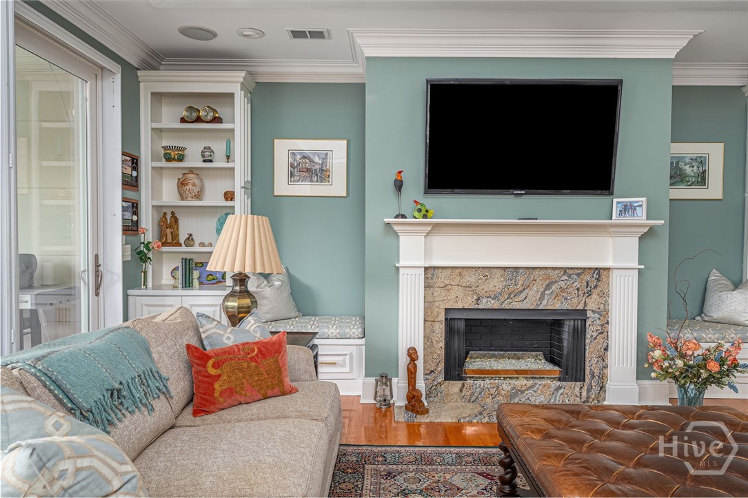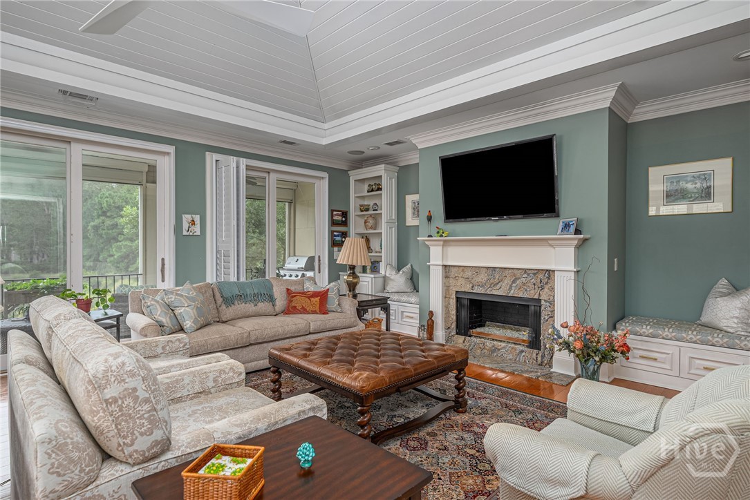 This stunning 3 BR 3.5 Bath townhome combines luxury living with serene lagoon views. Designed with an open airy floor plan it features vaulted ceilings, hardwood floors throughout, a gourmet kitchen, and spacious living areas that flow seamlessly to a screened porch and covered porches on main level. Large master BR and 2 guest BR each with their own private baths for ultimate comfort and privacy. An elevator provides easy access to all levels. Two car garage with separate golf cart space and extra storage space. Enjoy low maintenance living with more time to enjoy all that The Landings has to offer.