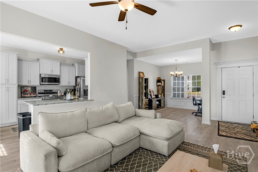 Welcome to 323 Brightleaf Cir— a move-in ready 4BR/2BA in Hinesville’s Gardens at 15 West, a convenient neighborhood minutes to Fort Stewart, everyday shopping, and dining. Built in 2022, this single-level layout centers on a spacious family room that links a sunny breakfast area, formal dining, and a galley kitchen with dedicated pantry. The private primary suite features a huge walk-in closet directly off the bedroom and a true en-suite. Three secondary bedrooms include large closets and share a 3-piece hall bath. Outdoors, enjoy a level yard and a two-car garage—perfect for bikes, gear, and storage. With a friendly community vibe, this Brightleaf address blends comfort, function, and an easy Hinesville location for work and weekend living.