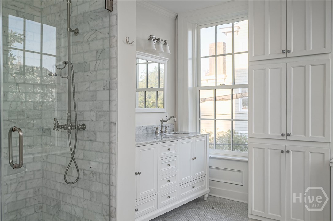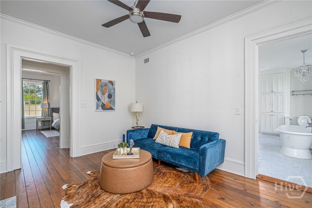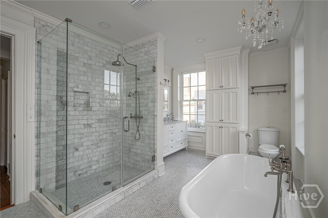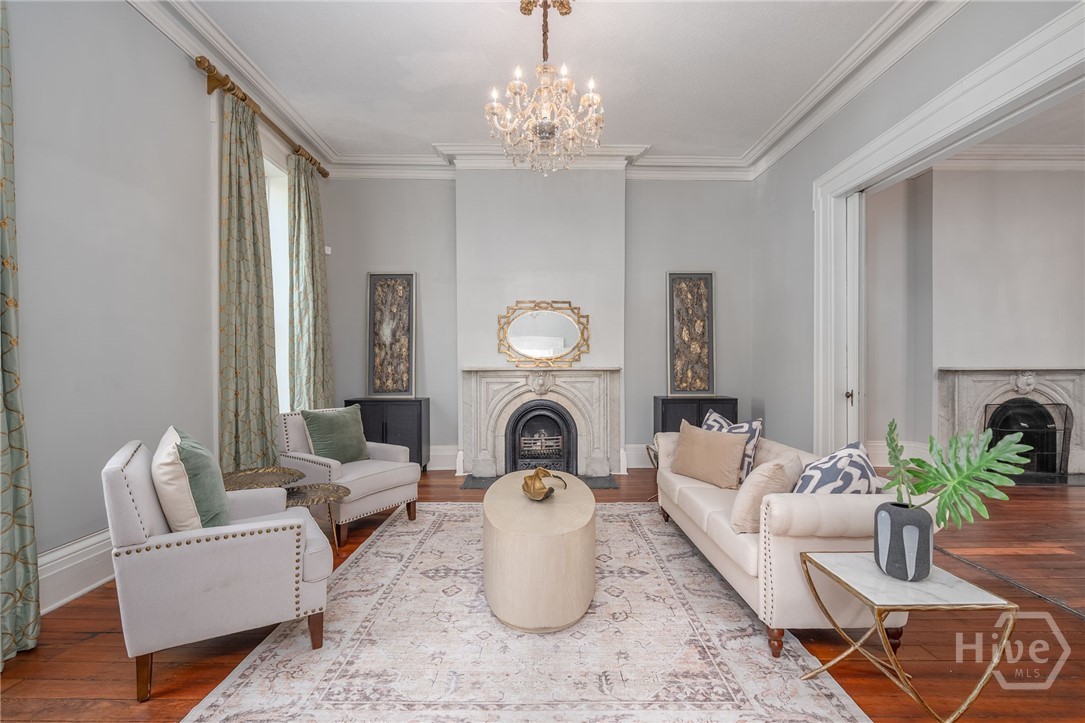 This impeccably renovated, beautifully restored 4 BR/2.5 BA end-unit townhouse near Chippewa Square includes an income-producing 1 BR/1 BA garden-level apartment house plus a freestanding 2 BR/1.5 BA carriage house with a strong rental history. Ideally located in the center of Savannah’s National Historic Landmark District, this warm, inviting home was originally built for cotton merchant and planter John Stoddard in 1854 and offers stunning natural light, high ceilings, original heart pine floors and exquisite period architectural details. Relax in the newly created primary en suite and entertain guests in the elegant double parlor with twin marble fireplaces, double crown moldings and stylish dining room. The spacious chef’s kitchen includes a wet bar, premium stainless appliances and access to a private, walled brick courtyard. Walk to Forsyth Park, Bull Street, the Downtown Design District, Johnny Mercer Theater and Savannah’s best restaurants, shops and cafes!