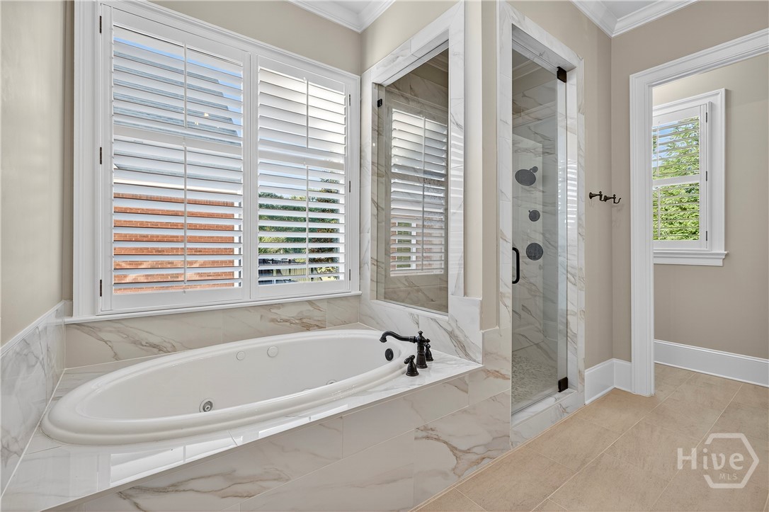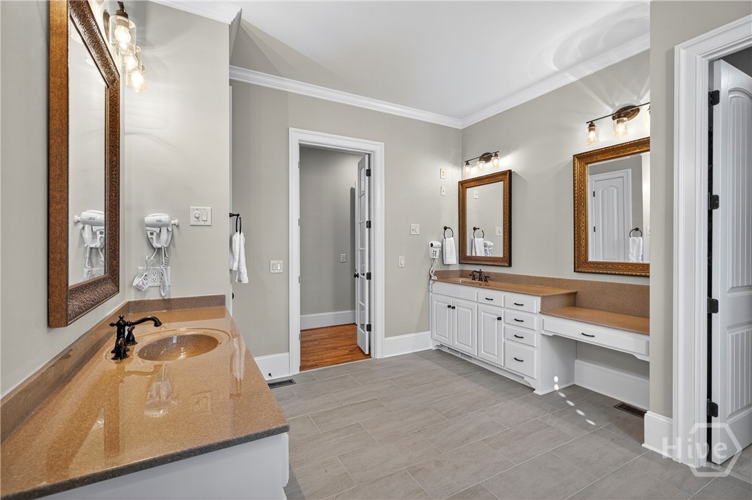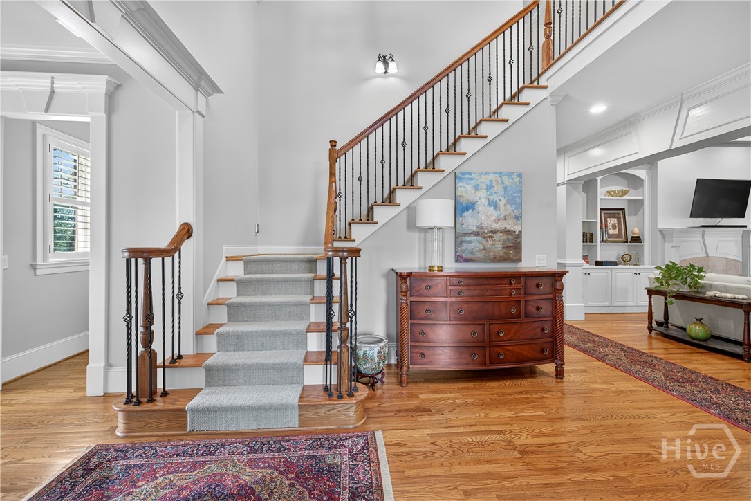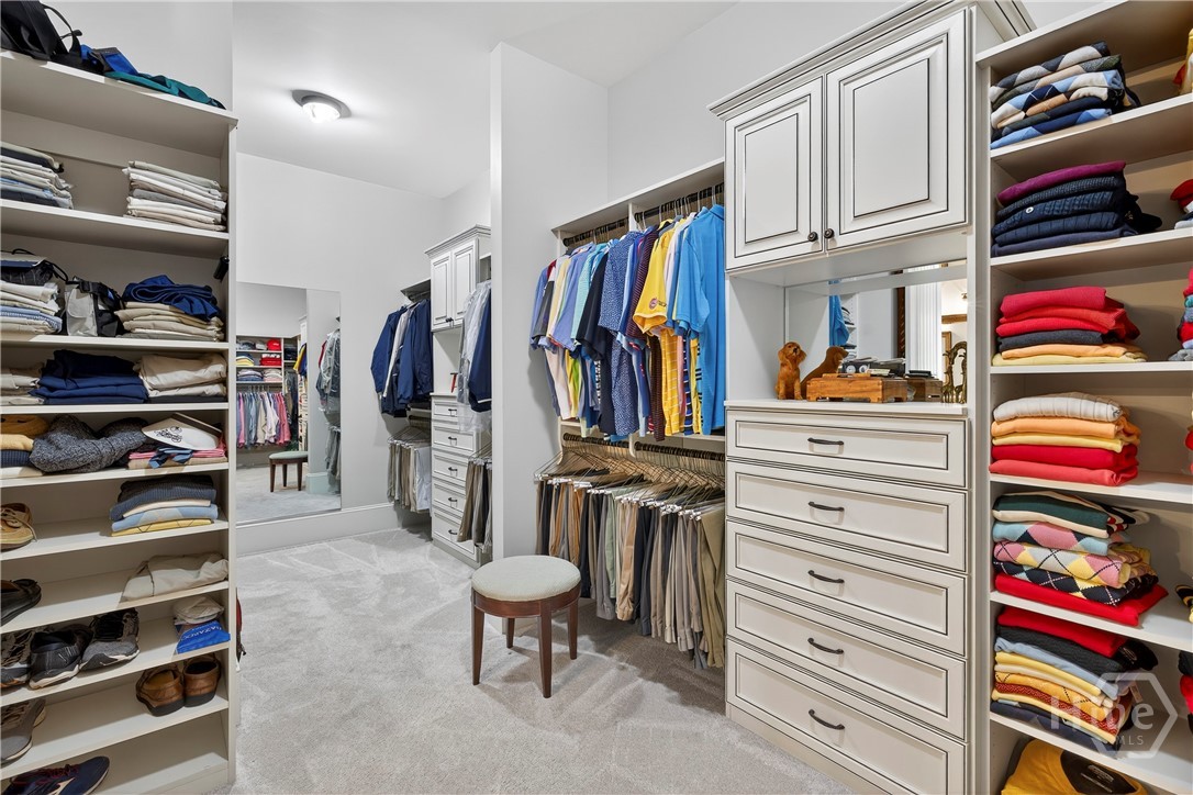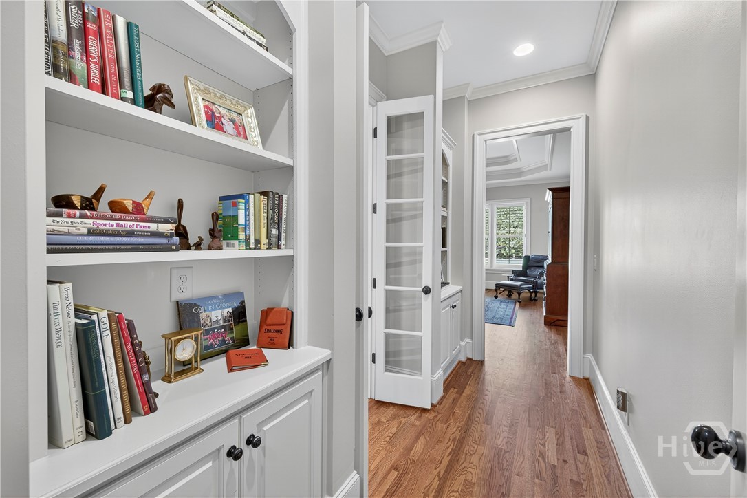 Rarely is a home available in the Wexford Garden community in The Georgia Club! This beautiful home is located on #4 of the Silver Course. Step inside to an open 2 story foyer, custom detailing, trim and hardwood floors throughout the main level including living areas, office, kitchen and master bedroom suite. The large kitchen with Viking appliances includes a breakfast nook, serving bar and pantry. The flex space just off the foyer can be an office or another cozy den/library. The main level primary bedroom truly is a suite with bath including separate shower, jacuzzi tub, dual sink areas and water closet. The customized closet is spacious! Upstairs you will find 2 bedrooms with ensuite baths, customized closets, storage and a gathering area. The lower level offers a mini kitchen, 2 living spaces with 2 sided fireplace, half bath, bedroom and bath, 2 flex spaces and plenty of storage. The covered bricked terrace extends livng space for entertaining and enjoying golf views.
