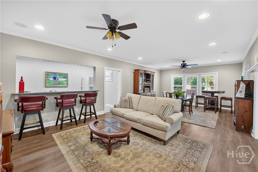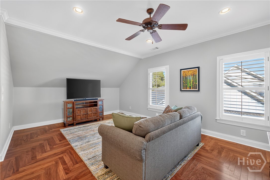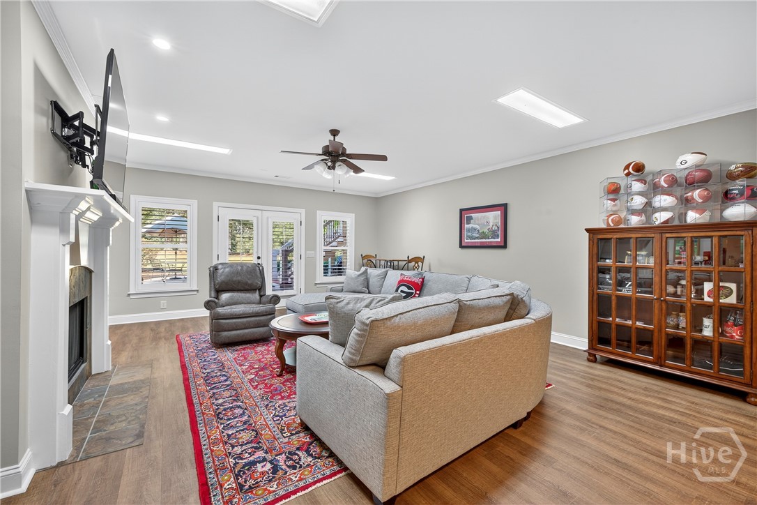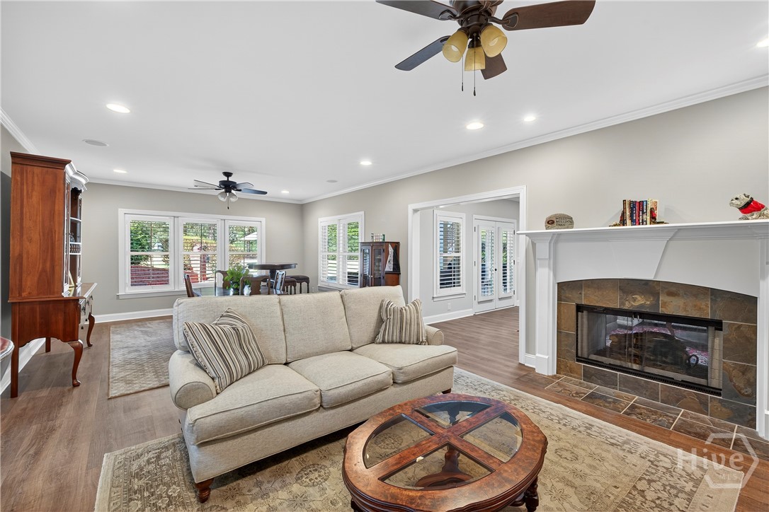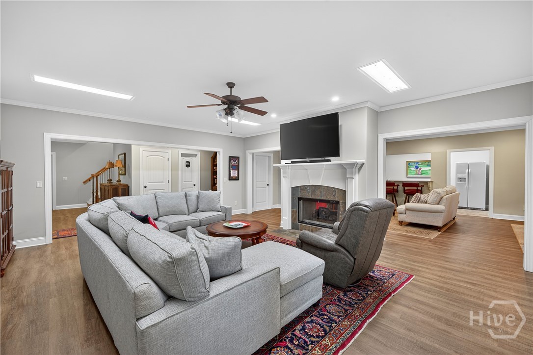 Rarely is a home available in the Wexford Garden community in The Georgia Club! This beautiful home is located on #4 of the Silver Course. Step inside to an open 2 story foyer, custom detailing, trim and hardwood floors throughout the main level including living areas, office, kitchen and master bedroom suite. The large kitchen with Viking appliances includes a breakfast nook, serving bar and pantry. The flex space just off the foyer can be an office or another cozy den/library. The main level primary bedroom truly is a suite with bath including separate shower, jacuzzi tub, dual sink areas and water closet. The customized closet is spacious! Upstairs you will find 2 bedrooms with ensuite baths, customized closets, storage and a gathering area. The lower level offers a mini kitchen, 2 living spaces with 2 sided fireplace, half bath, bedroom and bath, 2 flex spaces and plenty of storage. The covered bricked terrace extends livng space for entertaining and enjoying golf views.