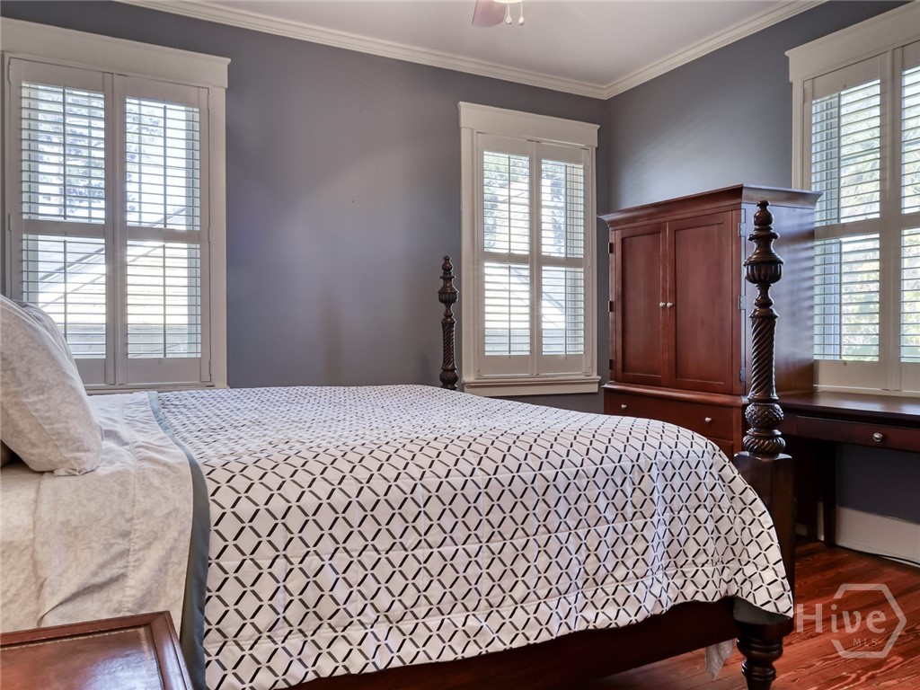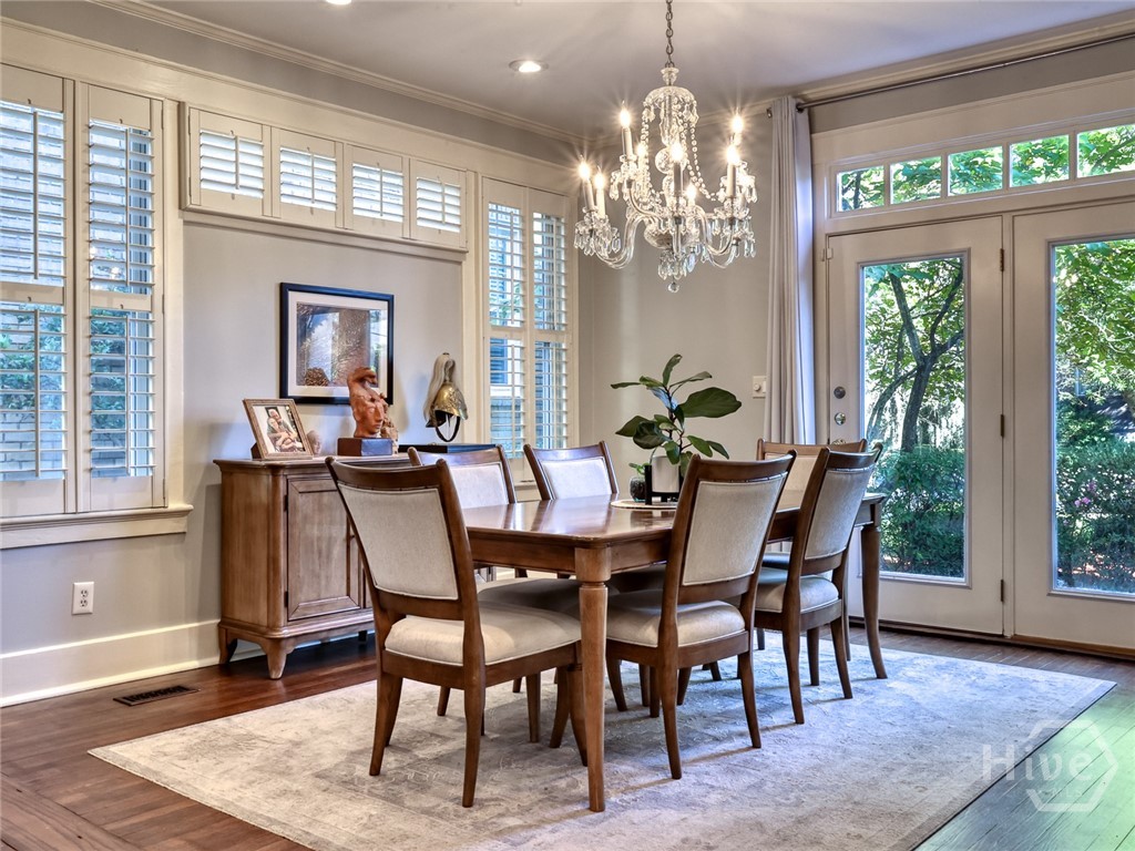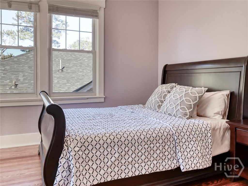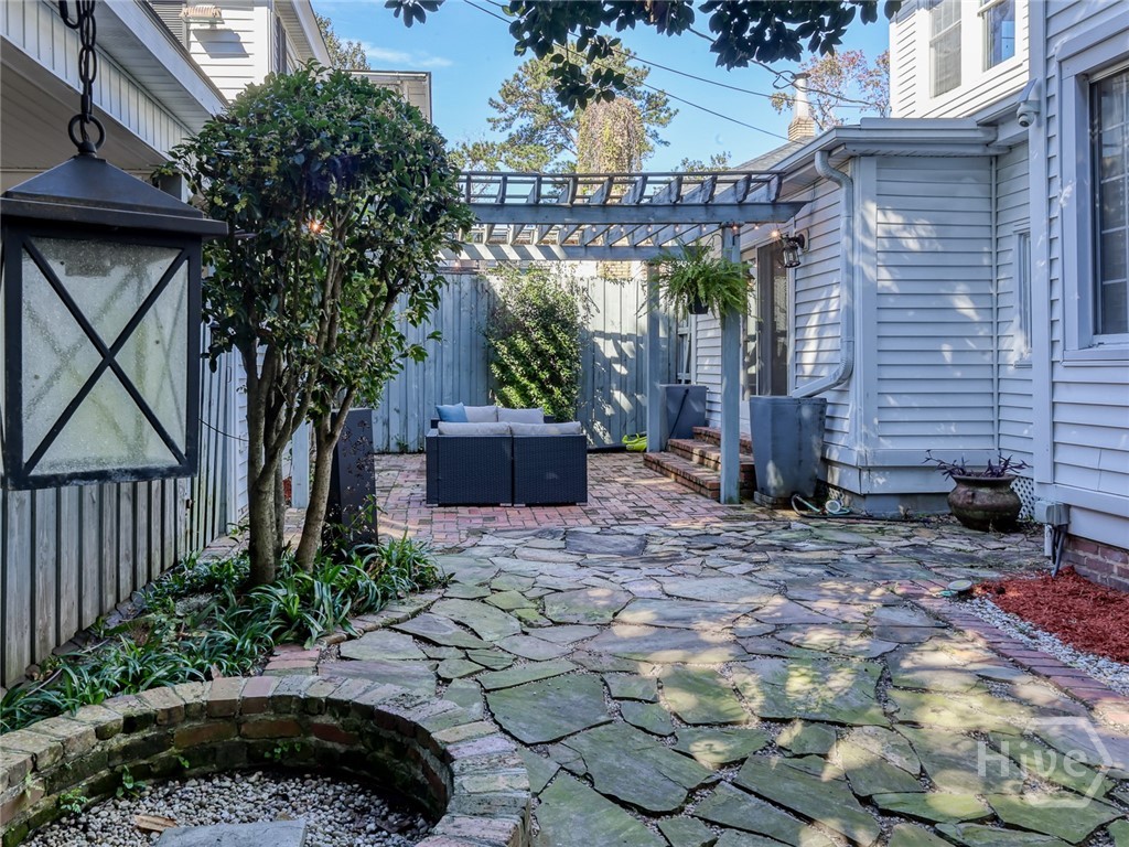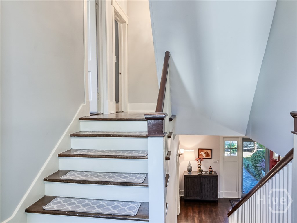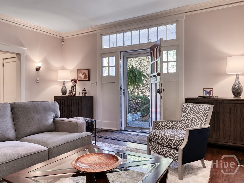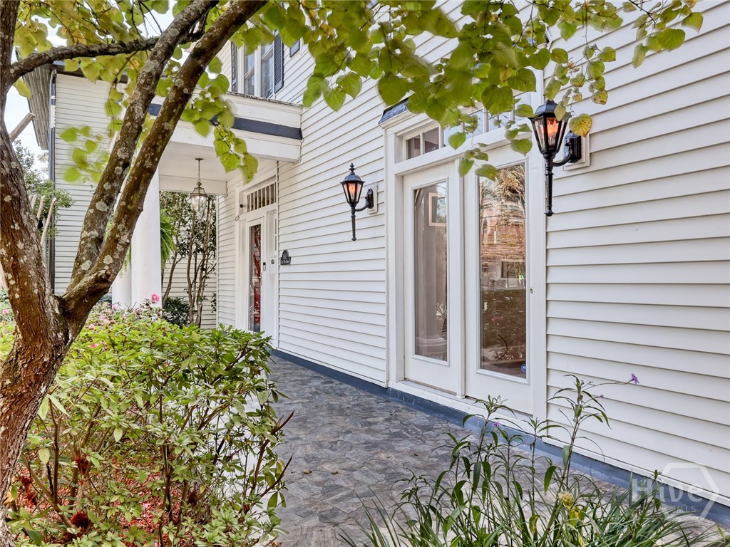 Classic Ardsley home with carriage house & garage parking on prestigious block next to Vestburg Park. The residence has a grand yet understated profile. On the covered porch, a red craftsman door & transom opens to vintage high ceilings and hardwood floors. Main level floorplan provides a powder, laundry, updated kitchen (with walk-in pantry), dining, living and great room. Sophisticated architectural details are consistent throughout including original doors & hardware, millwork and a charming switchback staircase. An oversized primary suite with 2 French door walk-in closets, tub, shower and 2 vanities + secondary bedrooms and full bathroom complete the 2nd floor. Courtyard hardscape is low maintenance & ideal for hospitality. A covered, 2-car garage with 1/BR/1BA carriage house (not incl in SF) for guest, office or tenant elevates this great offering. Location is premier: Walking distance to Habersham Village, Daffin Park and 1.5 miles to Forsyth Park in downtown Savannah.