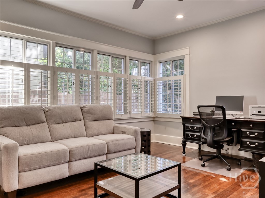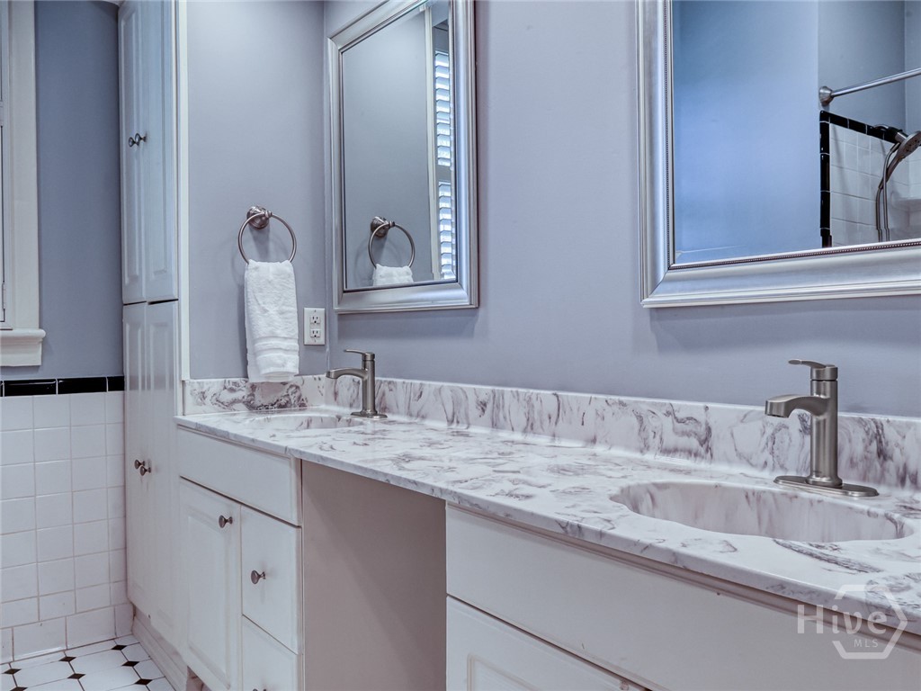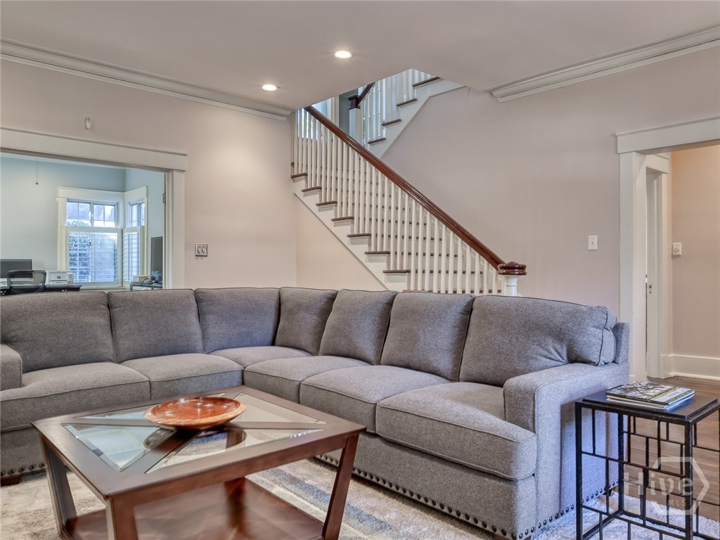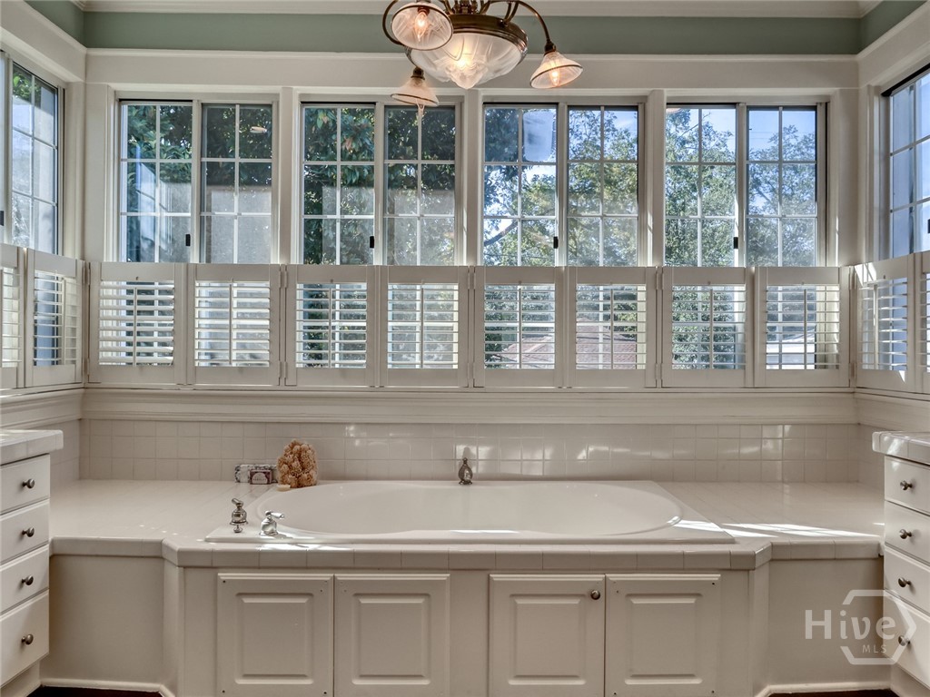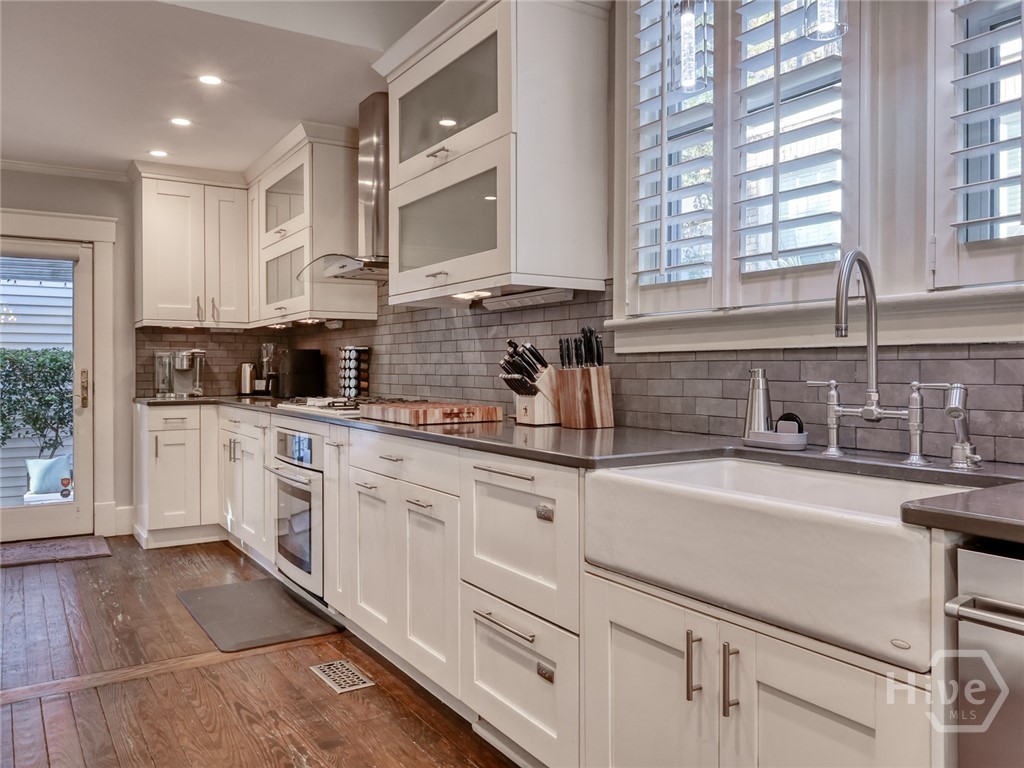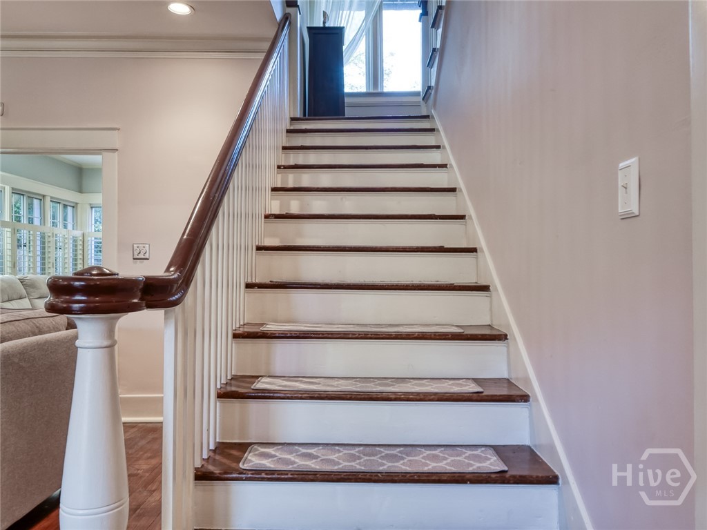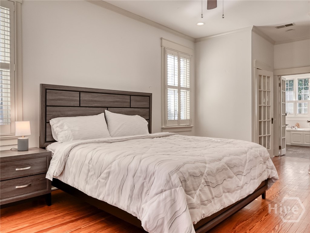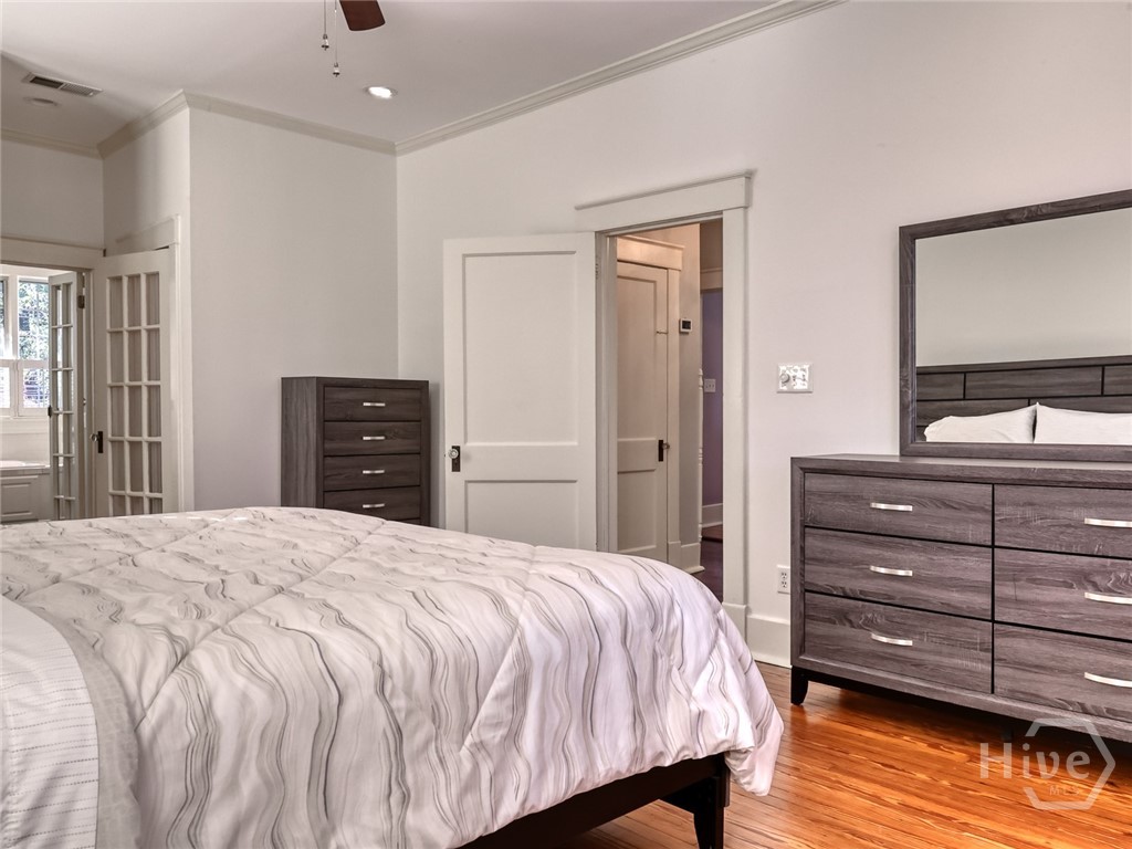 Classic Ardsley home with carriage house & garage parking on prestigious block next to Vestburg Park. The residence has a grand yet understated profile. On the covered porch, a red craftsman door & transom opens to vintage high ceilings and hardwood floors. Main level floorplan provides a powder, laundry, updated kitchen (with walk-in pantry), dining, living and great room. Sophisticated architectural details are consistent throughout including original doors & hardware, millwork and a charming switchback staircase. An oversized primary suite with 2 French door walk-in closets, tub, shower and 2 vanities + secondary bedrooms and full bathroom complete the 2nd floor. Courtyard hardscape is low maintenance & ideal for hospitality. A covered, 2-car garage with 1/BR/1BA carriage house (not incl in SF) for guest, office or tenant elevates this great offering. Location is premier: Walking distance to Habersham Village, Daffin Park and 1.5 miles to Forsyth Park in downtown Savannah.