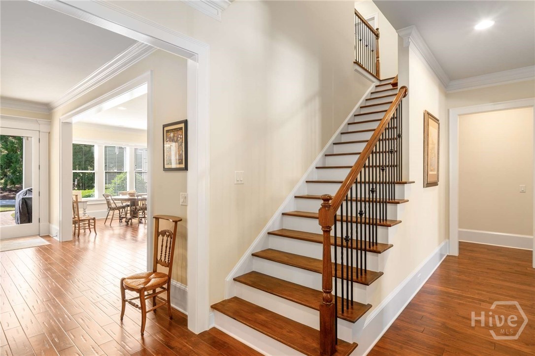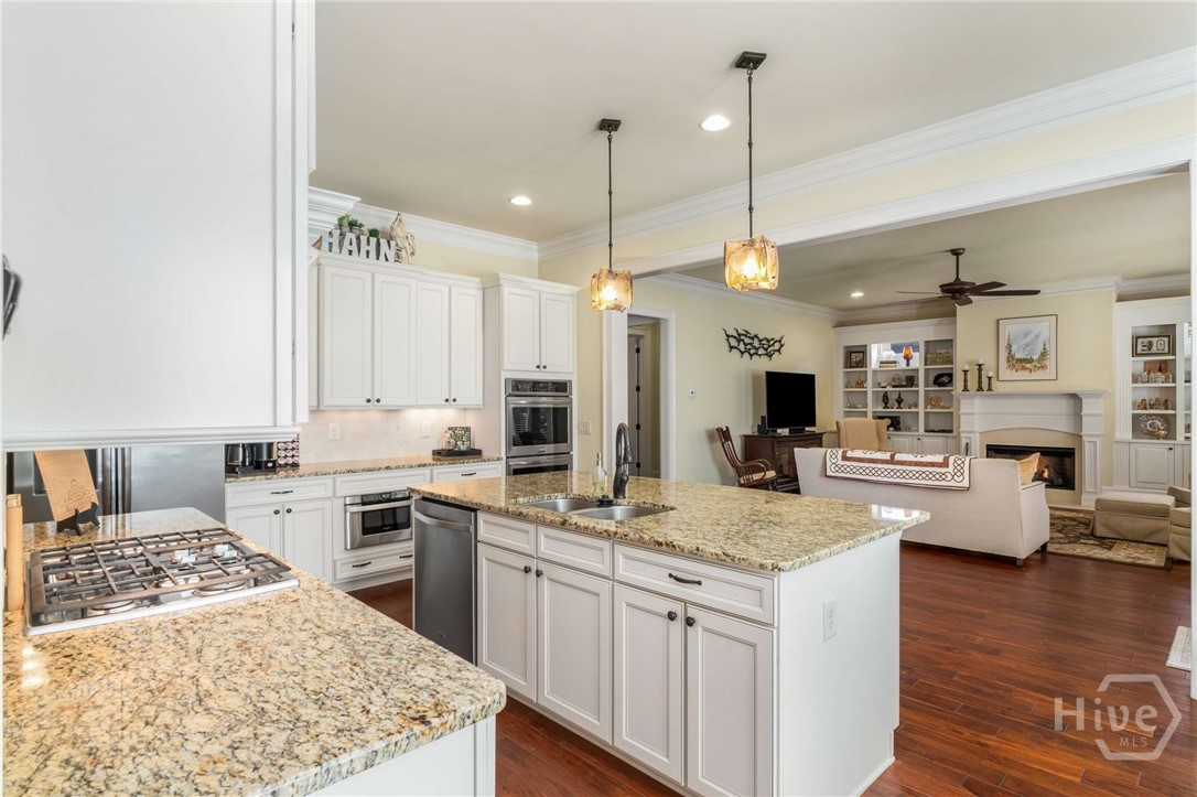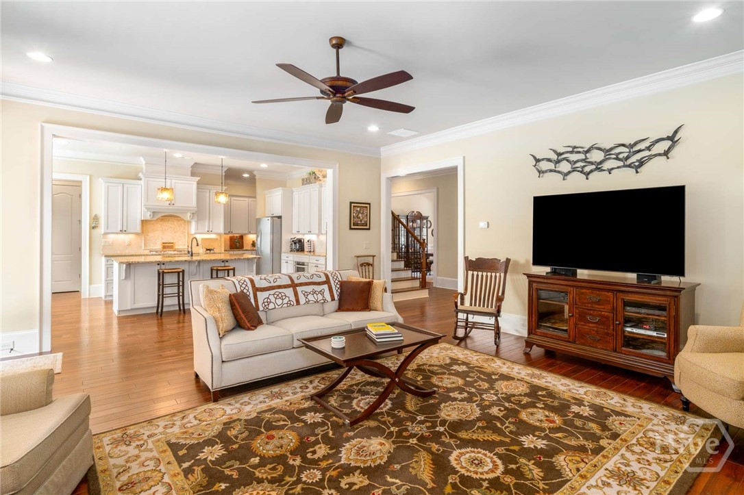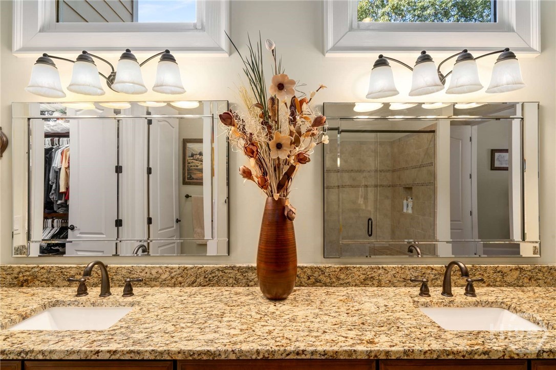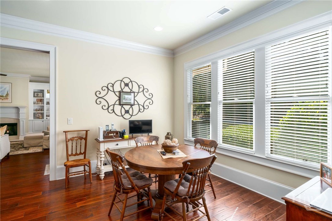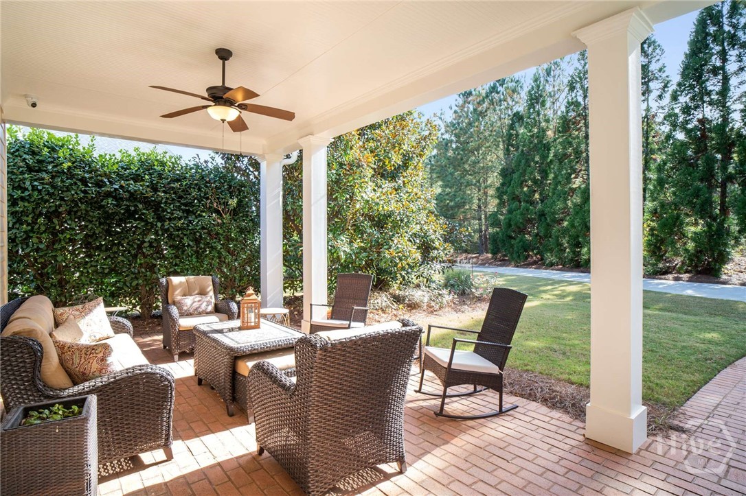 On a beautifully private lot in The Georgia Club, this stunning Rossmore plan captures the perfect blend of warmth, elegance, and timeless sophistication. From the moment you arrive, the home’s charming curb appeal draws you in — with its brick-topped rocking chair front porch, white picket fence, and pristine landscaping. Step inside and you’ll immediately notice the gleaming hardwood floors, impeccable millwork, and the care that makes this home look barely lived in. The dedicated dining room is ideal for hosting family holidays or intimate dinners with friends, while natural light pours through the main level, highlighting every detail. The inviting family room features custom built-ins framing a cozy fireplace, creating the perfect gathering space. The open-concept floor plan flows seamlessly into the chef’s kitchen — a true centerpiece of the home. Enjoy granite countertops, double wall ovens, a spacious island, classic cabinetry, a butler’s pantry, and elegant pendant lighting. The main-level primary suite is a peaceful retreat, filled with warmth and light from its many windows. The spa-like bathroom features a large tiled shower, dual sinks, and an expansive walk-in closet with custom wood shelving — a detail carried throughout every closet in the home. A guest suite with a tiled shower, a powder bath, and a well-appointed laundry room complete the main floor. Upstairs, you’ll find two additional bedrooms, two full bathrooms, a versatile flex room perfect for an office, playroom, or library, plus a spacious loft area. The 4-car epoxied garage offers incredible functionality and storage, including a staircase leading to even more storage space — perfect for hobbies, workshops, or seasonal items. Step outside to the beautiful covered outdoor living area overlooking the peaceful, private backyard — the ideal spot to relax and unwind. Located in sought-after Oconee County within The Georgia Club, this home embodies the perfect blend of grace, comfort, and “home sweet home.” Don’t miss this rare opportunity — homes like this don’t come along often! (Quarterly Lawn Maintenance fee of $586.00)