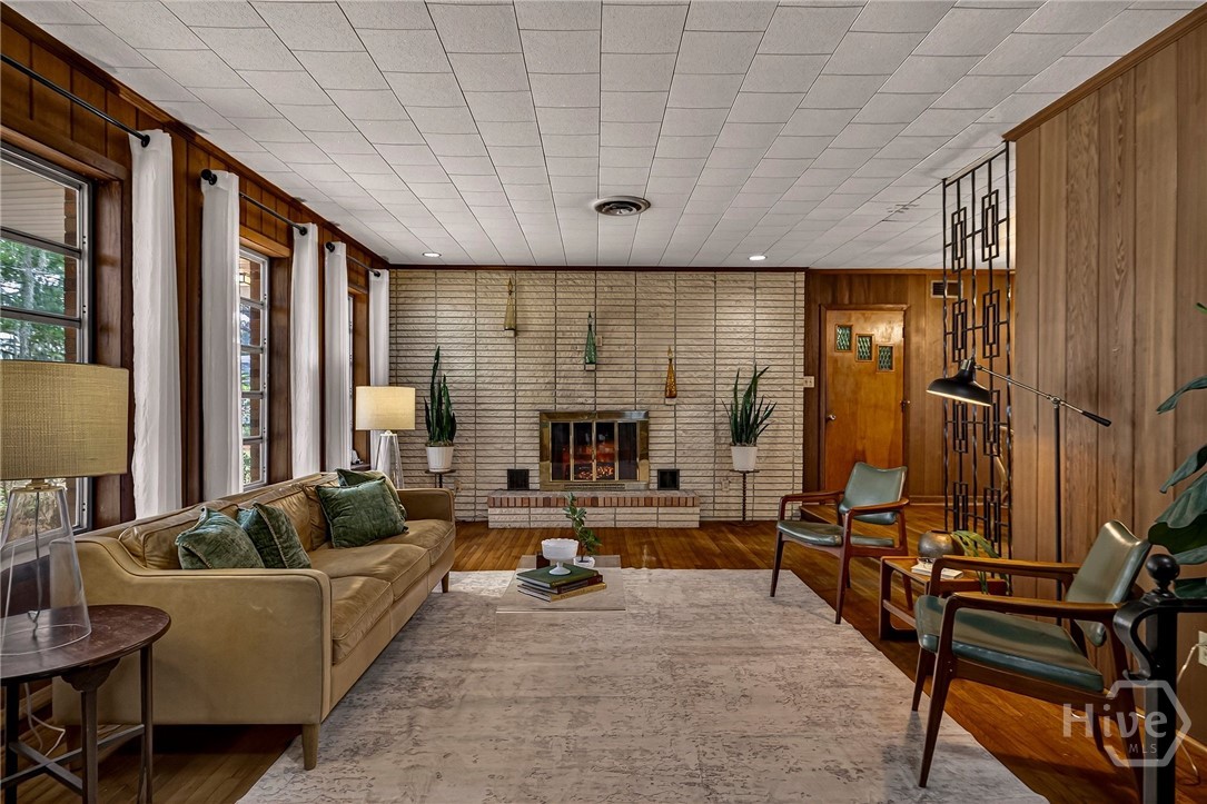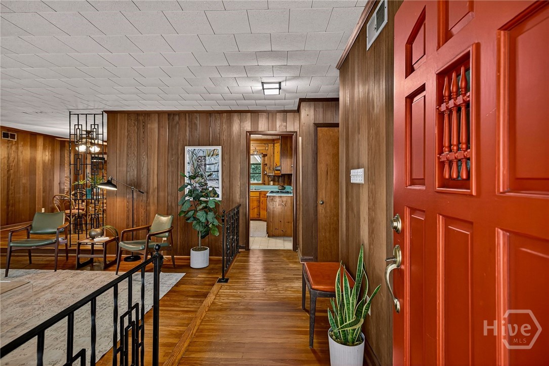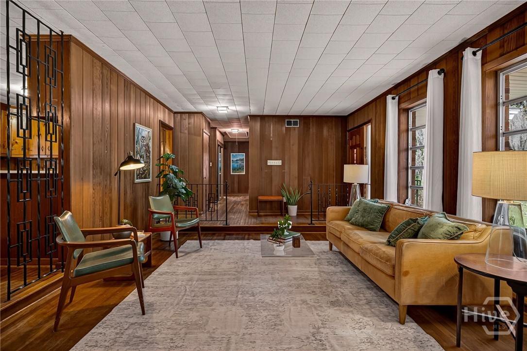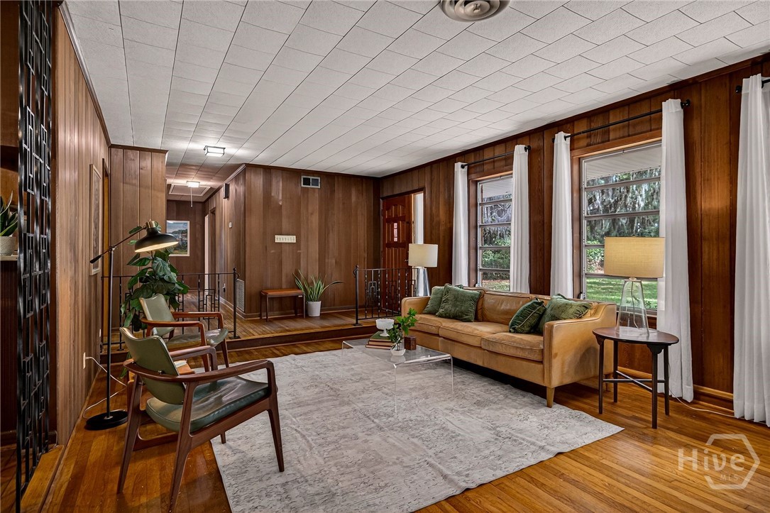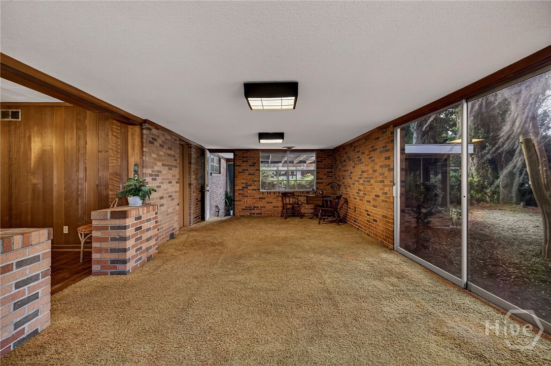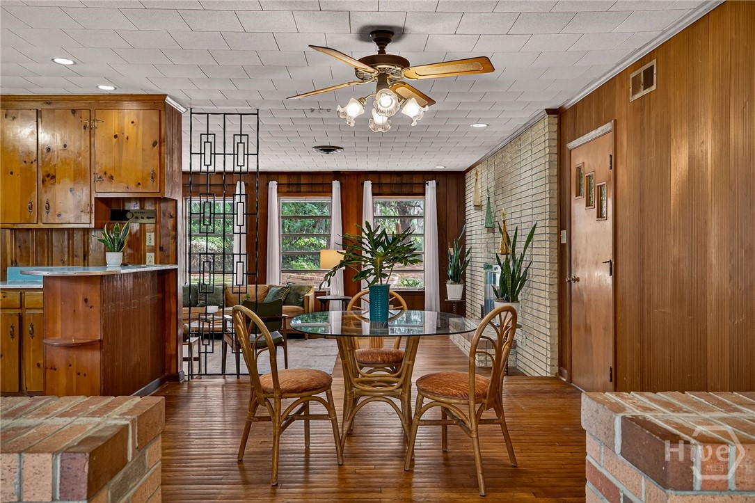 Welcome to a rare mid-century "time capsule" tucked away on Mercer Inlet. Built in 1959, this 3-bed, 2-bath home feels like stepping into another era. Inside, original details abound: solid wood paneling, gleaming knotty pine cabinetry, and iconic blue “boomerang” laminate countertops that define the atomic-age kitchen. The living room centers around a white brick fireplace with a retro electric insert, while a spacious den addition and screened porch offer room to relax or entertain with a view. Outside, the property unfolds across nearly an acre of tidal creek frontage with a private dock. Perfect for kayaking, fishing, or savoring the coastal breezes. Nestled on Burnside Island, you’ll enjoy quiet coastal living just minutes from downtown Savannah. This home is more than mid-century inspired—it is mid-century preserved. Whether you’re ready to restore it, cherish it as-is, or reimagine it with a nod to its past, this gem is a rare find that bridges nostalgia and nature beautifully.