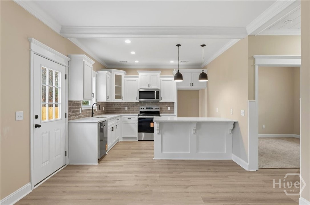 This plan offer flexibility with a 4th bedroom downstairs that could be a flex room, office, playroom or a bedroom. Open floor plan downstairs with the L shaped kitchen and kitchen island- creates the perfect space for large gatherings. Granite countertops and ceramic tile backsplash in the kitchen. Stainless steel appliances in the kitchen with LVP flooring throughout the downstairs and carpet in the bedrooms. Home is move in ready!