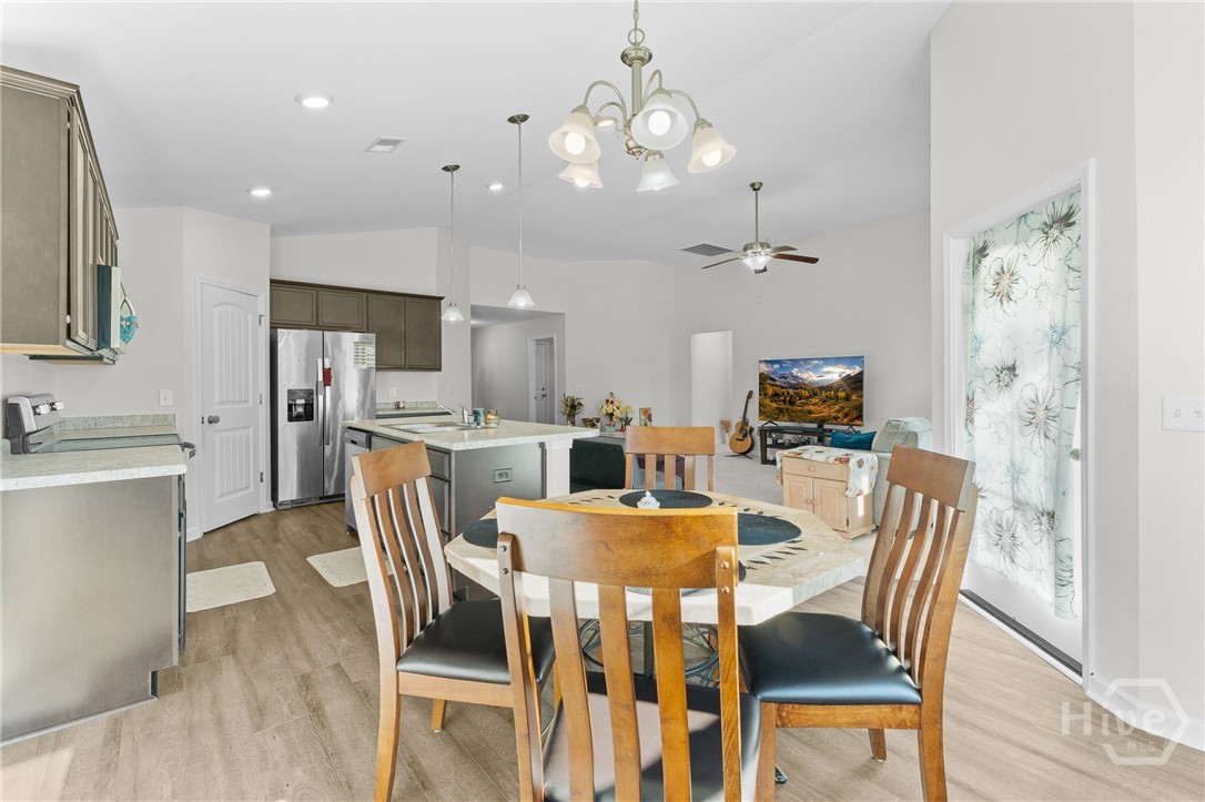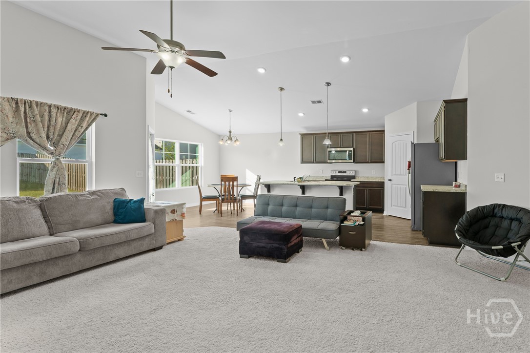 BACK ON MARKET THROUGH NO FAULT OF THE SELLER! Welcome to 97 Dunnoman Drive in the desirable Bradley Point South community! Built in 2021, this beautifully maintained 3-bedroom, 2-bath ranch-style home offers a modern open-concept layout perfect for entertaining and everyday living. The spacious kitchen features stainless steel appliances, ample cabinet space, and a large island overlooking the living and dining areas. The split floor plan provides privacy for the primary suite, which includes an oversized walk-in closet and en-suite bath with linen storage. Enjoy quiet evenings on the patio or take advantage of the neighborhood amenities including a pool, playground, and walking trails. Conveniently located near shopping, dining, Hunter Army Airfield, and downtown Savannah, this move-in ready home combines comfort, convenience, and style.