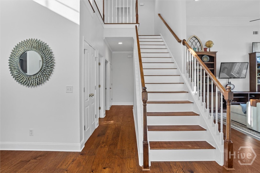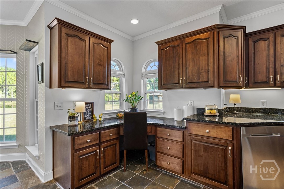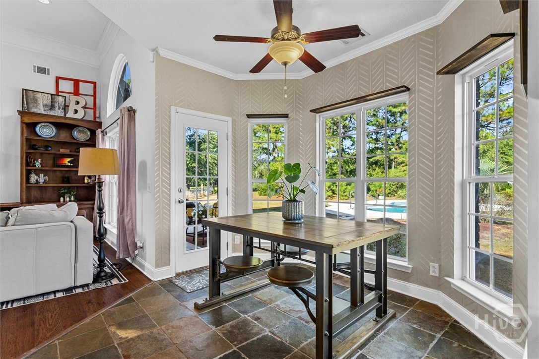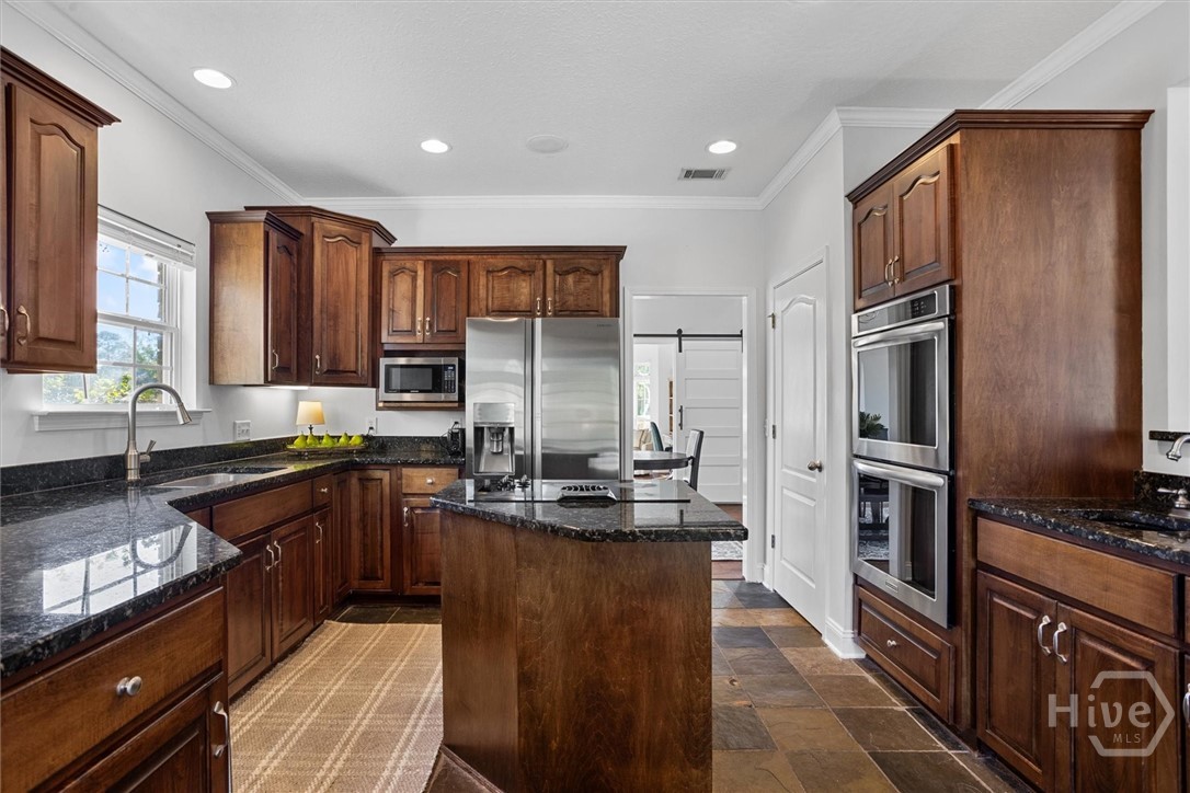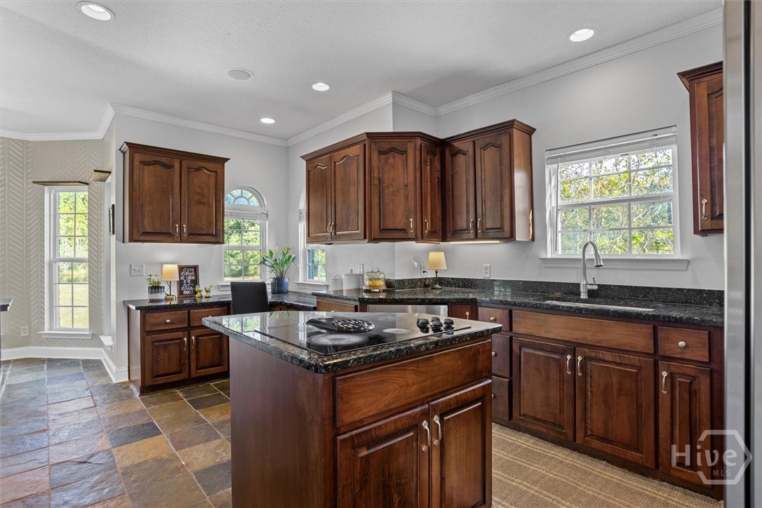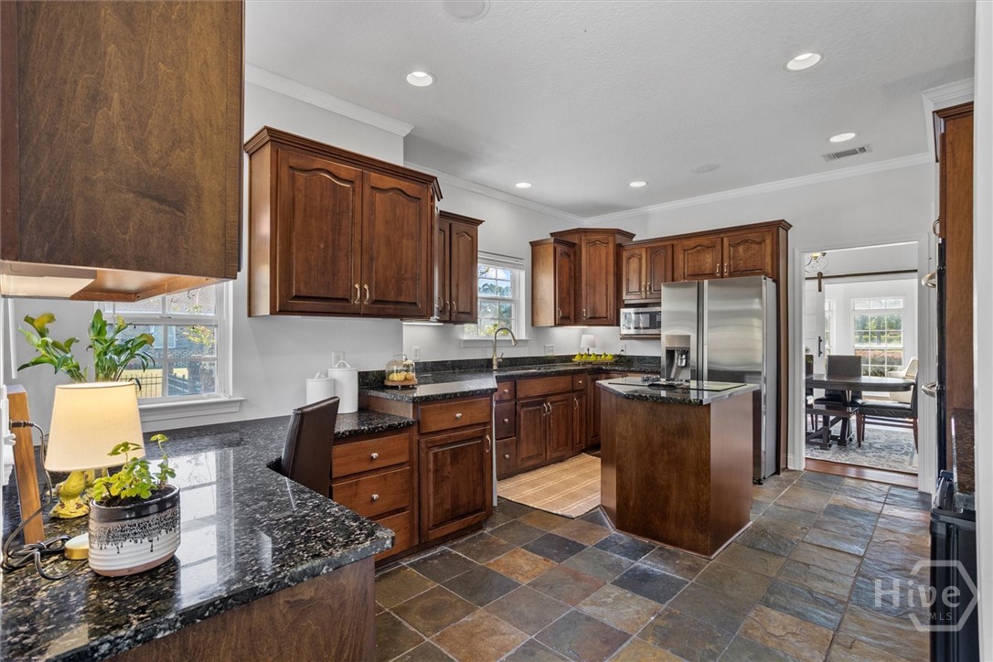 Set on a picturesque 2.5 acre lot, this stunning 3 bedroom, 2.5 bath lakefront home offers country charm and coastal living. A two-story foyer welcomes you in to beautifully designed living spaces featuring a formal dining room, an inviting family room with vaulted ceiling, a versatile den or study with fireplace and stylish barn doors. The gourmet kitchen is a chef’s delight, featuring granite countertops, stainless steel appliances, an island with cooktop, double ovens, and a built-in desk area. The serene primary suite provides a true retreat, complete with dual vanities, a soaking tub, separate shower, and a private door leading to the outdoor oasis—perfect for morning coffee or evening relaxation. Upstairs, an open loft leads to two spacious bedrooms sharing a well-appointed Jack and Jill bath. Step outside to your private courtyard and salt water pool overlooking the peaceful lake. Launch your kayak from your own back yard and embrace a lifestyle that combines rural elegance with the best of lakeside coastal living. Additional highlights include a 3-car side-entry garage and energy-efficient spray foam insulation in the attic. This home is located within a mile to Demeries Boat Ramp and 5 miles to Kilkenny Marina.