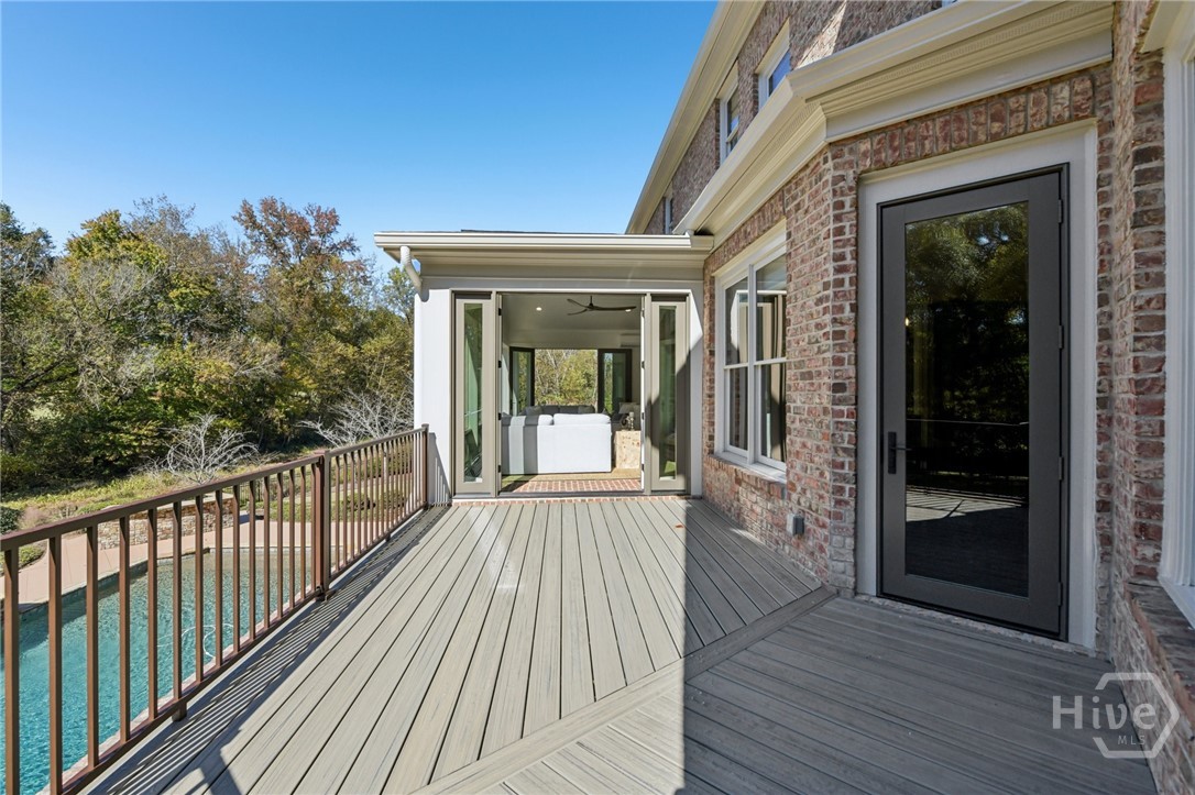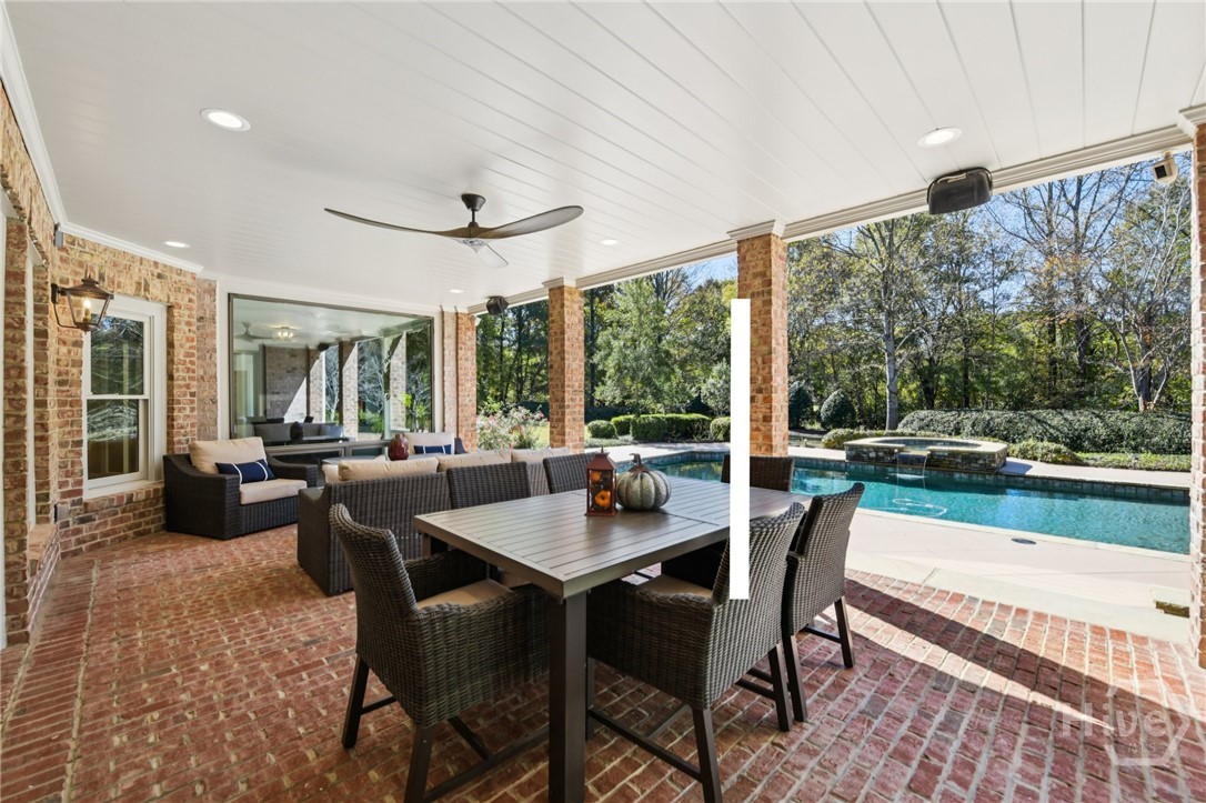 Welcome to 2071 Trimelston Road, an elegant and newly refreshed estate nestled in the prestigious, gated Georgia Club community located close to the popular town of Athens GA . This stunning home combines timeless architecture with modern UPDATES, offering the ultimate in comfort, style, and resort-like amenities. Step inside to discover a beautifully refined interior, featuring hardwood floors, fresh paint throughout, and updated designer touches, including new lighting, chic wallpaper accents, and newly renovated secondary bathrooms. The main level also offers a spacious bedroom, perfect for guests. The heart of the home opens to a bright NEW SUNROOM and an expansive deck overlooking the private backyard oasis. Outside, you'll find a saltwater gunite pool and spa, surrounded by a fully fenced yard with elegant wrought iron fencing-ideal for entertaining or quiet relaxation. This home is unique to the club, with its location at the end of the cul-de-sac, with a large fenced yard and backing up to green space, with the golf course beyond, creating even more privacy. The terrace level has been completely enhanced with a NEW office and flex room to complement the existing bar, theater room, recreation area, gym, and a covered porch for seamless indoor-outdoor living. With a four-car garage, this home provides both space and sophistication. Experience refined living in one of Northeast Georgia's most sought-after communities-where golf, tennis, and club amenities meet luxury home design. Pella windows have been installed in the new addition areas. Do you love the house but not the stairs to get to the primary bedroom? We have a solution, on hand, we have a design and quote for an elevator to access all levels.