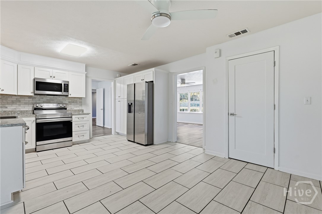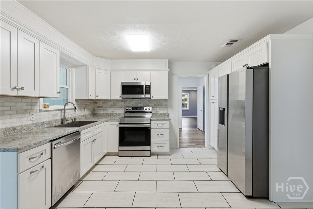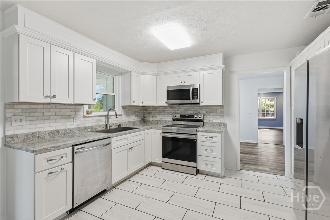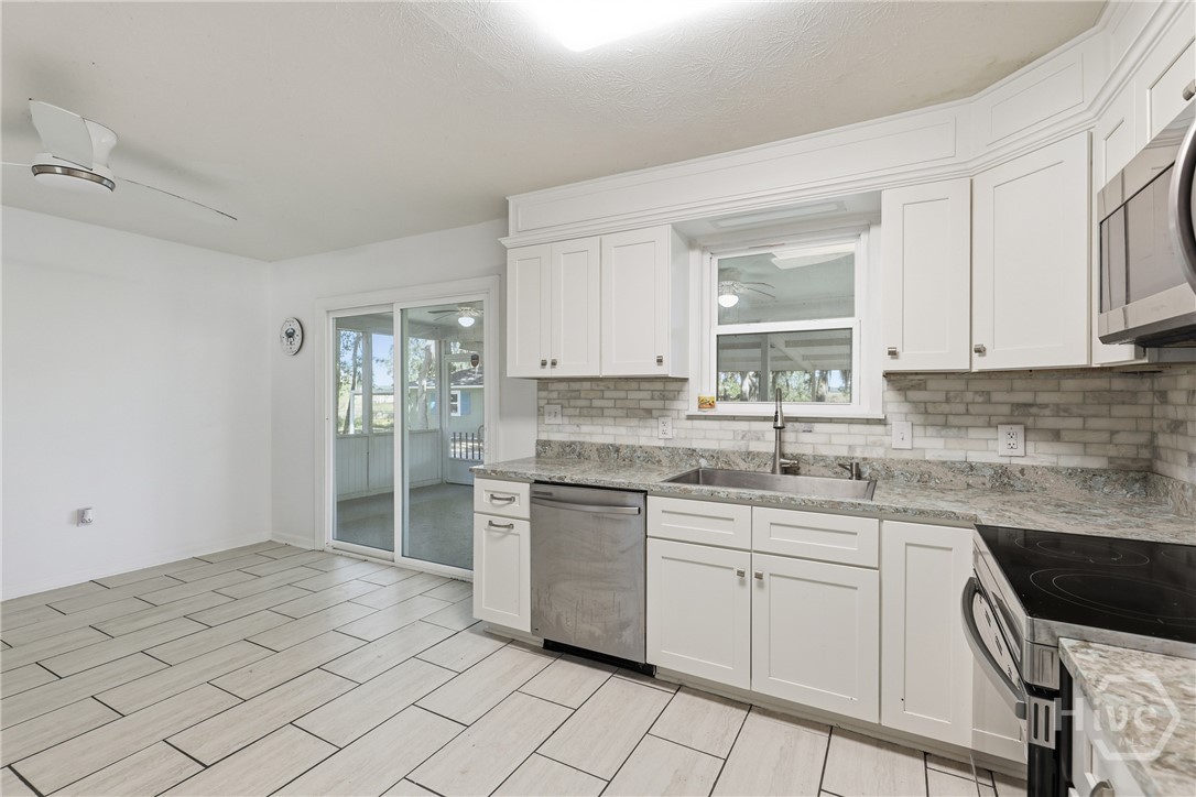 Waterfront home for sale in the Lake George community offering rare privacy, space, and expansive tidal creek/river frontage on a 1.16-acre double-lot equivalent with no rear neighbors. This beautifully updated 4-bedroom, 3-bath home features approximately 2,313 sq ft of open, light-filled living space on a wide waterfront lot backed by protected WMA land, ensuring long-term privacy and natural views. Enjoy a modern floor plan with stylish finishes, a well-appointed kitchen ideal for entertaining, and seamless indoor-outdoor living. Relax on the screened back porch overlooking the water, perfect for morning coffee or sunset views. The oversized backyard includes a storage shed and offers ample space for outdoor entertaining, gardening, recreation, or future expansion. The large tidal creek/river frontage makes this property ideal for boating, kayaking, fishing, and waterfront living. Not to mention a large workshop ready for a conversion to a guest bungalow or gym or hang out spot! Conveniently located near I-95, Richmond Hill, and Hinesville, this home provides the perfect balance of peaceful coastal living and everyday accessibility. This is an excellent opportunity to secure a large-lot waterfront home in today’s market.