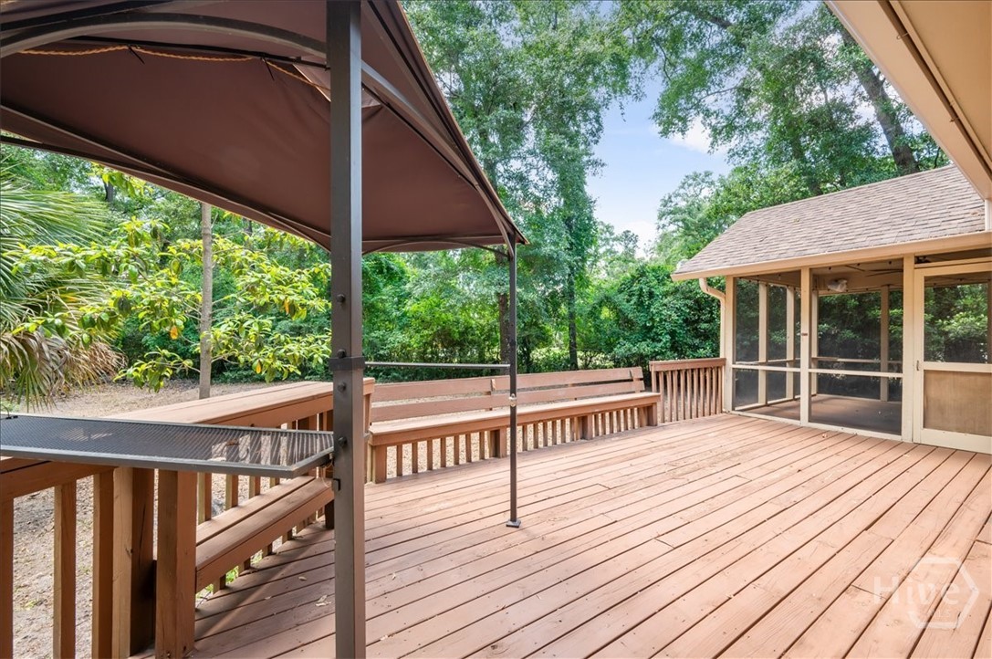 Beautiful Lowcountry home in the highly sought-after Redbird Creek community, perfectly positioned on a private .72-acre wooded lot in Richmond Hill. Enjoy the very best of coastal living just minutes from Fort McAllister State Park, a full-service marina, and Fishtales waterfront dining. Offering over 3,000 square feet of thoughtfully designed space, this home features a spacious living room with a cozy fireplace, a formal dining room, and a well-appointed kitchen complete with an island and abundant cabinetry, ideal for both everyday living and entertaining. The main level includes a guest bedroom with a full bath and an additional half bath for convenience. Upstairs, you’ll find brand-new carpet throughout, a generous primary suite with a private bath, two additional bedrooms, a full hall bath, and a separate bonus room with dedicated office space, perfect for today’s flexible lifestyle. Step outside to the screened-in back porch overlooking a serene, wooded backyard, creating the perfect setting for morning coffee, evening gatherings, or simply unwinding in privacy. A true blend of Lowcountry charm, comfort, and convenience, this is Coastal Georgia living at its finest. Some interior photos have been virtually staged to illustrate the home’s potential.