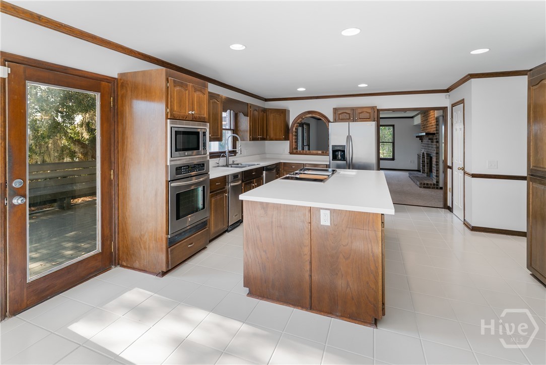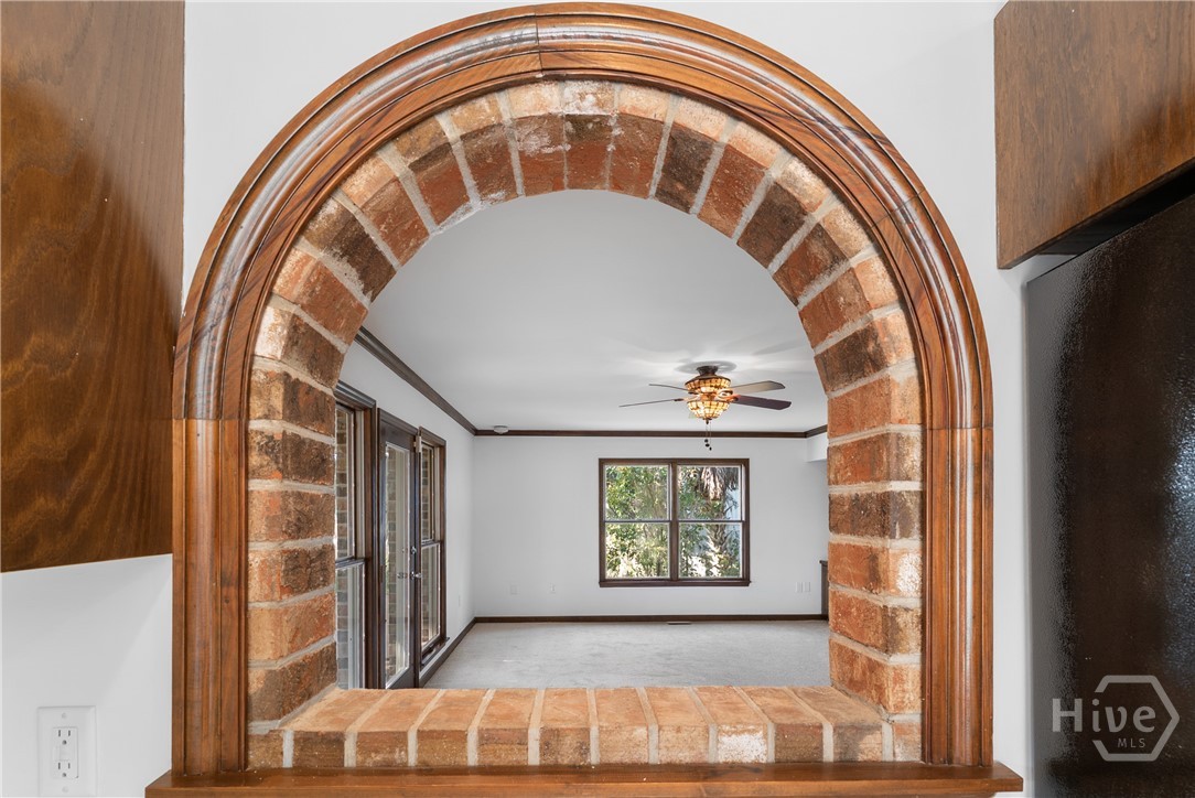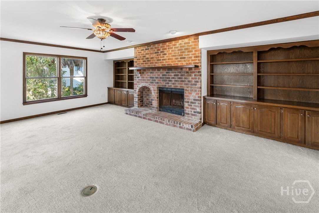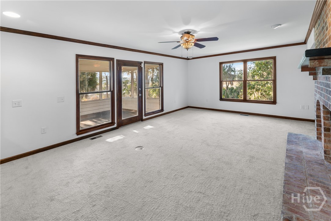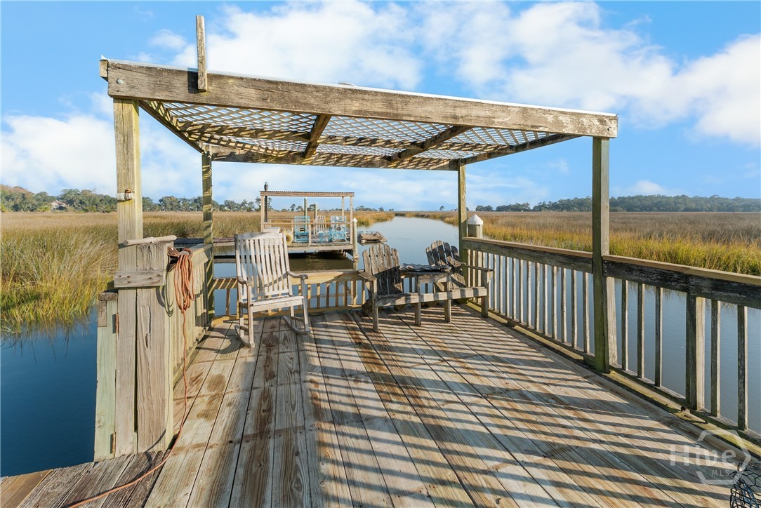 PRICE IMPROVEMENT!!One of Kind Waterfront Brick/Cedar Southern Living Home on Redbird Creek, Fort McAllister Area of Richmond Hill. Timeless, custom built low country home on culdesac, deepwater homesite w/dock. 4 bedrooms, 4 baths, living room w/fireplace, dining room, family room w/built ins & fireplace. owner suite w/fireplace, huge bonus over 2 car garage, kitchen w/stainless appliances, expansive island, custom wood cabinetry, built ins & brick accents. Welcoming front porch, screened backporch, elevated deck, Panoramic Bird's Eye views of marsh, creeks, lush palms, live oaks, over 230 ft of idyllic coastal marsh line. Classic features include aluminum clad pella windows, wood floors, stain grade trim, 9ft ceilings, new carpet, fresh paint, NEW Roof, Concrete block off ground foundation w/double door storage, central vacuum, water purifier, gutters. Dock has Shared walkway w/personal floating dock; fishing, crabbing, abundant nature for everyday adventures. Sunrise, Marina, Dockside Dining, History!