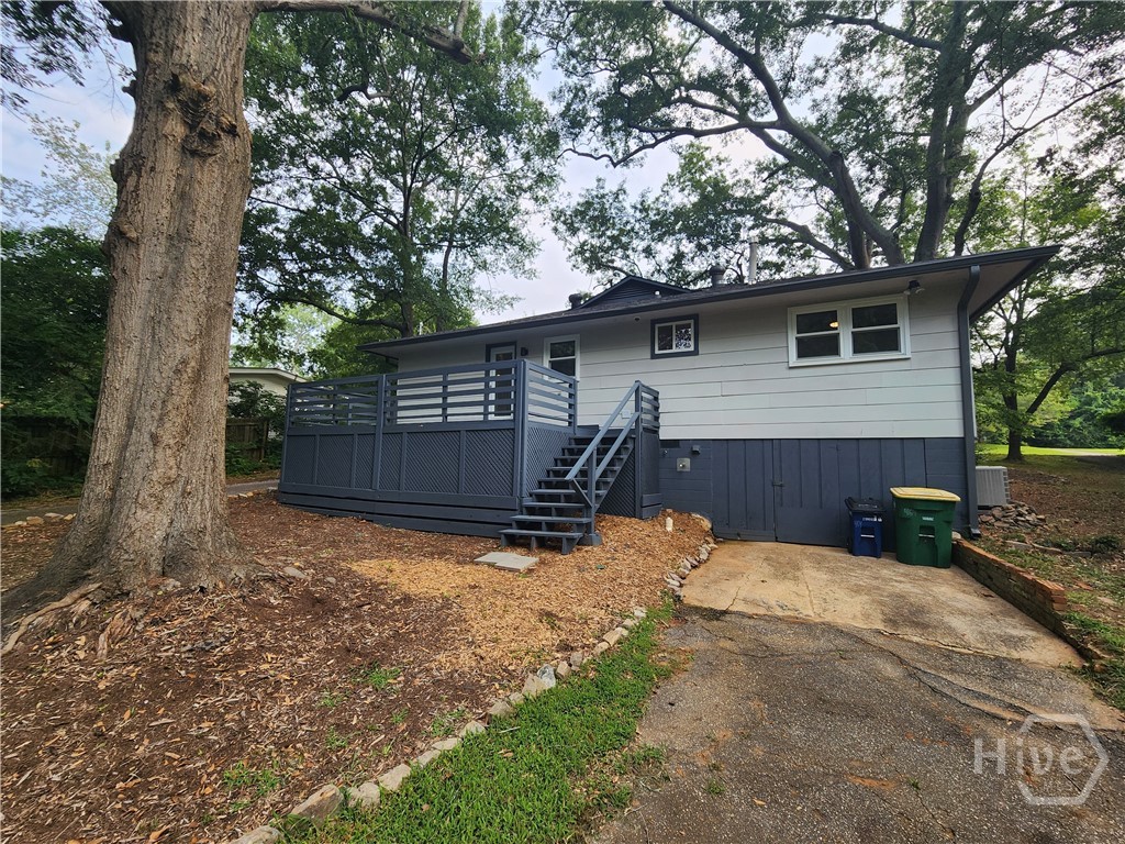 464 Ruth Street is an adorable, renovated, 3 bedrooms, 2 bath home. The property is currently leased through July 2026 for $1980 a month. 24 Hours’ notice to show. All buyers must view a private link walk through video prior to showings. The large living, dining room area flows into the completely renovated kitchen, in the laundry/ mud room and then leads you to the private deck overlooking the .50+ acre yard with large deck. There is concrete pad on the rear of the lot with potential to build an accessory dwelling unit for additional rent revenue. The kitchen has custom cabinets, granite counters, back splash and a functional island. The guest hall bathroom is next to the sunny bedrooms and was renovated with new fixtures and stylish tiled bathtub a few years ago. The master bedroom is light and bright, featuring a vanity area and a full bathroom with a large, tiled shower. Own in-town home just a quick drive to downtown Athens and the University of Georgia.