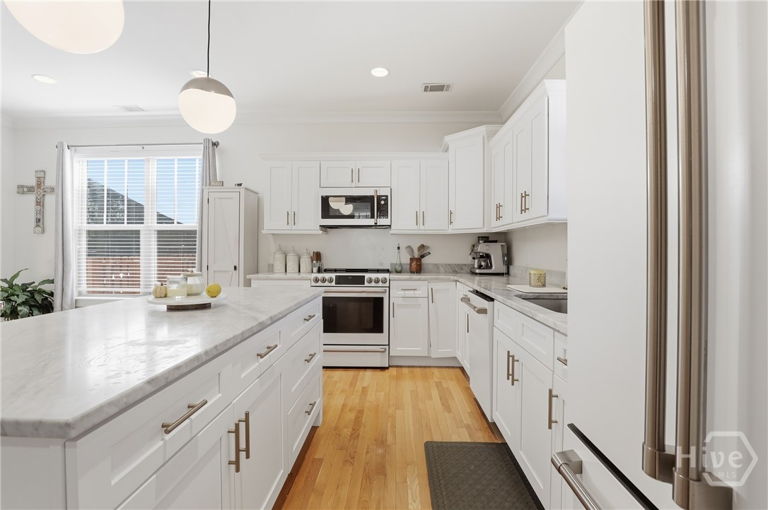 Welcome to this stunning 3-bedroom, 2.5-bath Craftsman-style home just moments from Savannah’s vibrant Starland District! Enjoy timeless charm with a large front porch perfect for morning coffee, beautiful built-ins, and a cozy fireplace that anchors the spacious living area. The open floor plan flows seamlessly into a modern kitchen with stylish finishes, ample storage and new Cafe appliances. The primary suite offers comfort and privacy, while the spa-like backyard oasis invites relaxation with beautiful landscaping, serene outdoor living spaces and hot tub. Conveniently located near downtown, shopping, and top-rated restaurants—this home blends classic Savannah character with modern convenience.