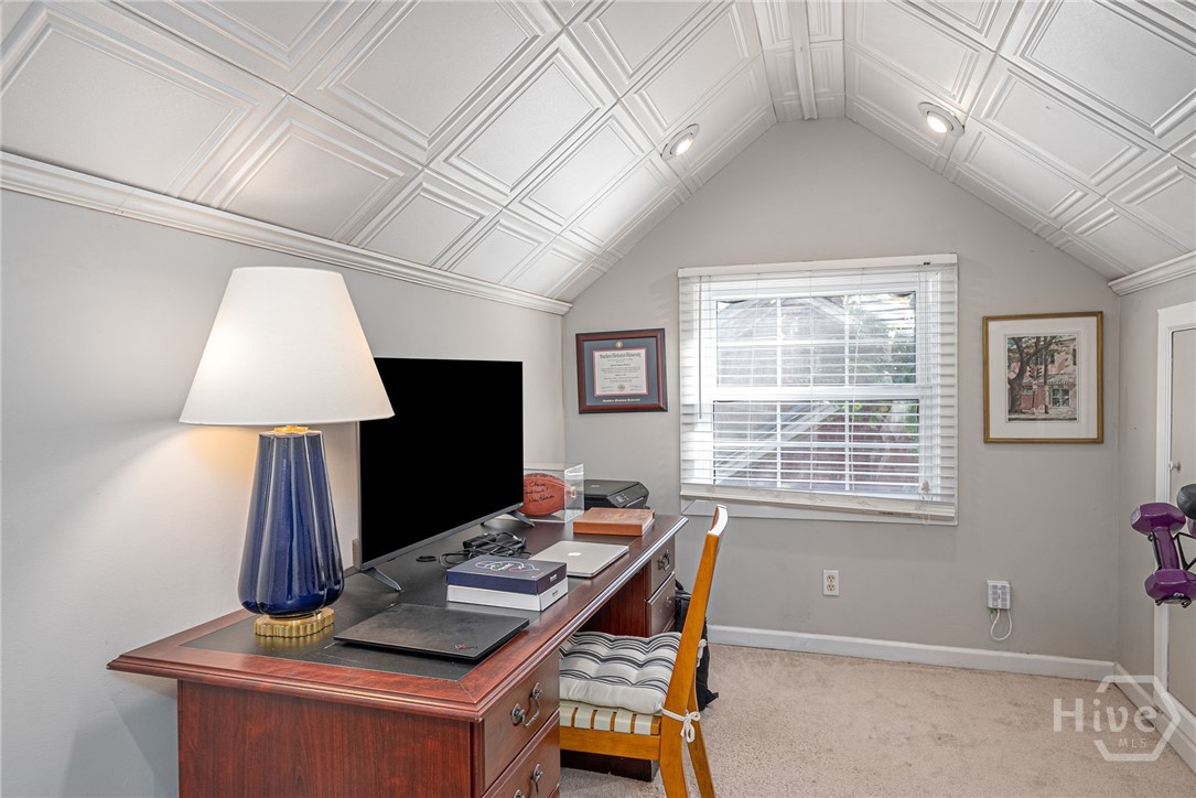 Set in the heart of sought after Ardsley Park, this 1940's brick bungalow blends classic charm with thoughtfully chosen, high-end updates. The interior feels both timeless and elevated as Visual Comfort lighting adorns nearly every room. The home offers a light filled living room centered by a gas fireplace and a formal Living Room sets the stage for gatherings. 3 bedrooms and 3 full bathrooms along with a finished attic that expands the living space, perfect for an extra bedroom, office, or playroom. Rare for Ardsley Park, find a spacious fenced backyard: a place to simply unwind, or host and entertain in, along with a screened in porch for all seasons. Private driveway leads to a full size detached 2 car garage. The location is perfect for those looking for convenience in Savannah while also a quick walk to Hull Park, Shops, and Restaurants in Habersham Village.