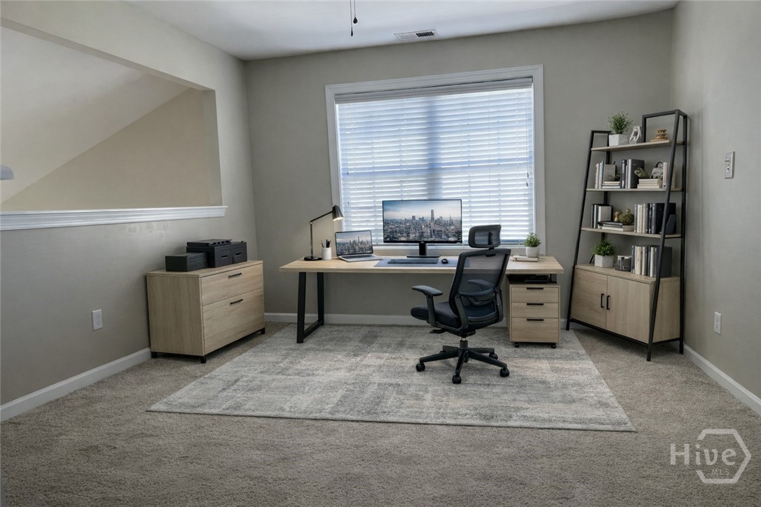 Highly sought after and well-maintained gated community at The Gates at Savannah Quarters w/low HOA fees! This home is 3-bedroom, 2.5-bath two-story home featuring formal dining room, spacious family room, perfect for comfortable living and entertaining. Kitchen offers SS Appliances w/refrigerator, granite countertops and pantry, separate laundry room w/additional oversized pantry/closet and coat closet. The main floor primary bedroom suite provides privacy, complete w/generous en-suite bath and walk-in closet. Upstairs, a versatile loft-ideal for a home office, media space, or play area, two (2) bedrooms and a large full bathroom. This home also features a double garage and ample attic storage. Enjoy exceptional community amenities including a clubhouse, pool, playground and RV/Boat storage. Within walking distance is a dog park just outside the rear gate, making this an ideal location for pet lovers. All of this is conveniently located just minutes from Pooler's premier shopping, dining, and easy access to I-16 and I-95. A must-see home in one of the area's most desirable neighborhoods!