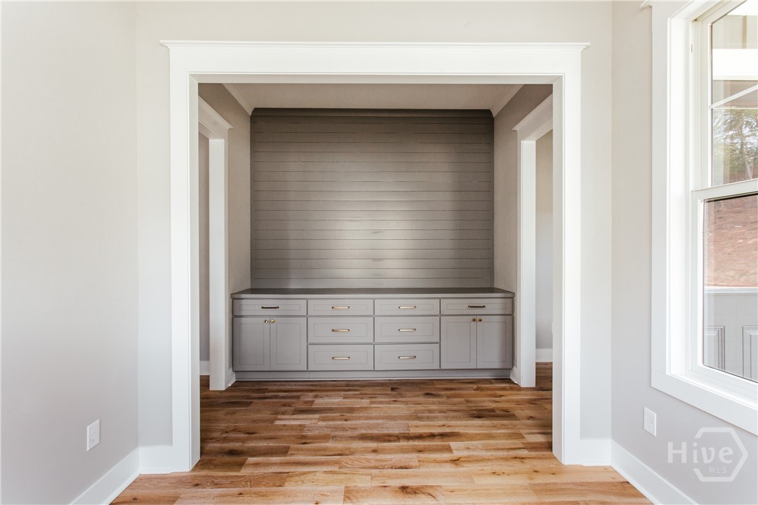 Located in Glenview—Athens’ newest neighborhood on the edge of Five Points—213 Highpointe Lane offers stunning views of Athens and the sound of the stadium on game days. Built in 2024, this home features three bedrooms and two and a half baths with refined finishes and thoughtful design. The main-level primary suite includes a spacious bath and walk-in closet, while upstairs bedrooms share a Jack-and-Jill bath with private vanities and water closets. The kitchen offers quartz countertops, KitchenAid appliances, custom millwork, and built-in bookshelves that frame the open living area. A flexible dining or sitting room includes a built-in sideboard, and hardwood floors run throughout. The detached two-car garage is connected by a breezeway. Glenview residents enjoy lawn care, fiber internet, trash pickup, and access to a fitness center and pool—all minutes from Five Points and UGA.