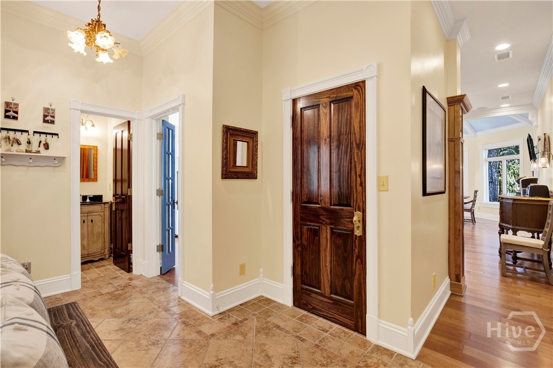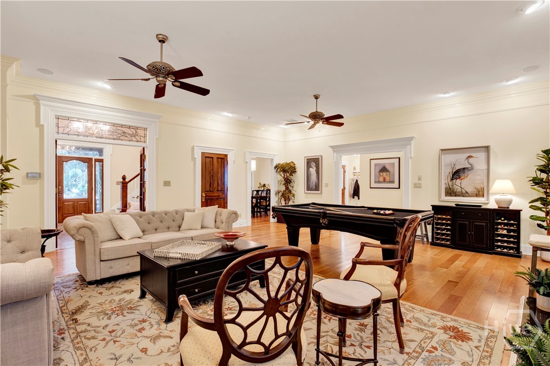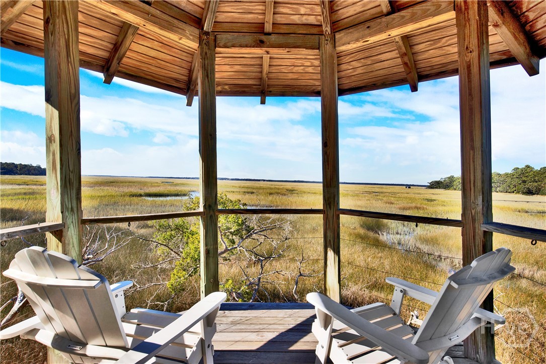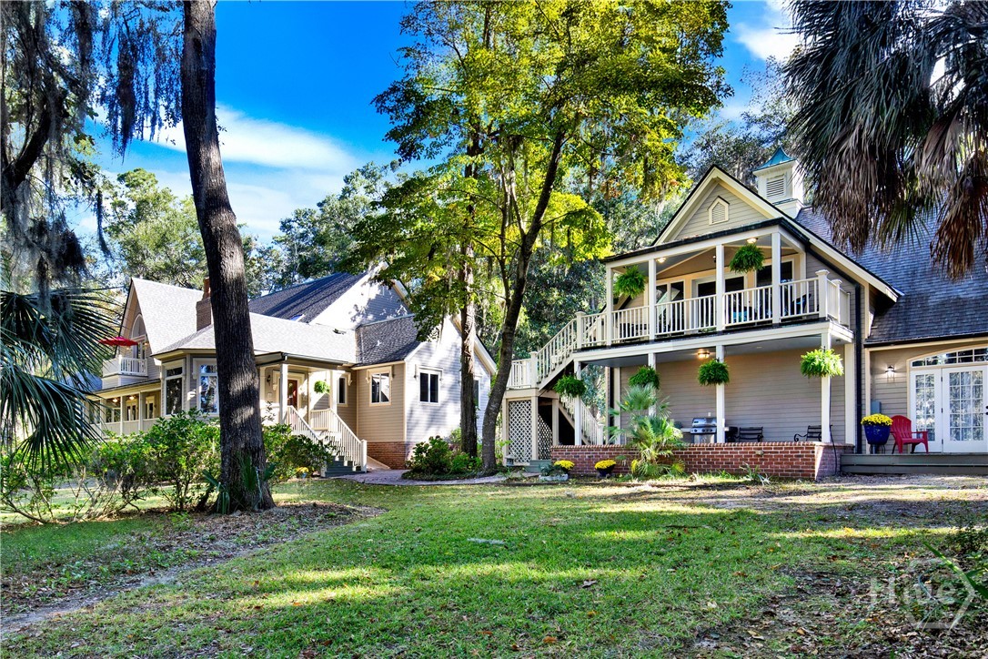 Enjoy the epitome of Lowcountry luxury in this stunning private estate, gracefully positioned on 7.42 acres of high ground overlooking the tranquil marshes and Medway River, offering exclusive nightly sunsets that transform the horizon into a masterpiece of color. Thoughtfully designed and custom built with exquisite attention to detail, this two-story home and accompanying carriage house combine elegance, comfort, and functionality in one exceptional property. The main residence showcases timeless craftsmanship with Hardie Plank siding, hardwood and ceramic tile flooring, and refined millwork throughout. The interior offers inviting spaces anchored by both indoor and outdoor fireplaces, enhancing the warmth of the great room and rear porch. All three upstairs bedrooms feature their own en suite bathrooms, providing ideal privacy and comfort for family or guests. The expansive primary suite is a true retreat, featuring separate his-and-hers vanities, a luxurious whirlpool tub, and a glass-enclosed sauna that opens directly to the porch—perfect for relaxing while taking in the serene marsh and river views. A detached carriage house provides additional versatility, featuring a 1,500 sq ft heated and cooled garage with a half bath and a private, fully equipped second-floor studio apartment complete with a full kitchen and bath—ideal for guests, multigenerational living, or rental use. In total, the estate offers six garage spaces, providing exceptional accommodation for vehicles, equipment, or a refined collector’s storage. Every element of this estate has been carefully considered to provide both beauty and functionality. The property includes a multi-zoned HVAC systems, 7-zone Rain Bird irrigation, extensive security system with intrusion, fire, smoke, and carbon dioxide sensors, and an 800 amp main service panel. Additional highlights include a 30 kW Baldor standby generator with automatic transfer switching, an instant hot water circulation system, RealCraft power-swing garage door opener, and a driveway alarm system. Outdoor living is just as impressive, with a covered second-floor porch offering a spectacular view of the forest, marsh, and river, and a paver-stone patio below designed for grilling and entertaining. The home is surrounded by majestic oaks, magnolias, and palms, creating a peaceful, natural setting that feels like a private sanctuary. With a new roof on both the main house and carriage house (2025) and a new well pump and updated electrical systems, this elevated estate offers peace of mind and modern reliability. Located on a quiet, private lane just minutes from the best of Richmond Hill, 331 Silver Stream Lane delivers the perfect blend of refined living, timeless craftsmanship, and natural beauty.
