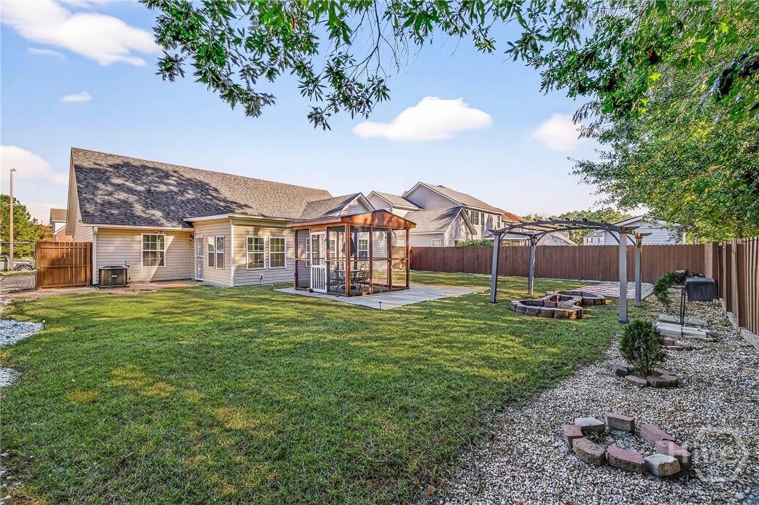 Gorgeous MOVE IN READY, 4Bd/2 and 1Half Ba, 2434 Sqft Home w/New Roof, New HVAC, New Flooring, New Detached Screen Porch, New Privacy Fence, Walking Trails, Upgrades Inside and Out. All Band New Luxury Vinyl Plank Flooring (no carpet anywhere) granite countertops in the kitchen and bathrooms, and spacious layout designed for everyday living. The Impressive Downstairs Owner’s Suite features a sitting area, tray ceiling, huge walk-in closet, dual vanities, a separate soaking tub, and walk-in shower. The 4th bedroom can be used as a study or flexible space for relaxation. Enjoy multiple outdoor living areas with a custom landscaped and hardscape backyard, New Privacy Fence, and Detached Covered Screened Porch or gaze out from the sunroom. With a New Architectural Shingled Roof, New HVAC System, and New Gutters, this home blends modern upgrades with long-term peace of mind while you enjoy your Community Pool, Fishing Lake, Club House and Walking Trails. This Home Is Truly A Must-See!