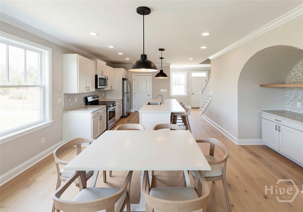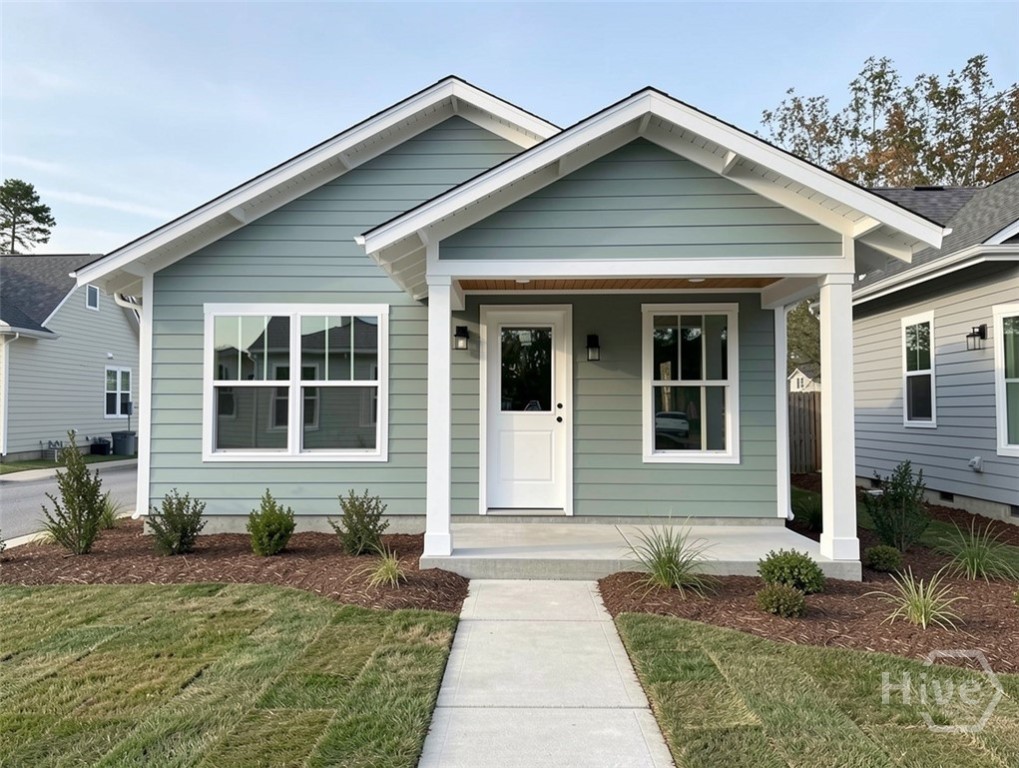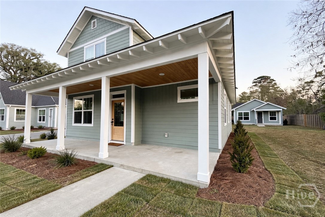 Discover meaningful value in Camellia Trail at this newly constructed main residence paired with a detached 1-bedroom ADU designed for rental income, guests, or multigenerational living. The main home offers a thoughtfully designed open-concept layout featuring a spacious kitchen with island, granite countertops, stainless steel appliances, and durable luxury vinyl plank flooring throughout the main living areas. The covered front porch with exposed rafters and tongue-and-groove ceiling creates classic Lowcountry charm, perfect for relaxing and enjoying the coastal breeze. The main-level primary suite includes a walk-in closet and tiled walk-in shower, while two additional bedrooms and a shared bath upstairs provide comfortable space for family or guests. The private 443 SF ADU features its own kitchen, living area, bedroom, full bath, walk-in closet, and in-unit laundry; ideal for long-term rental income, extended family, or a flexible workspace. Live in one space while generating income from the other. A standout value in today’s market offering both lifestyle and income potential in one unique Savannah property!