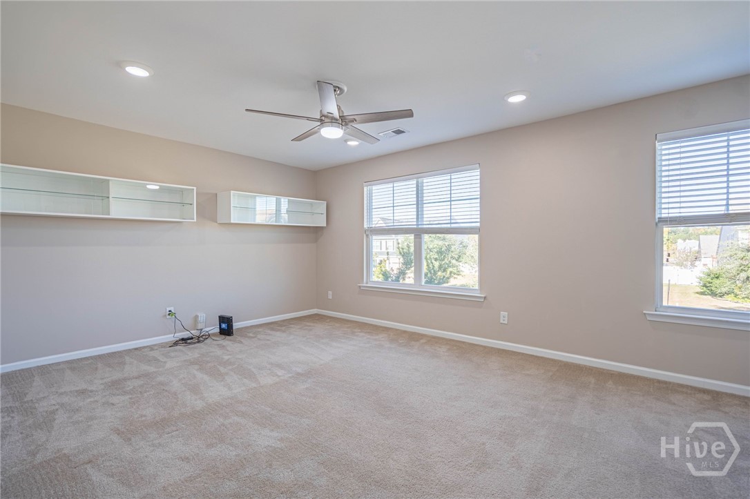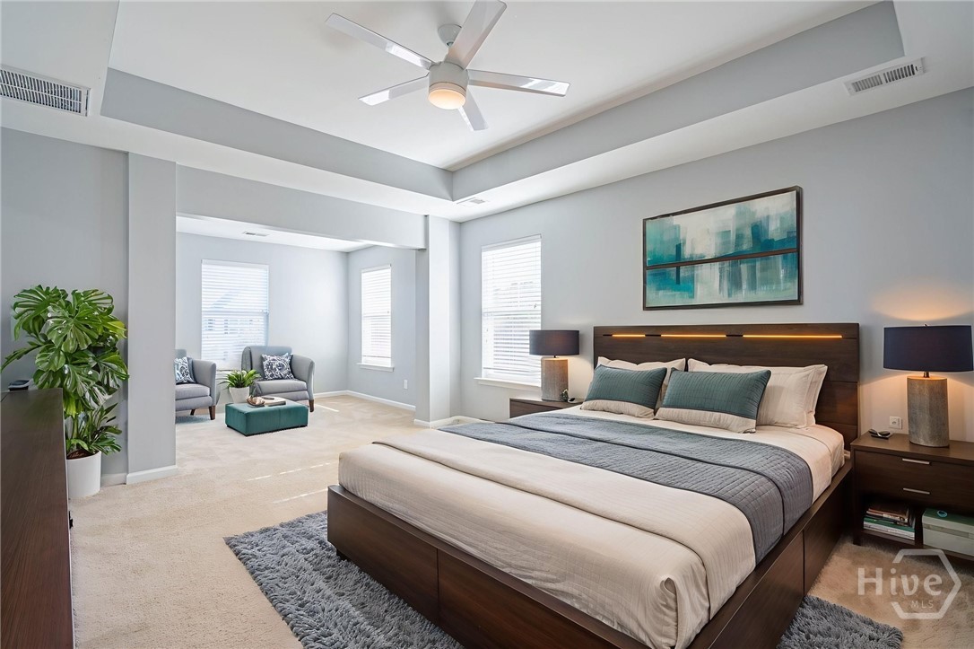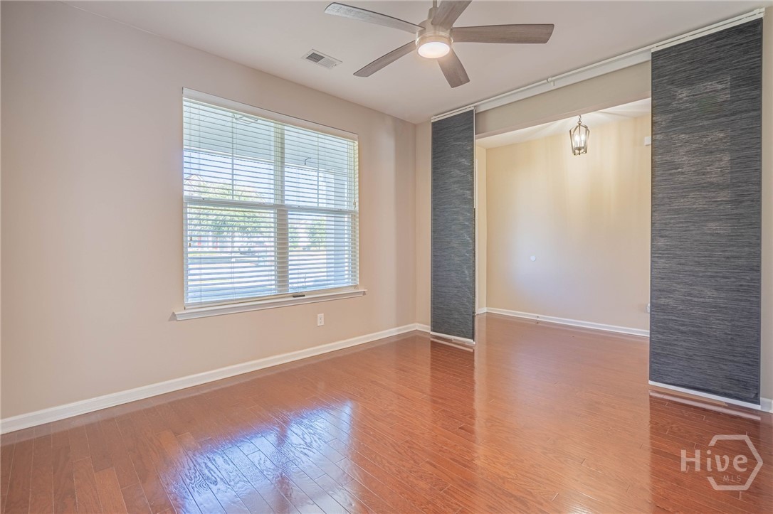 Beautiful, maintained home, that's 3,240 sq ft and sits on an oversize corner lot and backs up to nature. Real hardwood flooring and an open layout. The spacious living room with a cozy fireplace flows into the eat-in kitchen, granite countertops, abundant cabinetry, smart appliances, huge walk-in pantry and the perfect setup for gathering. A rare main-level bedroom with a full bath provides flexibility, ideal for guests, or multigenerational living. Upstairs, a massive loft offers possibilities for a game room or media space. A staircase up to 3rd floor attic with tons of additional storage or could be converted into additional rooms. The primary suite is a true retreat, featuring a sitting area, an oversized walk-in closet, and double vanities bath with a walk-in shower. Additional bedrooms are impressively large. Relax on the screened porch overlooking a spacious, fully fenced backyard. Ample storage is available throughout the space.
