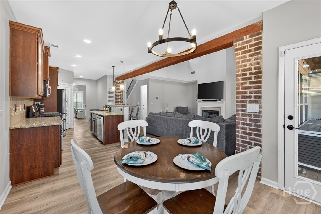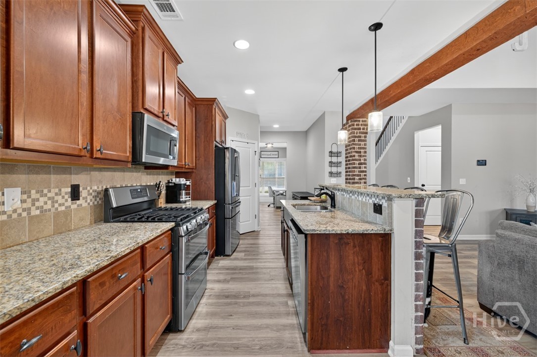 ***$4,500 toward closing!!! Move-In Ready Craftsman Home w/Backyard Oasis. NEW HVAC, NEW ROOF, NEW SOLID SURFACE FLOORS thru-out, FRESH interior and exterior paint, New stainless appliances & NEW plumbing fixtures. This stunning 4-bedroom, 3.5-bath, MASTER ON MAIN blends timeless, classic charm with modern comfort and upgrades. Inside, the open floor plan flows effortlessly - The chef’s kitchen delights with granite countertops, eat-in b'fast area, & bar seating, plus separate dining room. The master suite on the main offers a tranquil escape with spa inspired bath: dual vanity, soaking tub, sep. shower, & oversized walk-in closet. Upstairs, 2 spacious ensuite bedrooms & add'l guest rm — perfect for family, guests, or a home office setup. Fully fenced backyard oasis: covered, custom stamped-concrete patio & firepit. Located inside Jefferson city limits. Two community pools. Don’t miss your chance to make 748 Hawkins Creek Drive YOUR HOME!