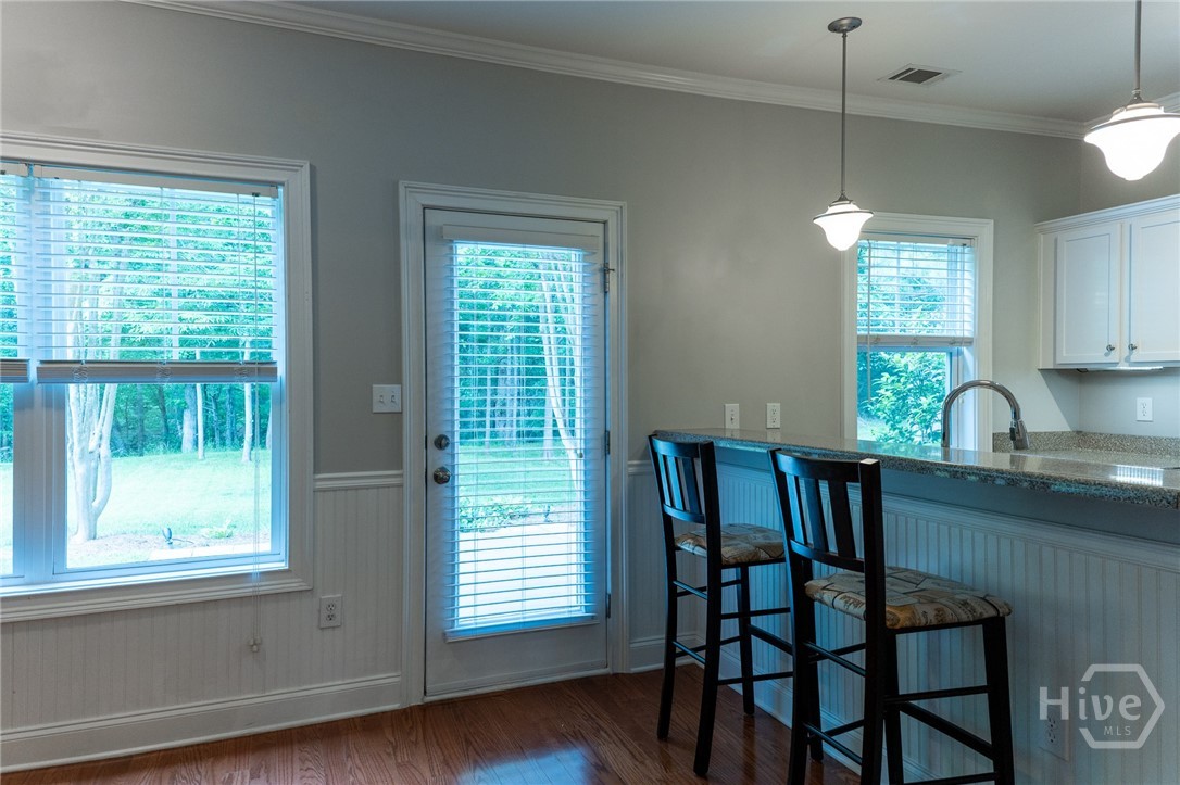Brookfield Village is a quaint peaceful neighbor just off Whitehead Road in the growing northern area of Athens, Georgia. Sidewalks and porches allow for neighborly interaction, but only when you want to be social. Close your door and enjoy quiet living, or step out onto the backyard patio and enjoy the privacy of a customized yard that flows right into wooded acres leading down a hill to a creek. Enter the family room through the front porch and immediately feel the comfort of a fireplace in the family room. The kitchen and breakfast area in the rear of the house further showcase the tranquil patio, grassy lawn and trees. Kitchen noise is reduced by the partial wall which divides it from the dining room and family room. With the primary suite on the main floor, one could spend the entire day on this level, but there are two more bedrooms and a bonus room on the upper level, plus a full bathroom. This design makes the most of 2051 square feet interior. And it's ready for move-in!