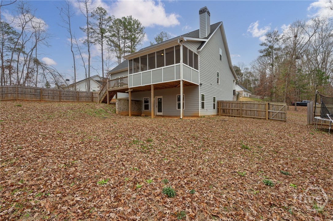 Discover modern living on more than 3 acres in Madison County. This spacious 4BR, 3.5BA home offers an open, airy layout with high ceilings, LVP flooring, and designer finishes. The main level features an open-concept kitchen & living area with granite countertops, tile backsplash, stainless steel appliances, built-in shelves, & a brick fireplace. Tray ceilings add an elegant touch to both spaces. The main-level primary suite is a true retreat, boasting a large en-suite bath with modern tile flooring, a separate shower, and a generous walk-in closet with custom shelving. A dedicated office/bonus room on the main floor provides excellent flexibility for work or play. Upstairs, you’ll find 3 additional bedrooms & 2 full bathrooms, offering plenty of room. Enjoy outdoor living with a screened porch overlooking the huge fenced in backyard. There is a huge unfinished basement with exterior access adding endless potential! Move-in ready & beautifully finished, this home combines comfort, space, & style in a desirable location.