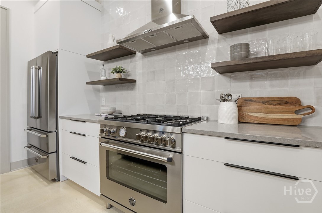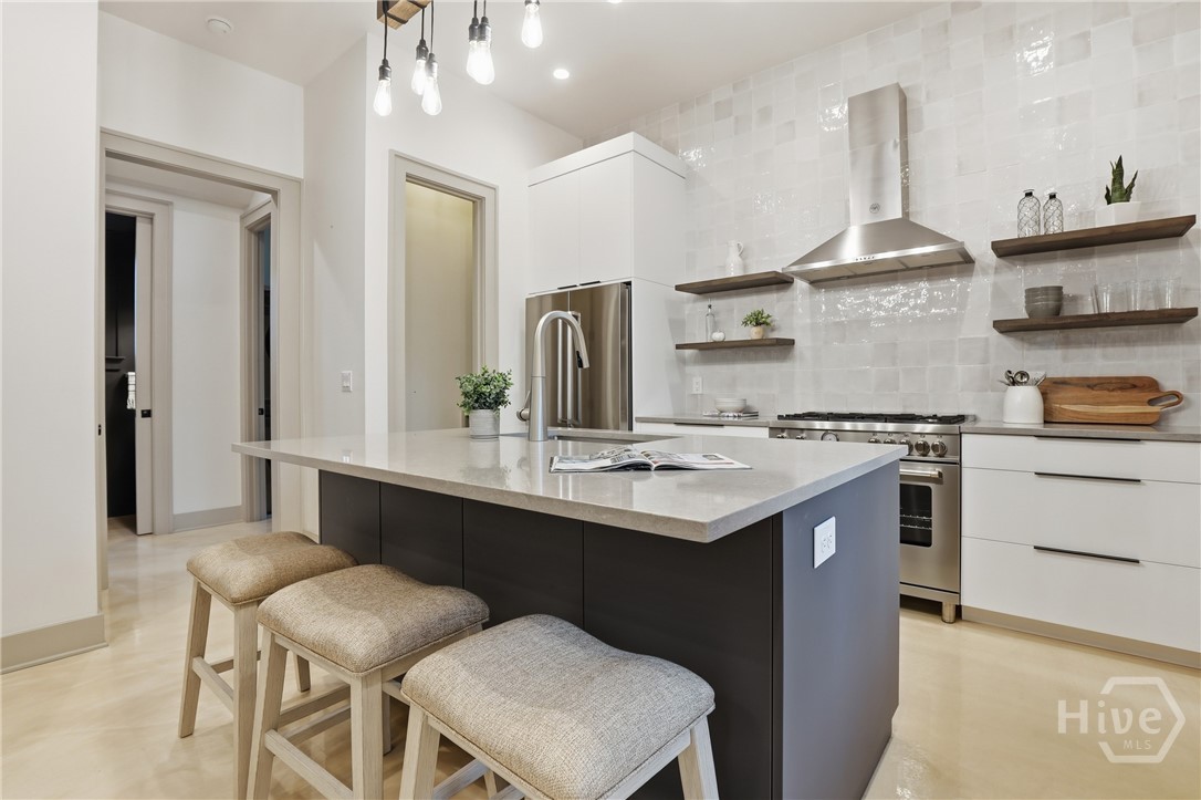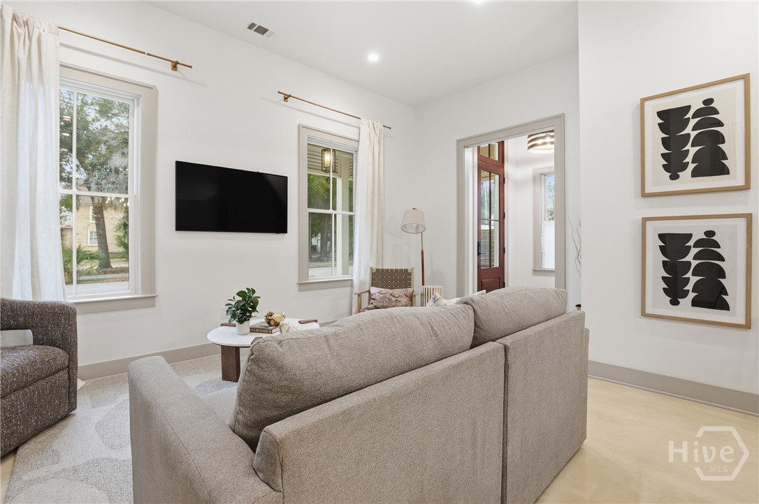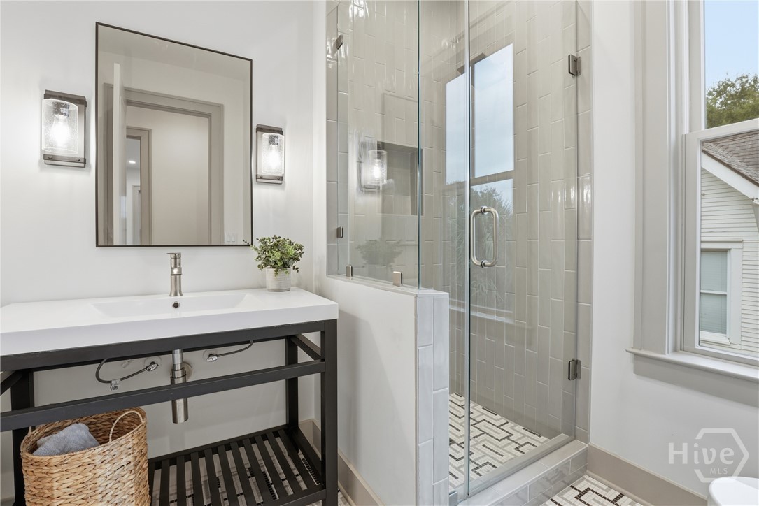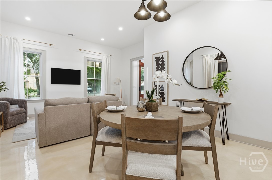 Ideally located near downtown Savannah in the vibrant Starland district, this newly constructed home sits just blocks from some of the city's most popular shops & restaurants. Filled with natural light, the open floor plan showcases sleek epoxy concrete floors and luxurious Bertazzoni Italia Appliances, including a 5 burner gas stove, making it perfect for cooking and entertaining. A private courtyard and inviting screened porch offer peaceful outdoor living spaces to relax and enjoy Savannah's beautiful weather. With three bedrooms upstairs, two and a half modern baths, a tankless water heater, abundant closet space, and convenient off-street parking, this home perfectly blends modern luxury with the timeless charm of Savannah's historic surroundings.