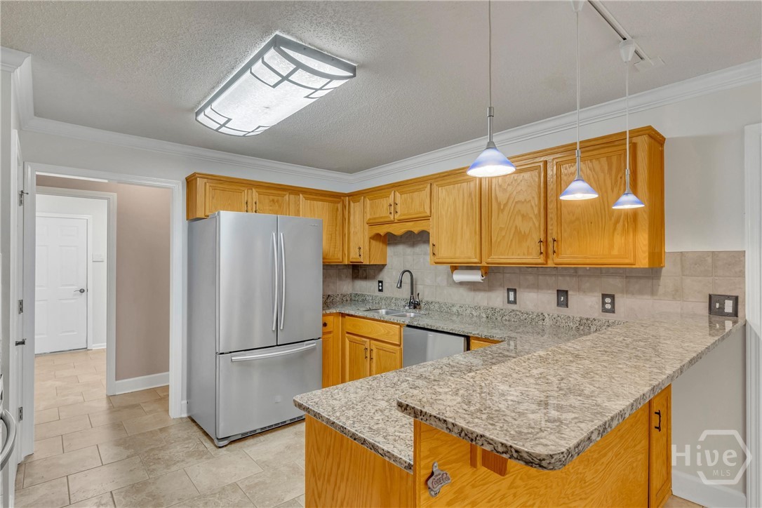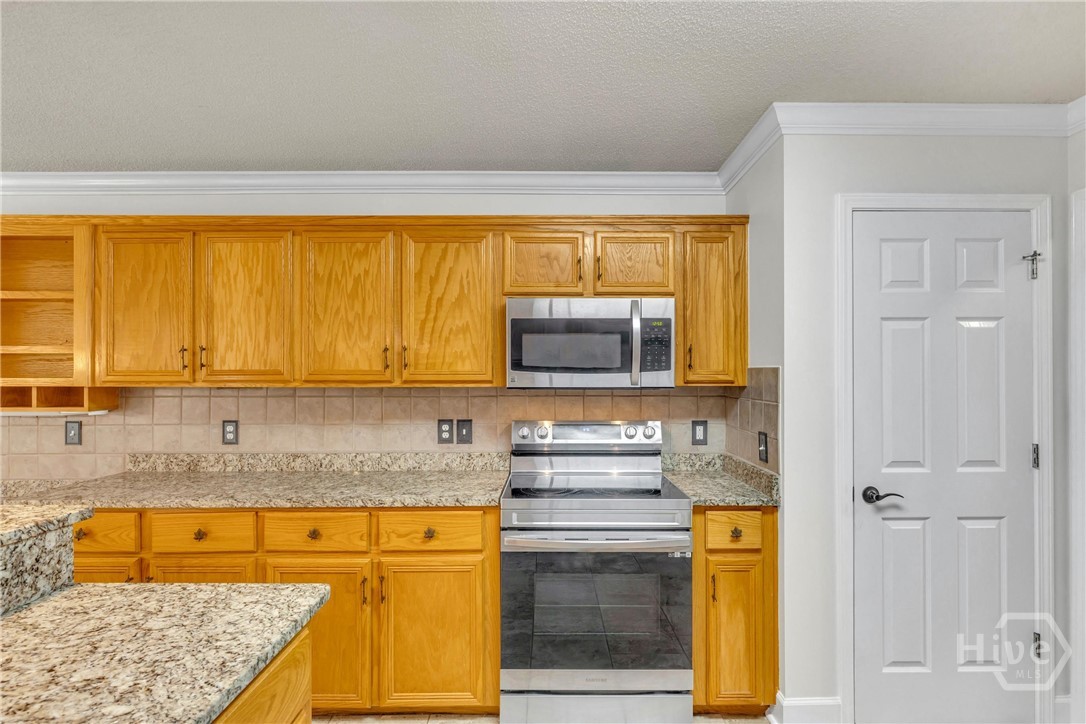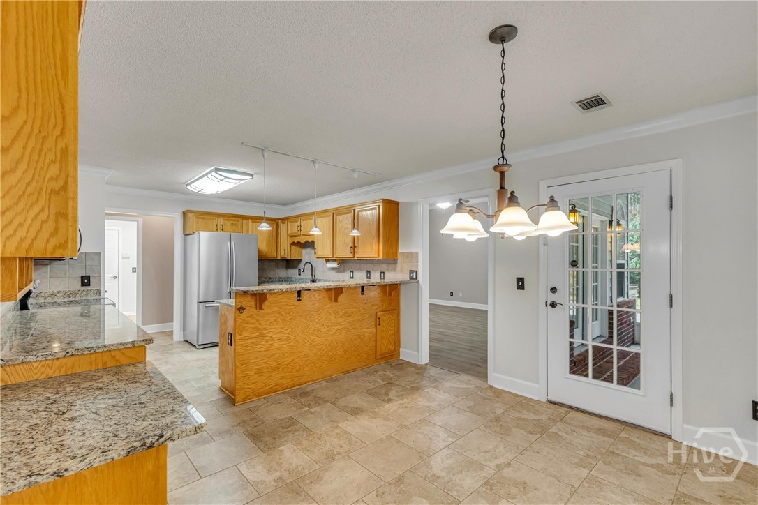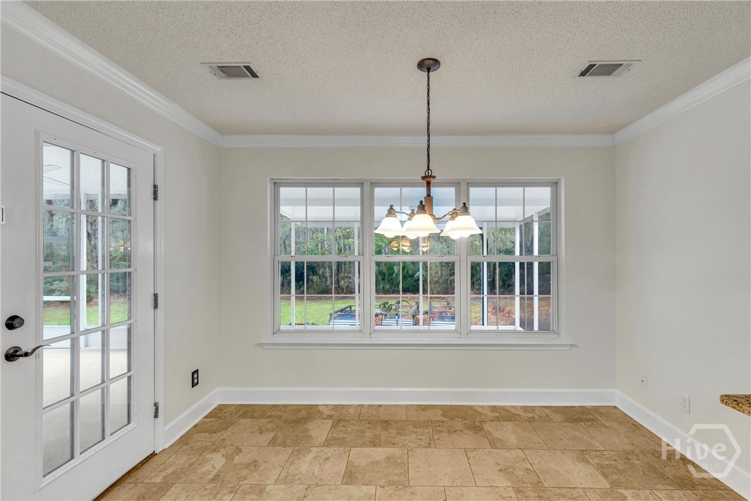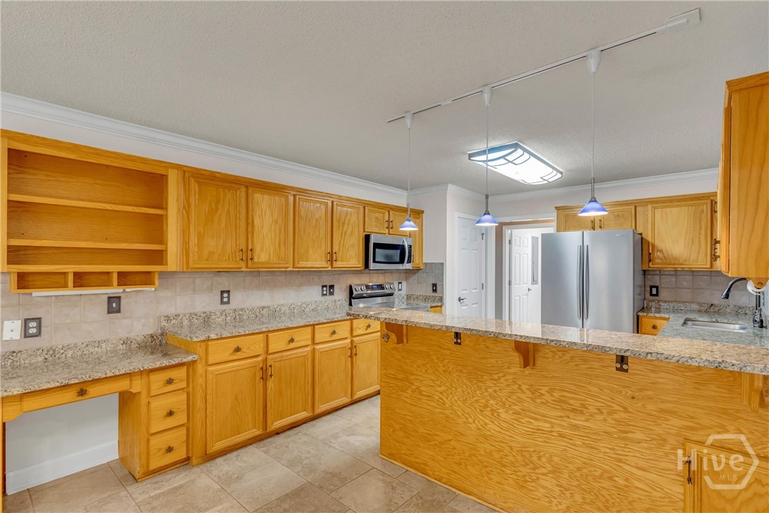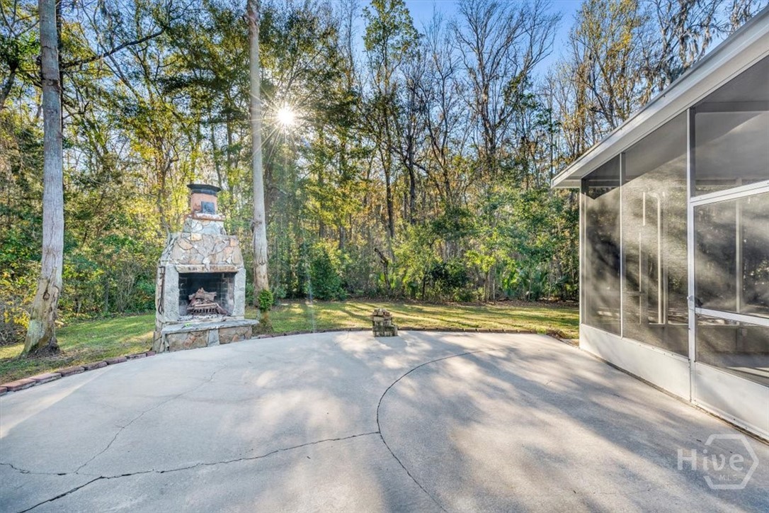 This spacious 5-bedroom features a large bonus room with a large double-sized closet) plus a three-bathroom. This one-owner home is beautifully maintained and offers timeless charm and endless potential. Located in the highly sought-after subdivision of Kinsale. Numerous recent updates, including a new roof (2023), a new downstairs HVAC unit (2023), a new upstairs HVAC unit (2020), and a new water heater (2022). Enjoy outdoor living at its best with a huge screened-in porch (550 sq ft, with electricity for a hot tub) and a spacious patio (300 sq ft) featuring a cozy outdoor brick fireplace—perfect for entertaining or relaxing year-round. The beautifully landscaped, private wooded lot at the end of the street provides a serene retreat: a formal dining room and a warm living room with a wood-burning fireplace. The primary suite is conveniently located on the main floor and features an en-suite bathroom with double vanities, a soaking tub, and a separate stand-up shower. Two additional bedrooms and a full bath are also located on the main level, while the upper level offers three more bedrooms and an additional full bath. New carpet installed in the downstairs bedrooms and one upstairs bedroom/bonus room. Less than a minute from the famous Fish Tales restaurant and Fort McAllister Marina, plus the Fort McAllister State Park. This home provides generous space and a peaceful setting—an exceptional opportunity you won’t want to miss.