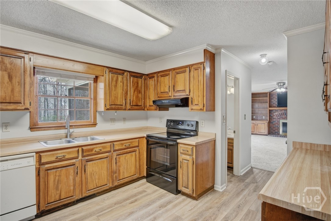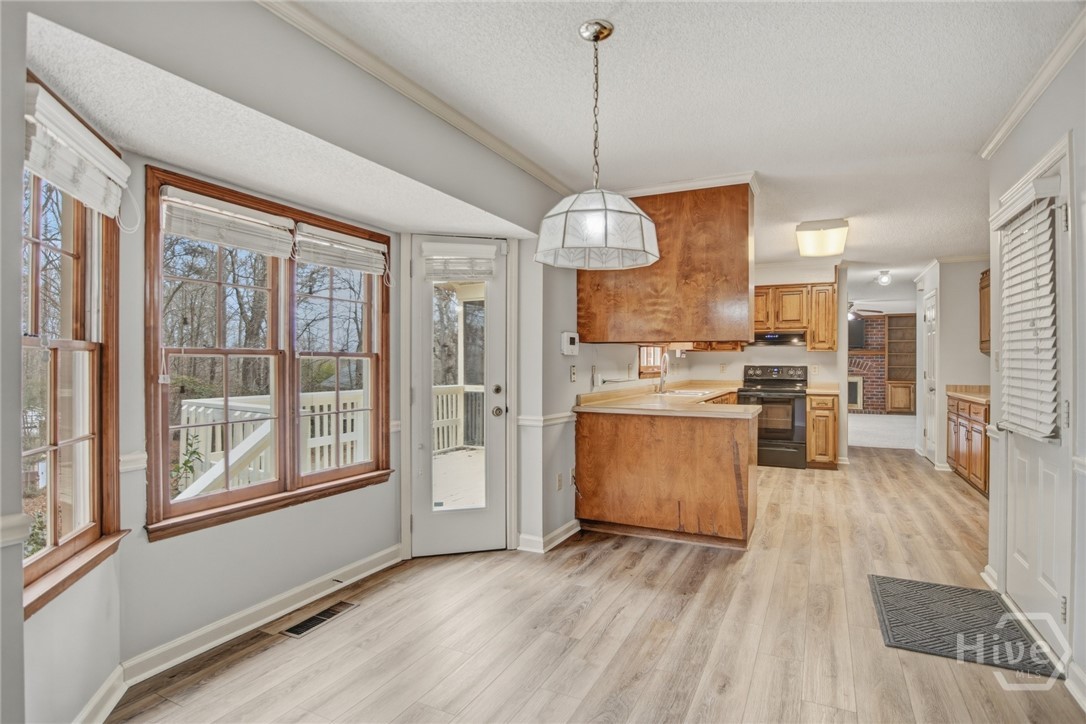 Popular Huntington Park Neighborhood all brick home ready to view! This traditional all brick home features 4 bedrooms and 2.5 baths with new LVP flooring, new carpet and new exterior and interior paint. Interior features include kitchen with breakfast room & bay window leading out to an open deck and staircase to backyard. The family room has a brick fireplace with built-ins on each side as well as one half bath between kitchen and family room for guest and convenience. Other features include keeping room/office on main floor, separate dining room, and laundry room off the breakfast area. All 4 four bedrooms upstairs with master bath and full guest bath. The 2 car garage has extra storage and additional storage in crawl space. This location is convenient and easy access to Major roads, shopping, eateries and medical facilities. HOA is voluntary.