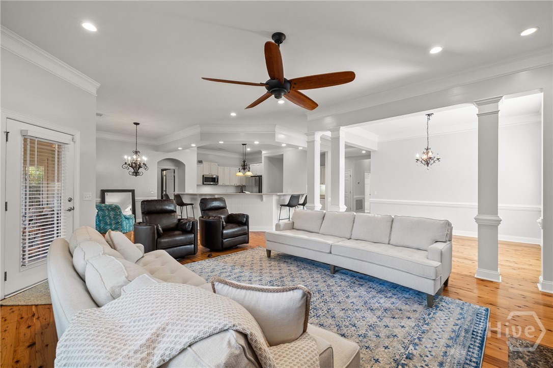 Experience refined waterfront living in River Oaks, an exclusive gated community on the Ogeechee River in Richmond Hill with deep water dock pool and beautiful clubhouse. Beautifully maintained first-floor condo offers 2,408 square ft of thoughtfully designed living space with soaring 10-foot ceilings & open floor plan. The spacious kitchen features a Huge breakfast bar that flows seamlessly into the dining & living areas. ideal for both everyday living and entertaining. Split-bedroom layout includes three bedrooms, two baths, & private office. The expansive primary suite offers double vanities, a soaking tub, separate shower, & walk-in closet. Relax on the screened-in porch overlooking wooded area. Additional highlights include an oversized double garage & ample storage. River Oaks delivers resort-style amenities, including a clubhouse, pool, hot tub, fitness center, grilling areas, marina, deep-water dock access, fire pit & stunning river views . Enjoy low-maintenance living just minutes from Richmond Hill schools, shopping, and Savannah.