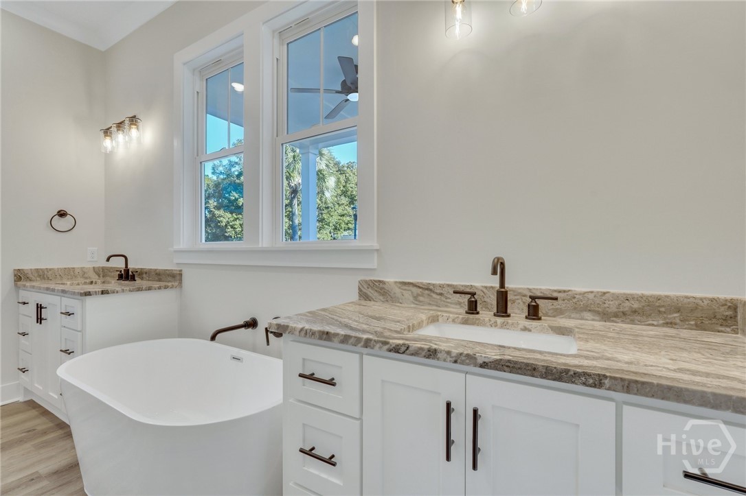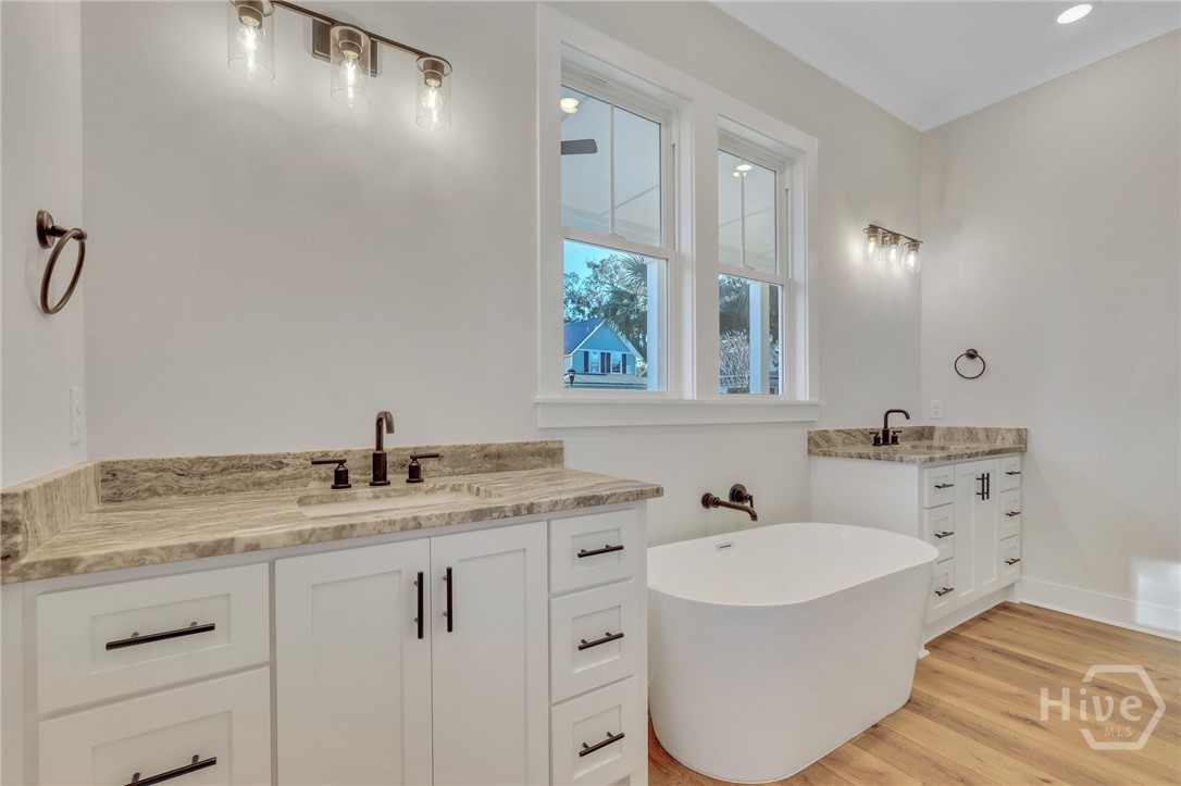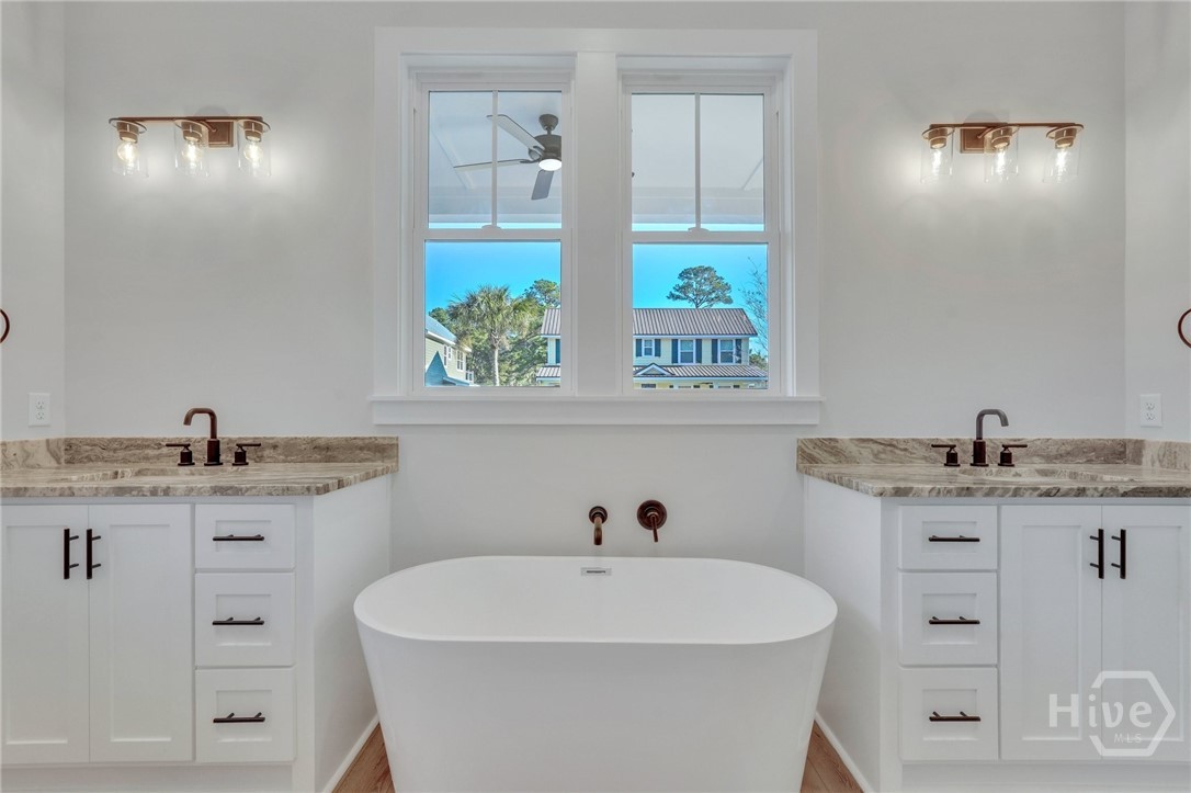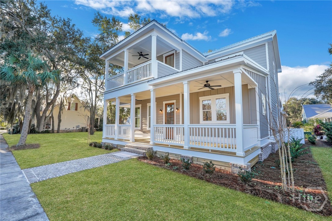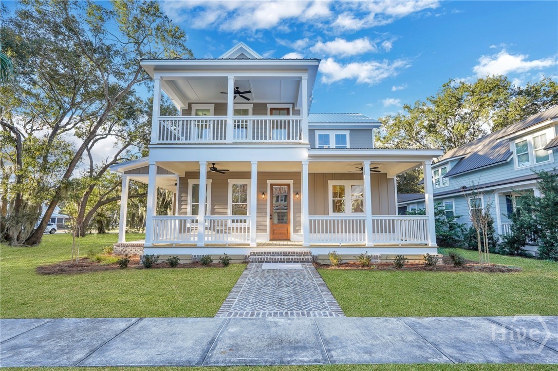 MOVE IN READY New Construction in Yellow Bluff Coastal Cottages & Marina! This home is more than dreamy. The floor plan is made for outdoor living with a full front porch, side screened porch and a second story covered balcony. It is thoughtfully planned for the open living concept. The bright & airy living room is open to the dining space & kitchen. Office space with wood stained french doors. Laundry room with cabinets, sink and a mudroom bench with cubbies. The master suite offers two walk in closets with custom built shelving, dual vanities, soaking tub and tiled shower. Upstairs offers a SECOND LIVING ROOM, two guest rooms and a bathroom with a double vanity and tiled shower. Gas fireplace, LVP flooring, marble countertops, custom cabinetry, 2 car garage. The natural landscaping on this lot emulates coastal Georgia with the palm trees and beautiful oak. Yellow Bluff amenities include boat hoist, docks, clubhouse and pool. Flood Ins. is NOT mandatory.
