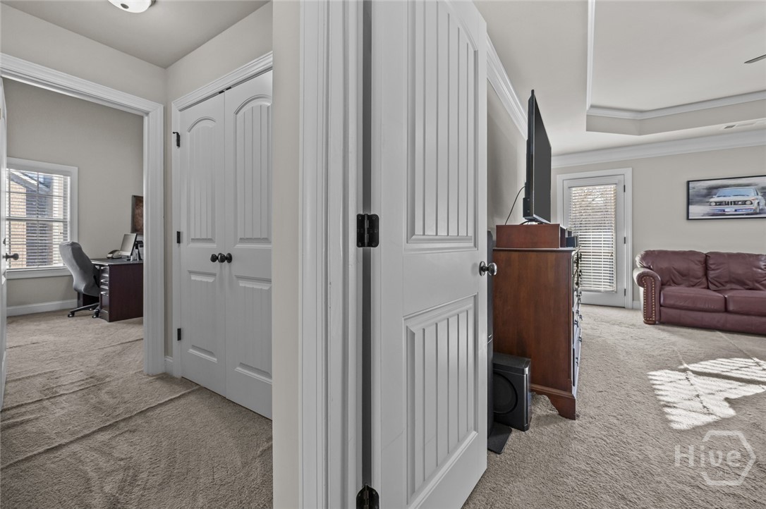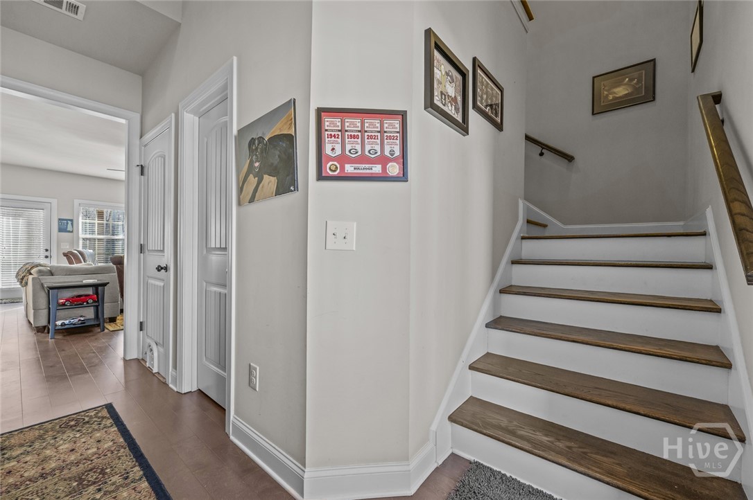 Don’t miss this rare opportunity in Towns Walk—one of the few homes in the neighborhood offering a full-footprint, unfinished basement and private backyard views overlooking McNutt Creek. Tucked near the back of the community, this home enjoys exceptional privacy while remaining just a short walk to the neighborhood pool. The backyard abuts neighborhood association green space that will never be developed, creating a peaceful, wooded backdrop and scenic views from the rear porch. Built in 2016, the home features a thoughtful two-story layout with an attached two-car garage and an open main level designed for everyday living and entertaining. The main floor includes a spacious kitchen, living area, powder room, and laundry room. Upstairs, the primary suite offers tray ceilings, a private rear porch, and a well-appointed en-suite bathroom with double vanities, a soaking tub, and a separate shower. Two additional bedrooms share a convenient Jack-and-Jill bathroom. The full unfinished basement is stubbed and framed, offering excellent potential for future expansion or storage. Major mechanical peace of mind comes from both HVAC systems being replaced within the past two years. The Towns Walk homeowners association provides low-maintenance living, including landscaping and trash service—allowing you to enjoy the home and its natural setting without the upkeep. A unique combination of privacy, future potential, and neighborhood amenities—this Towns Walk home truly stands apart.