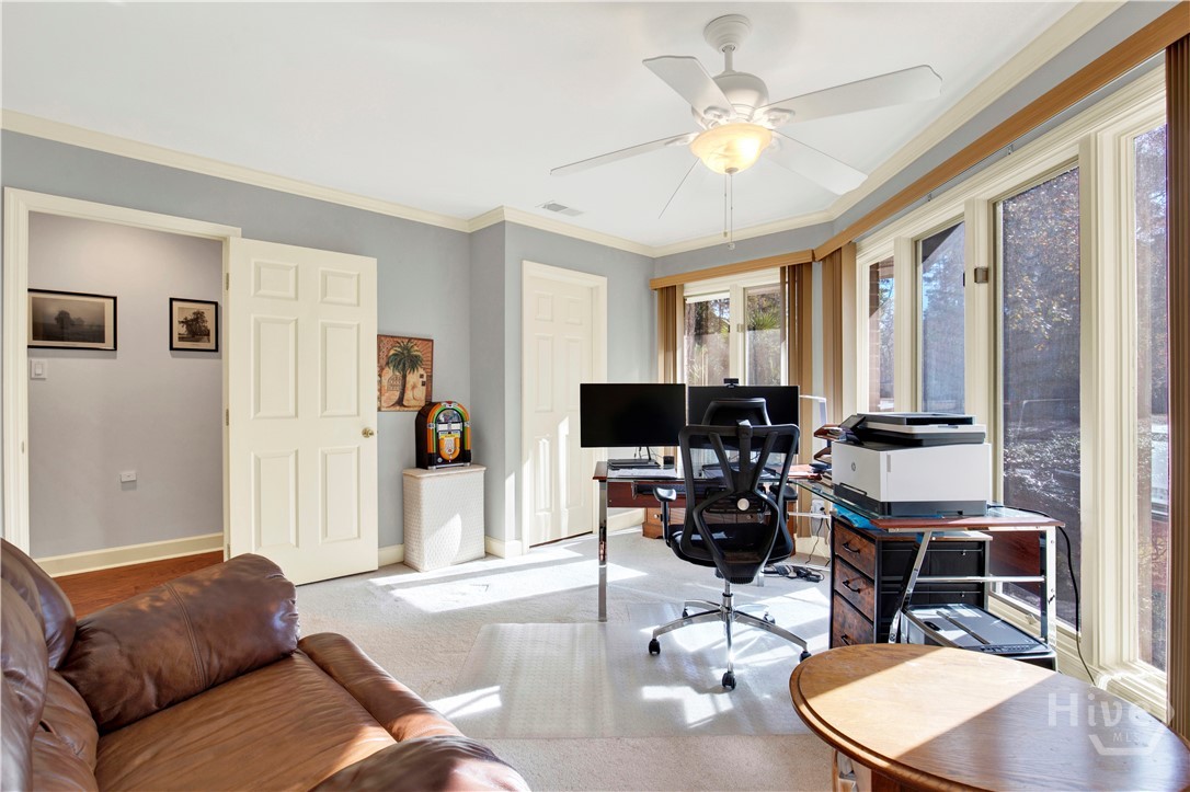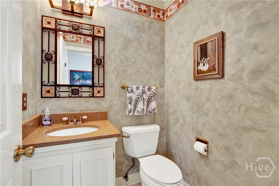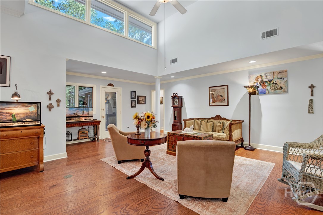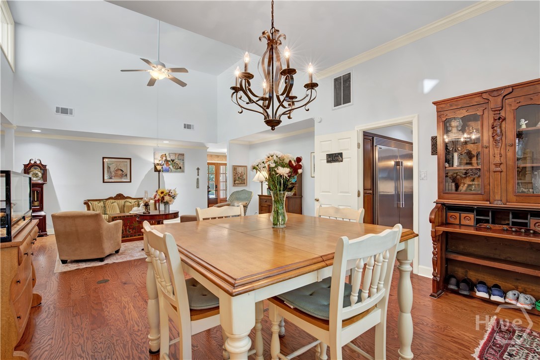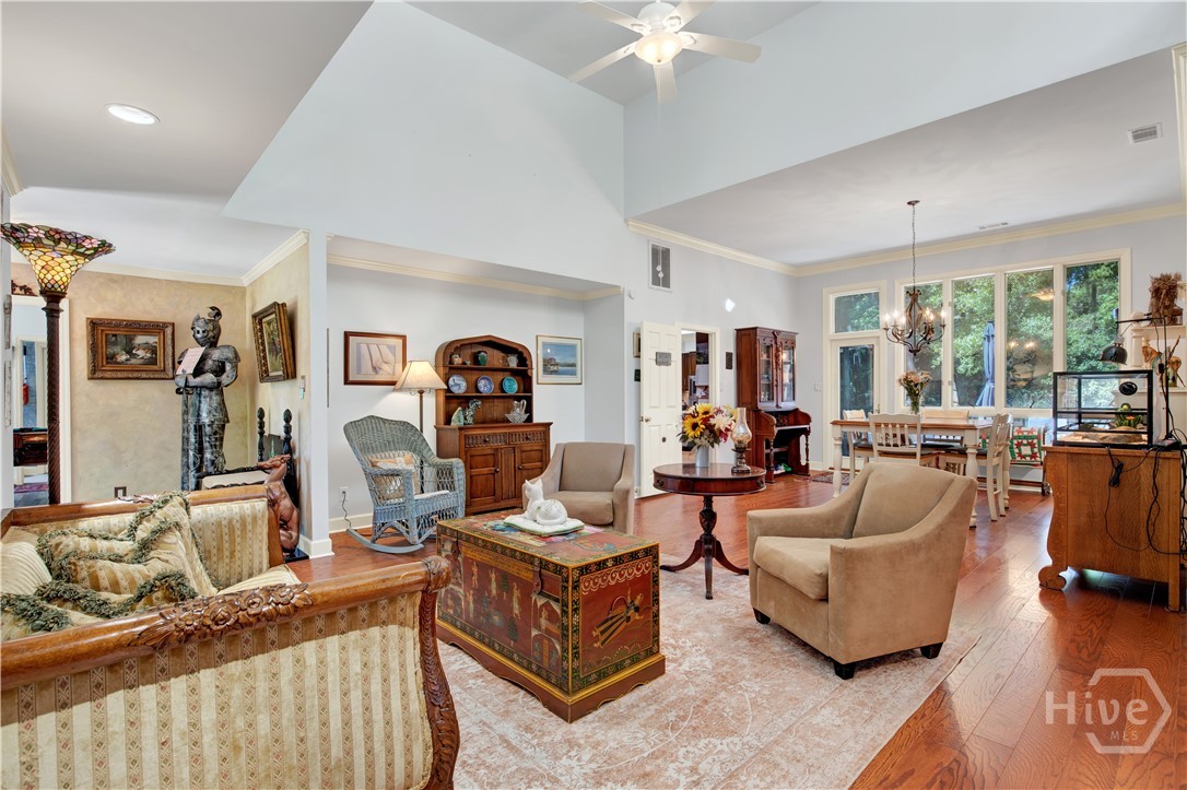 Welcome to 217 Wiley Bottom Road, an exceptional single story, 3 bedroom, 2 ½ bath low maintenance brick home located on a large lot in the desirable community of The Landings on Skidaway Island. Step inside to a welcoming foyer and be greeted by new flooring, fresh paint and expansive volume ceilings. The spacious kitchen is a chef’s dream, with granite counters, stainless appliances, beautiful cherry cabinets and plenty of storage space. The kitchen island opens to the family room featuring a show stopping wood burning fireplace. There’s plenty of space to entertain family and friends in the formal living and dining areas. The primary suite is a true private retreat with an ensuite bath with luxurious soaking tub, separate shower, dual vanities and a large walk-in closet. Two additional bedrooms share a full bath, and a powder room off the family room serves guests. Your furry friends will enjoy the fenced in backyard while you relax on the spacious back deck or pick some oranges from your very own mature fruit trees. Attached two car garage with additional golf cart parking. A newer roof and a whole house water filtration system add to peace of mind. This home is ready for you! Make it yours today!
