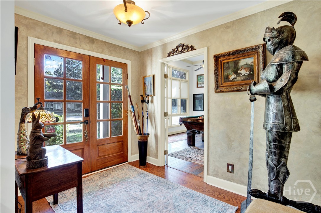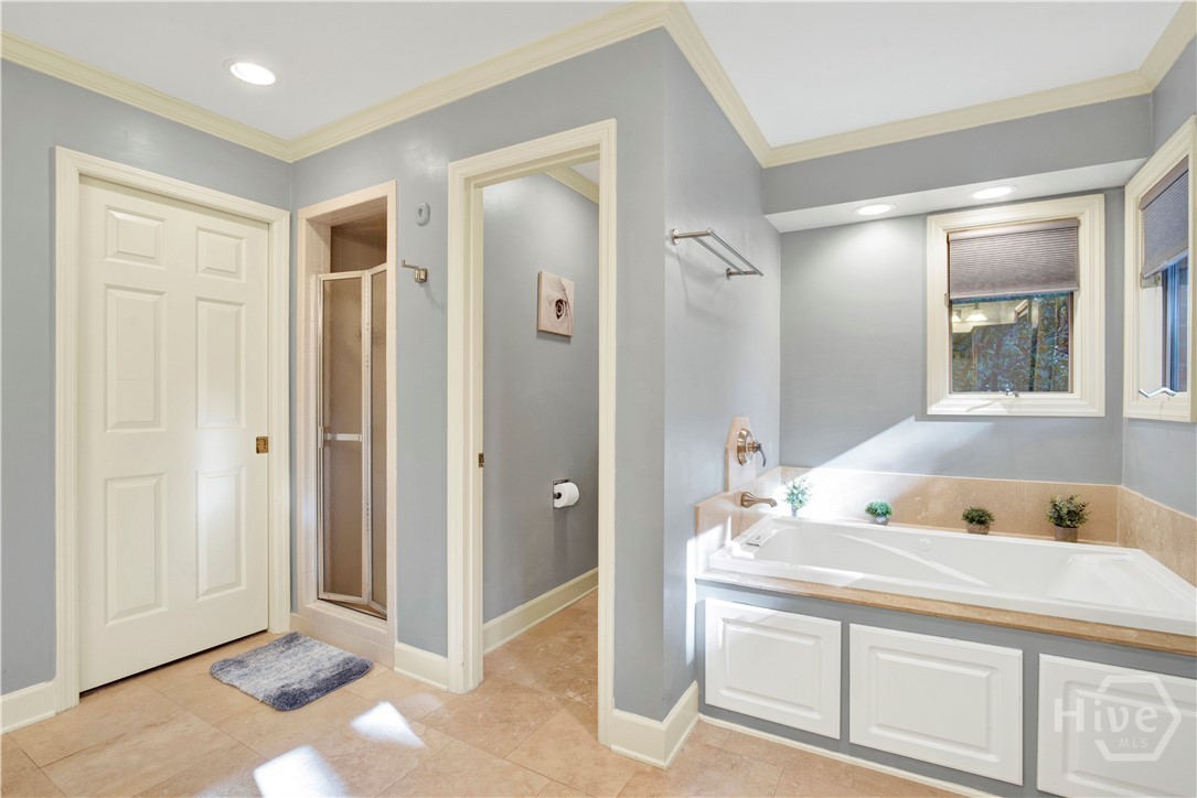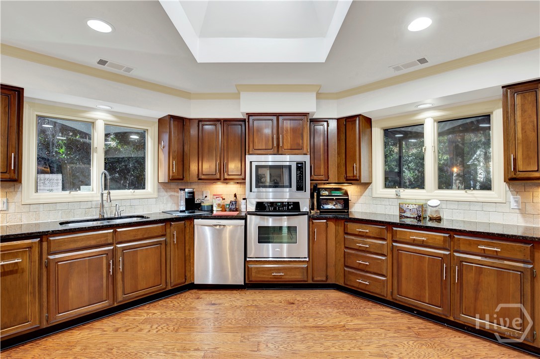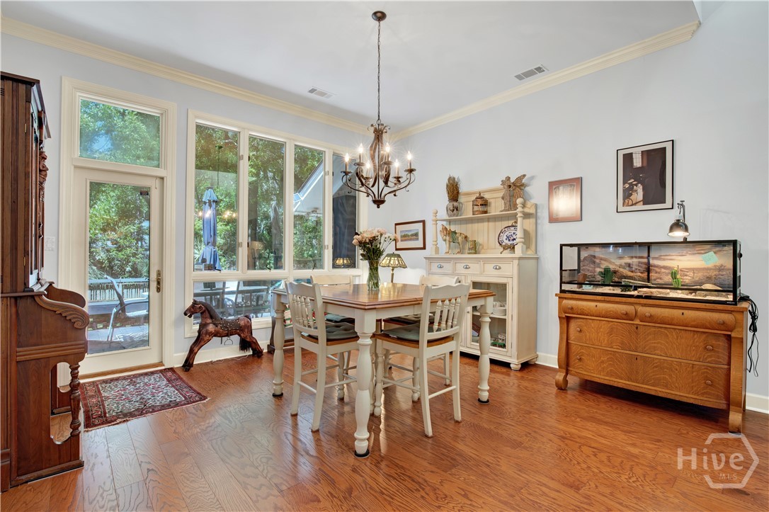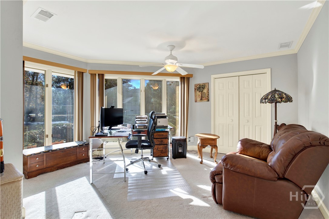 Welcome to 217 Wiley Bottom Road, an exceptional single story, 3 bedroom, 2 ½ bath low maintenance brick home located on a large lot in the desirable community of The Landings on Skidaway Island. Step inside to a welcoming foyer and be greeted by new flooring, fresh paint and expansive volume ceilings. The spacious kitchen is a chef’s dream, with granite counters, stainless appliances, beautiful cherry cabinets and plenty of storage space. The kitchen island opens to the family room featuring a show stopping wood burning fireplace. There’s plenty of space to entertain family and friends in the formal living and dining areas. The primary suite is a true private retreat with an ensuite bath with luxurious soaking tub, separate shower, dual vanities and a large walk-in closet. Two additional bedrooms share a full bath, and a powder room off the family room serves guests. Your furry friends will enjoy the fenced in backyard while you relax on the spacious back deck or pick some oranges from your very own mature fruit trees. Attached two car garage with additional golf cart parking. A newer roof and a whole house water filtration system add to peace of mind. This home is ready for you! Make it yours today!