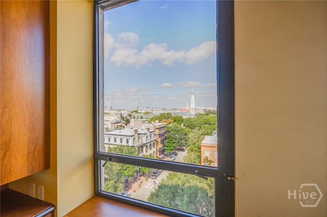Perched on the 6th floor of The DeSoto, this residence offers a rare opportunity to live in one of downtown Savannah’s most coveted addresses. Situated on the northwest corner, unit is filled with natural light & features sweeping views of the downtown skyline and iconic Talmadge Bridge. Thoughtfully designed open-concept living and dining areas create an inviting setting for both everyday living & elegant entertaining. Gourmet kitchen is outfitted with premium appliances and refined finishes, blending style with functionality. Spacious primary suite serves as a private retreat with generous his-and-hers closets and well-appointed bath. Two additional BR's and Bathrooms provide exceptional flexibility, including en-suite bedroom with private balcony—ideal for guests, a home office, or studio. Residents enjoy 24-hour concierge services, secure access, & 2 deeded underground parking spaces. Turnkey and beautifully maintained, this residence exemplifies elevated downtown Savannah living.