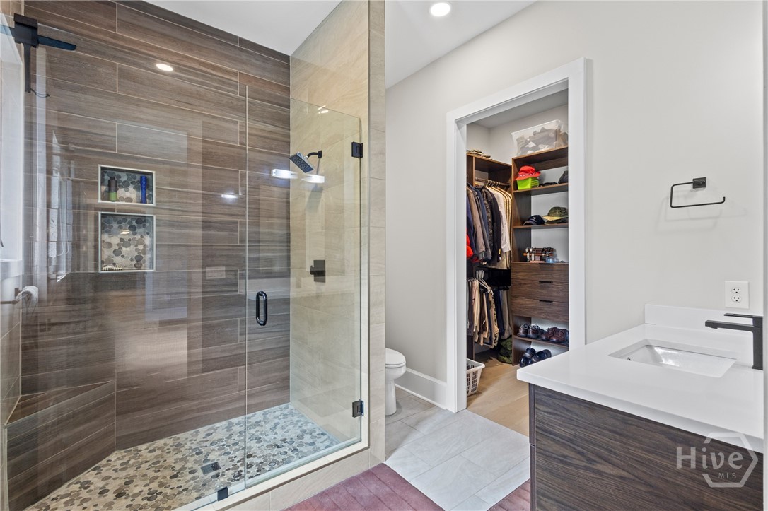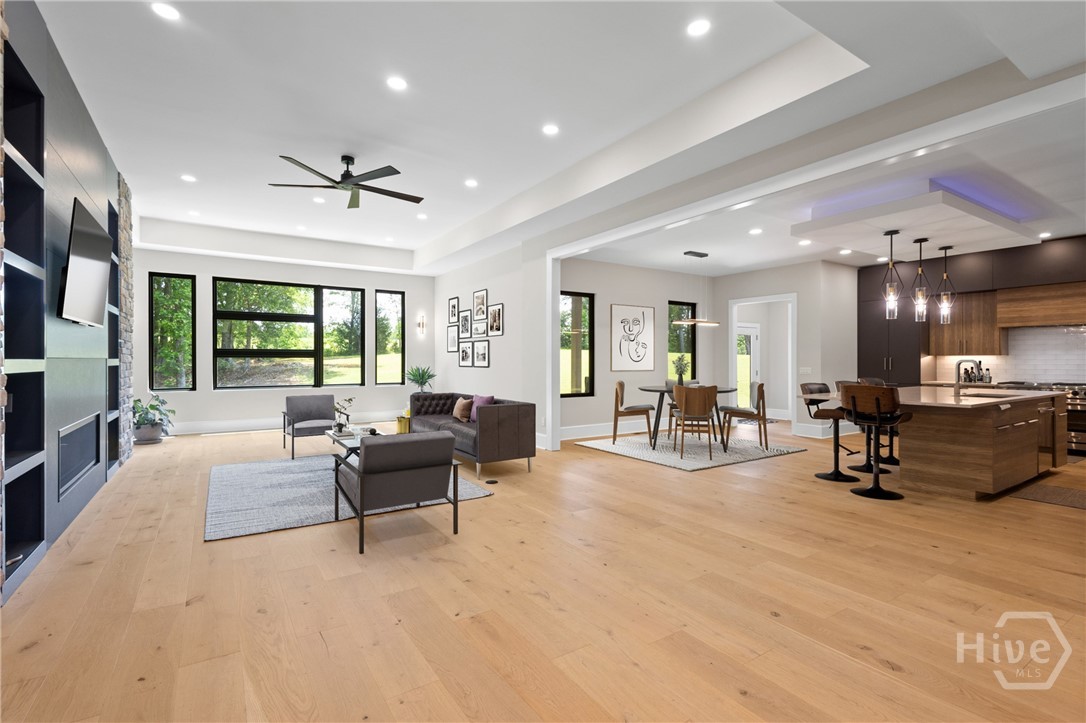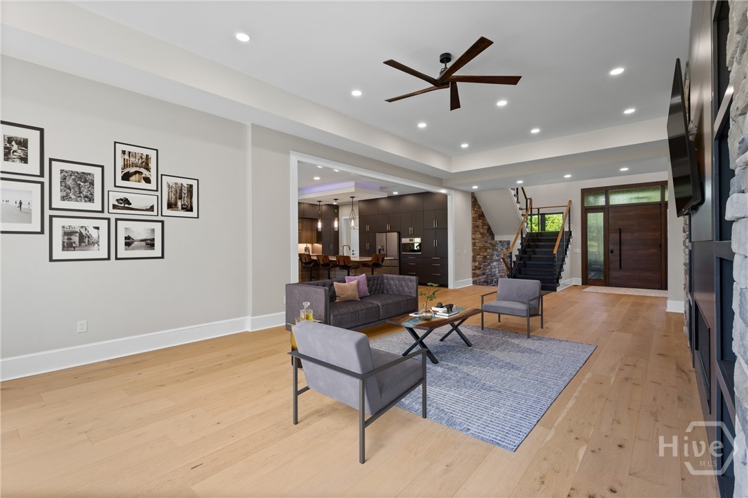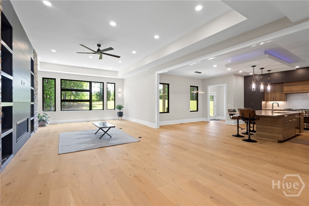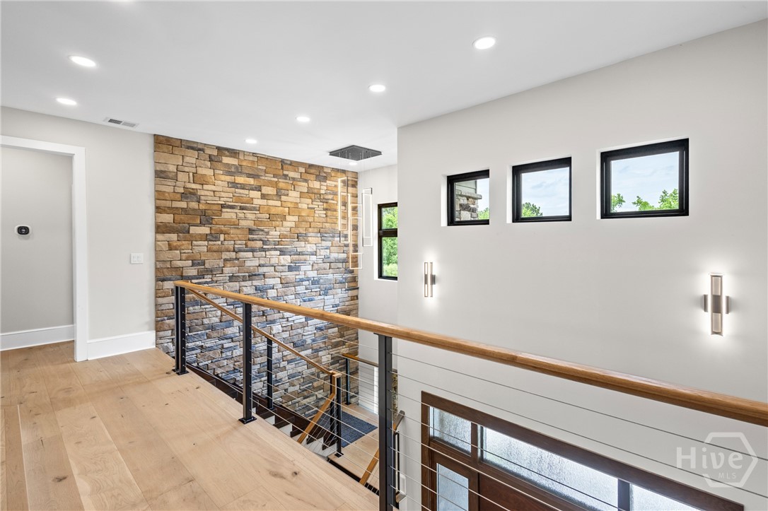 Welcome to a striking contemporary residence located within an exclusive gated community in highly sought-after North Oconee. Designed for elevated living, this home offers a modern open-concept floor plan with high-end finishes throughout, including custom melamine cabinetry, sleek countertops, luxury dimmable lighting, and custom closets. The European-inspired kitchen features a statement island, stainless steel appliances, and a cozy breakfast area, flowing seamlessly into the family room highlighted by a dramatic 5-foot linear fireplace framed in brushed granite—ideal for both entertaining and everyday living. The main level hosts an oversized primary suite with a sitting area and spa-like ensuite bath complete with floating double vanities, a marble shower floor, polished porcelain tile, and a spacious custom walk-in closet. A secondary main-level bedroom with full bath and walk-in closet is perfect for guests or multigenerational living. Upstairs includes a spacious media room, three additional bedrooms, and two full baths. The finished basement expands the living space with a second family room, office, exercise room, wine cellar/vault, and ample storage. Enjoy a private backyard retreat with a covered Trex deck and patio, ideal for relaxing or entertaining. Just 15 minutes from UGA, this exceptional home is truly a must-see. Schedule your private showing today.