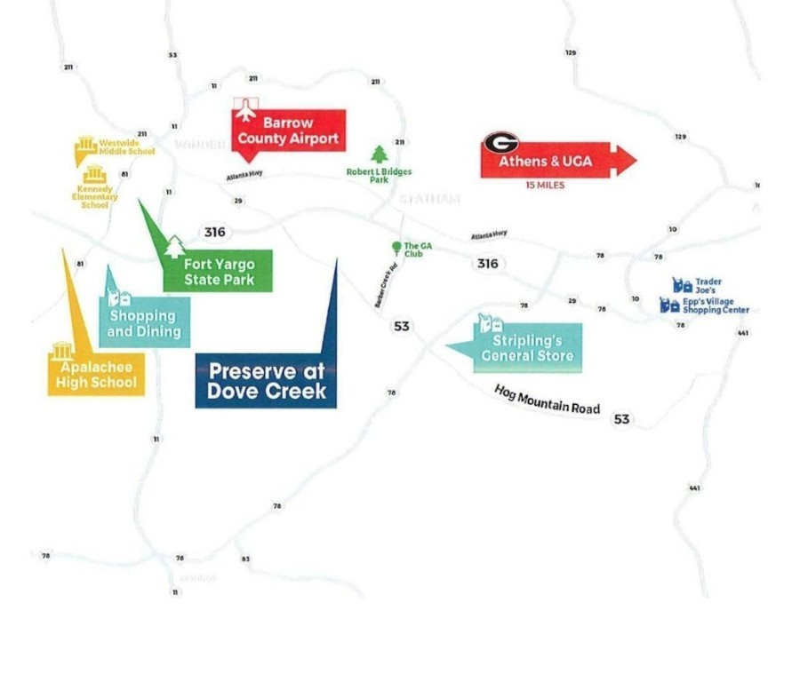 SPECIAL LOW RATES AND SELLER PAID CLOSING COSTS ON SELECT INVENTORY!! This stunning Galen plan by DR HORTON is a 4BR/ 2.5BA two-story home that combines comfort and style. The open-concept kitchen overlooks the spacious family room and features granite countertops throughout, LVP flooring, stainless steel appliances, tile backsplash, and more. A flexible dining/office area provides added versatility for your lifestyle. The family room is open from the kitchen & b’fast area and boasts corner fireplace. Upstairs, the spacious primary suite offers a relaxing retreat with trey ceiling, dual vanity, tiled shower, and a large walk-in closet. The upper level also includes three generously sized secondary bedrooms, full bathroom and laundry room. ALL Homes are equipped with a Smart Home System. DOVE CREEK FEATURES A POOL, TENNIS COURTS, PICKLE BALL, WALKING TRAILS, PLAYGROUND, and a CLUBHOUSE. You’ll be just minutes from Athens and FORT YARGO STATE PARK with easy access to US-29. Photos used for illustrative purposes and do not depict actual home. Incentives and prices are subject to change at any time. Preserve at Dove Creek is a 100% USDA FINANCING qualified neighborhood.