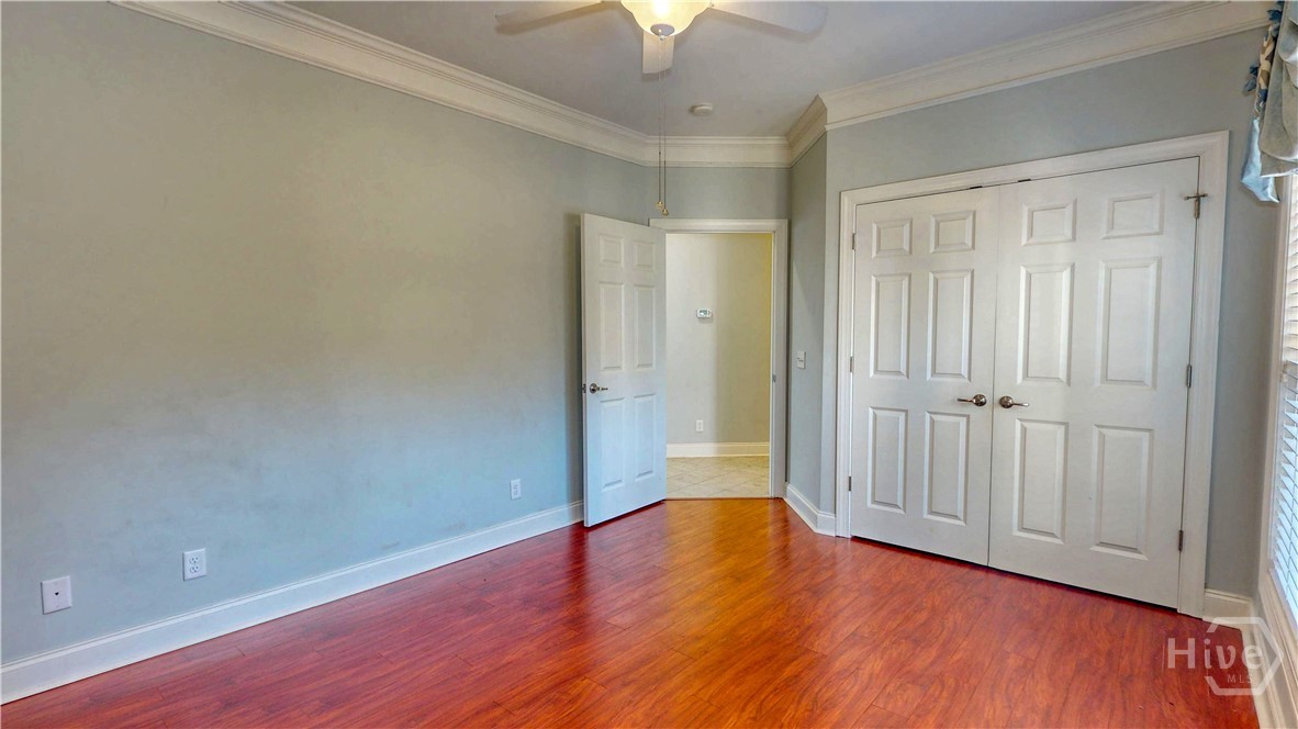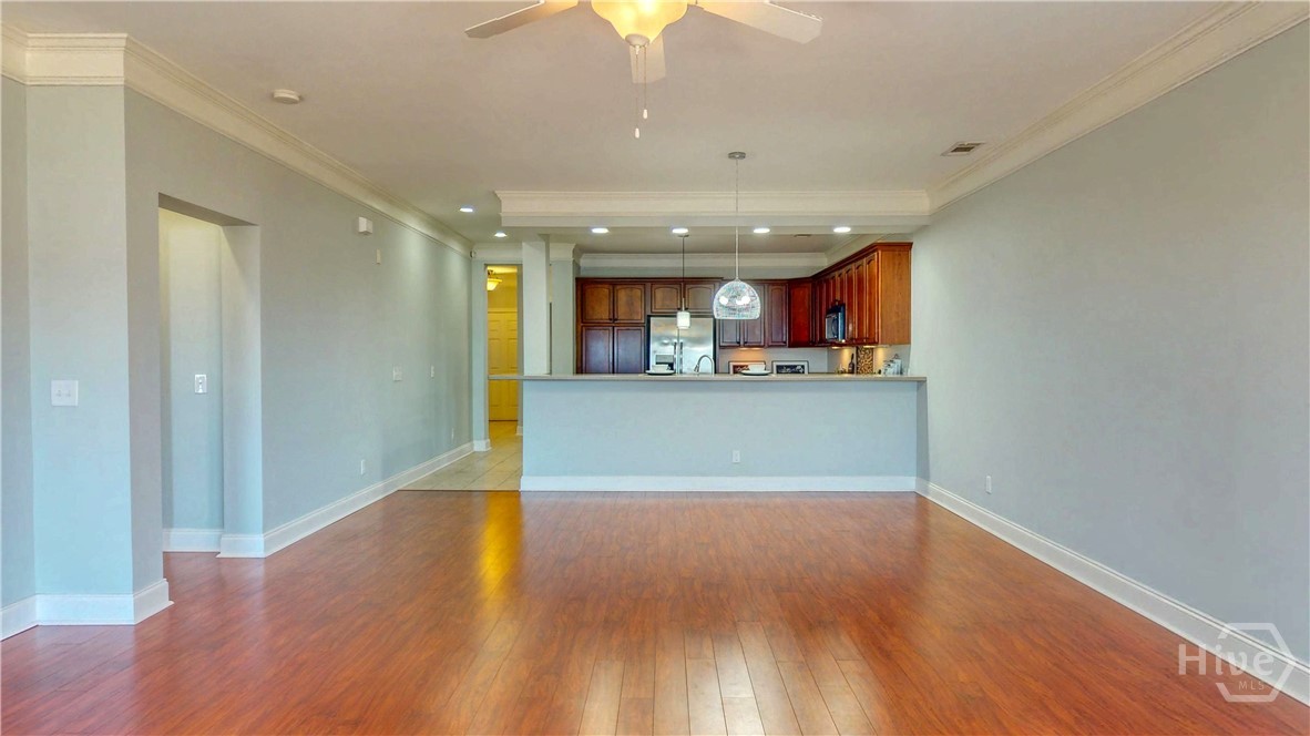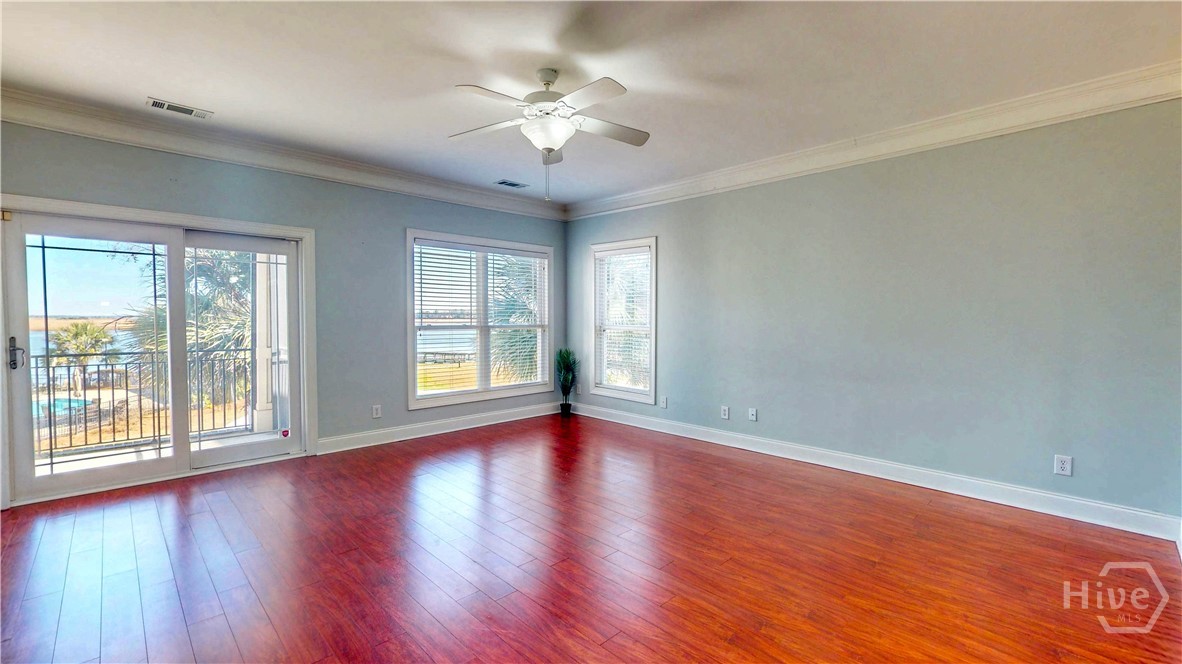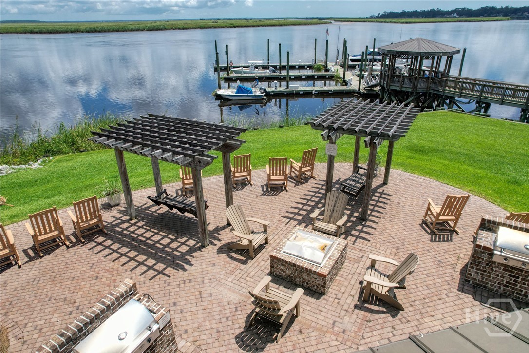 Step off the elevator to the front door of your deep water condo that overlooks the large swimming pool and has panaramic views of the Ogeechee River. There is a fitness center and gazebo just off your screened porch. The home features high ceilings, a breakfast bar, double vanities and ceiling fans, that creates a bright and airy atmosphere. There is a two-car garage with ample storage, and the HOA fee covers exterior upkeep, ensuring a low-maintenance lifestyle. the roof was just replaced last year. Trash collection is also included in the HOA!