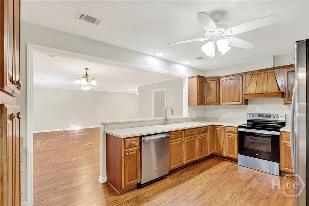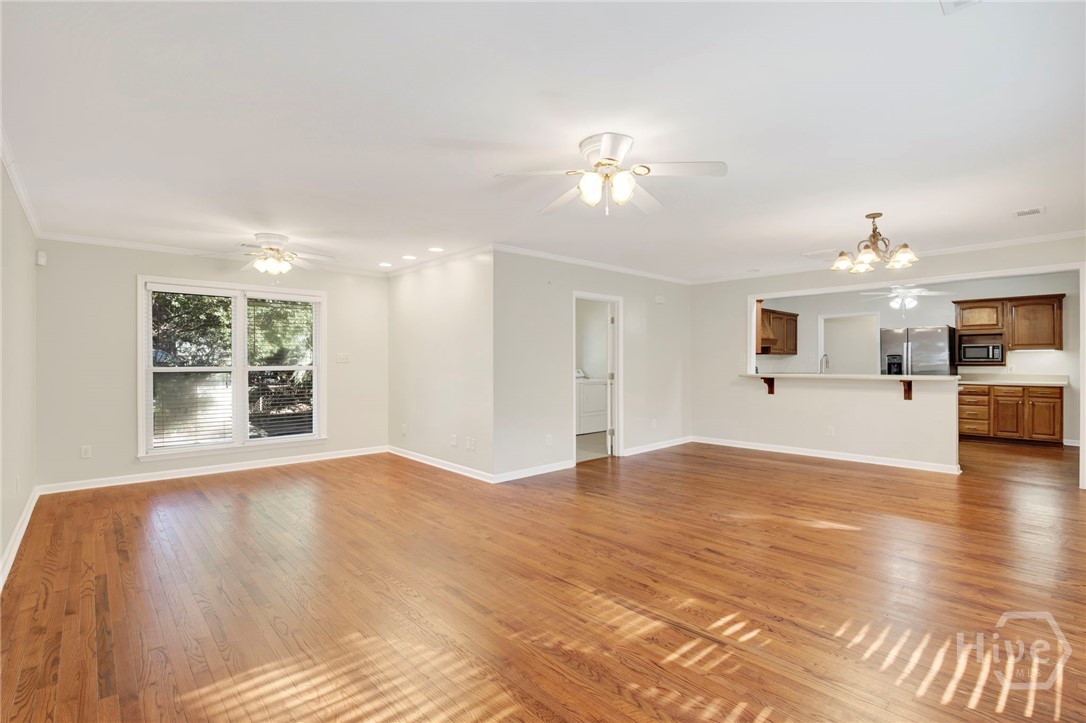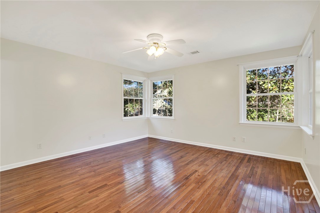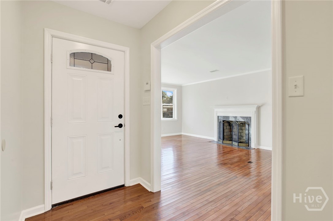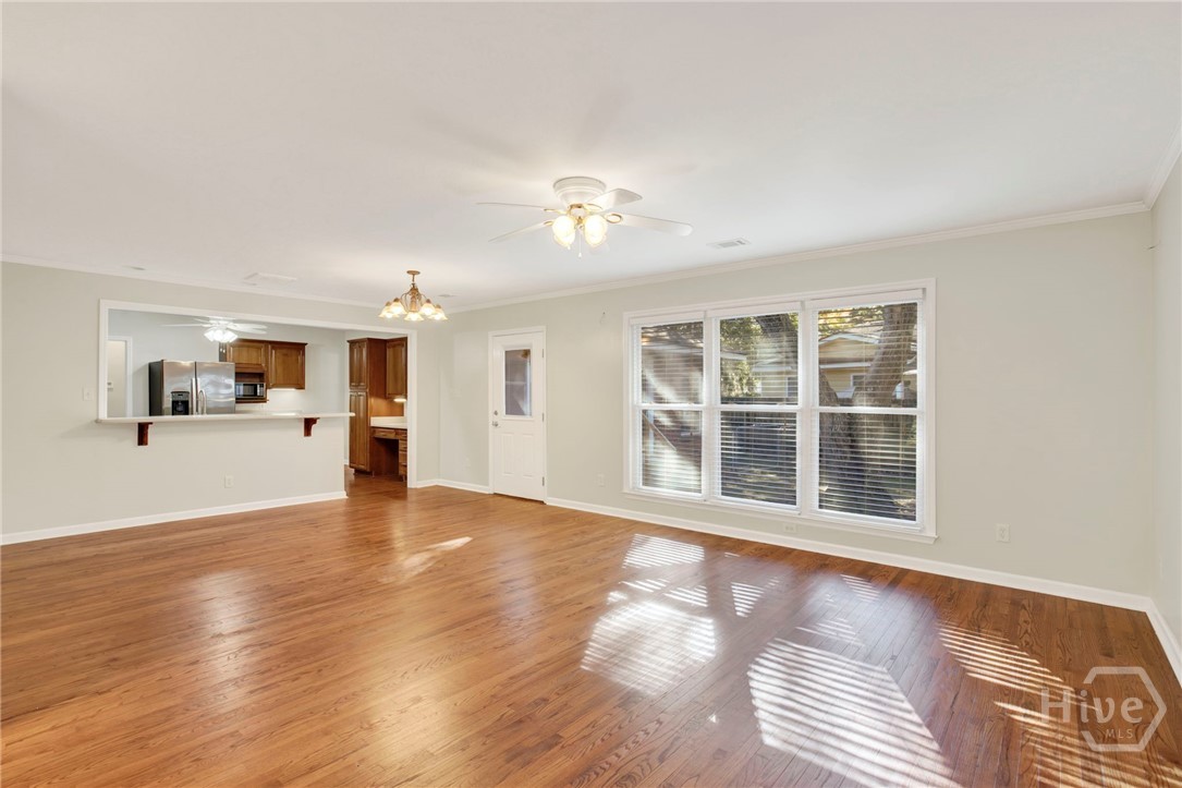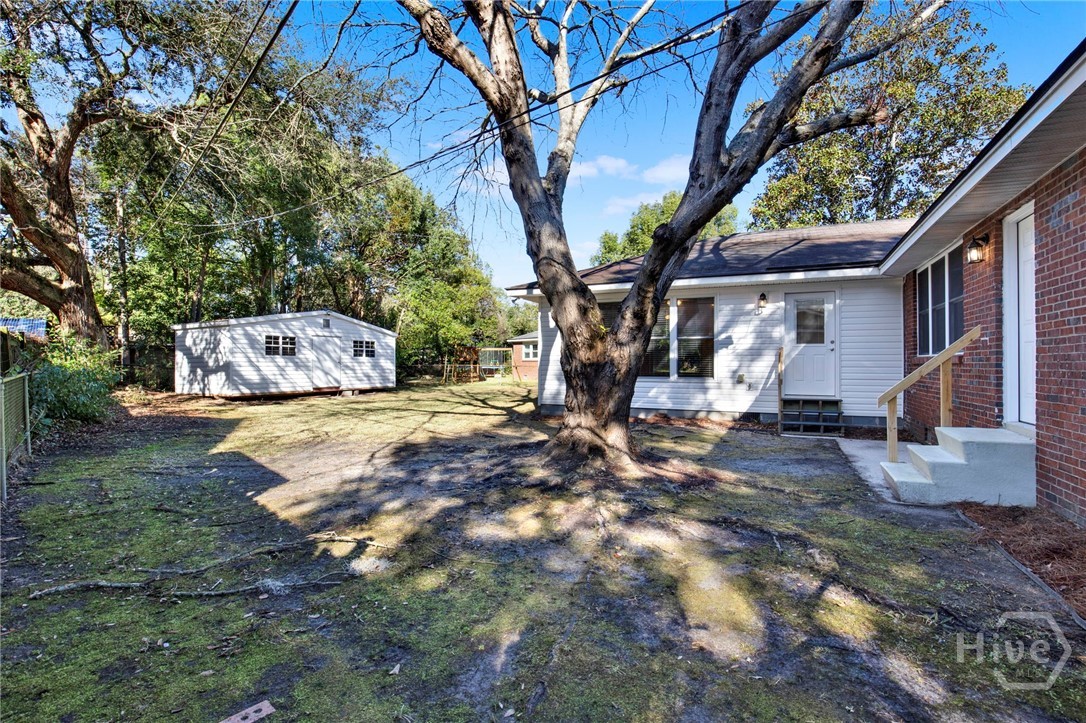 Attractive New Pricing! Classic, move-in ready, brick ranch on a winding, tree-canopied drive in desirable Kensington Park. Built in 1957, this spacious 4 BD, 2 BA home on a generously sized lot was completely renovated in 2004, retaining the original floor plan and adding the 4th bedroom (about 240 sf) w private entrance as well as a huge bonus/flex space off the kitchen. Renovations completed in early 2026 include updating both bathrooms in a contemporary style, and adding fresh paint & updated hardware thru-out the home. This is an inviting house, w numerous double-pane windows offering views of the lush yard & natural surroundings, including live oaks & camellias. Natural light puts a daytime gleam on the newly refurbished hardwood floors. Elegant living room w fireplace and dining room w built-in cabinetry are tastefully finished w crown molding. Spacious kitchen features brand new SS GE appliances, pantry closet w soft-touch drawers, a built-in counter desk, & breakfast bar. Just beyond the kitchen, the flex/bonus space is wired for sound w enough space (about 480 sf) for both an office & casual living/play space/home theater – or whatever you desire. Master features renovated en suite w/glass-door shower & the bedroom (about 203 sq ft) boasts 2 sets of lovely architectural corner windows. All bedrooms receive plenty of sunlight & have good-sized closets. Laundry room has a folding area, lg utility closet & outside access. Ceiling fans thru-out; all closets are lighted, including the double hall and coat closets. Backyard offers open space & foliage as well a 25X15-ft workshop w electricity, perfect for woodworking, artist studio, big projects, or storage. Minutes from Starland & Downtown Savannah, hospitals, Publix & Fresh Market, shopping (Talbots, J Jill, Jos. A Bank), services & more. This livable gem won’t last. See it today!