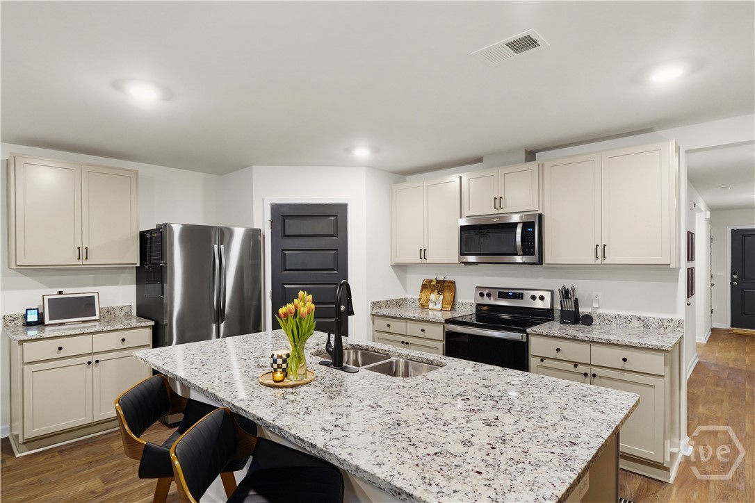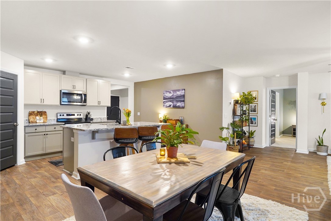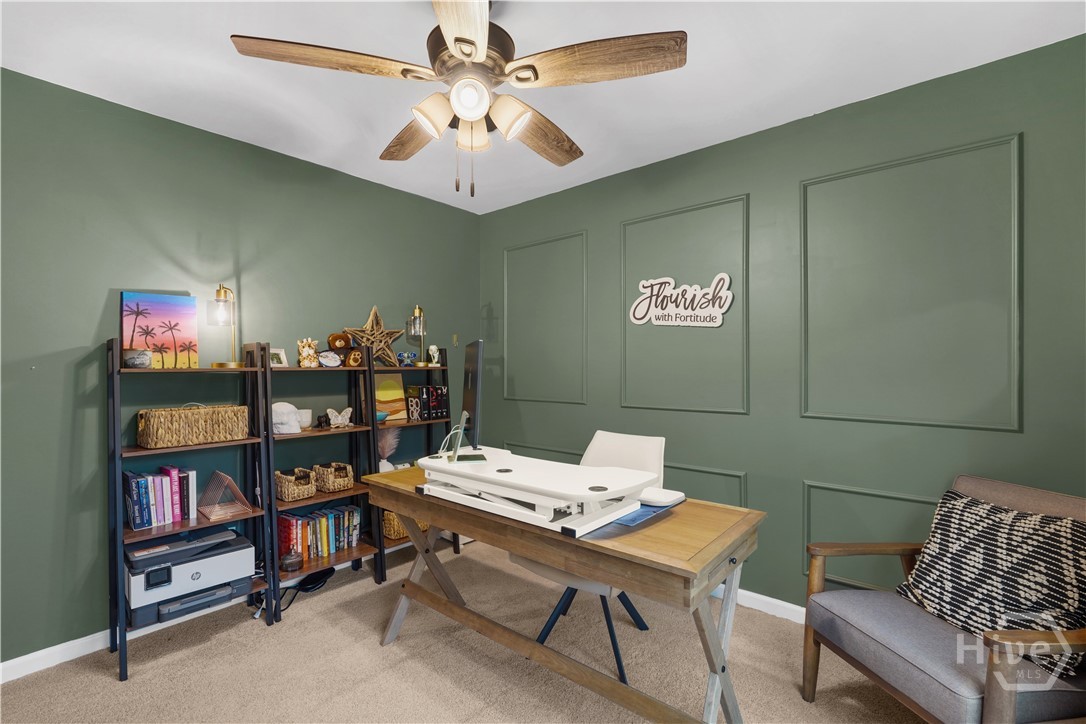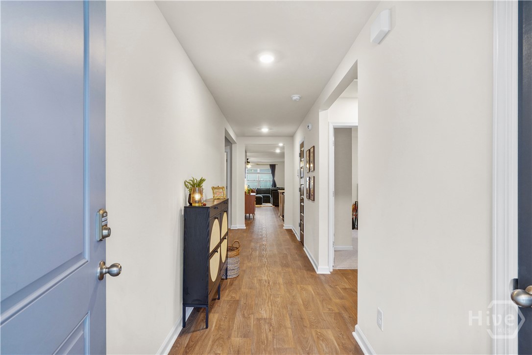 Move-in ready 4BR/2BA with fully finished garage, stainless steel appliances included, screened-in patio, and fully fenced backyard- all upgrades done for you, no waiting required! Welcome home to 394 Coconut Drive! Perfectly positioned on a desirable corner lot, this well-maintained 4-bedroom, 2-bath home features a mostly open-concept design, with the kitchen, dining, and living areas flowing together, and a private primary suite separated from the additional bedrooms. The primary suite offers two closets for excellent storage and convenience. Major home systems are less than three years old, providing peace of mind for years to come. The fully finished garage includes pegboard walls and built-in storage, ideal for organization, hobbies, or a workshop setup. Inside, enjoy ceiling fans throughout and stainless steel appliances in a comfortable, move-in-ready space. Step outside to a screened-in patio overlooking a fully fenced backyard with low-maintenance vinyl fencing, beautifully accented with rose bushes and azaleas, creating a peaceful outdoor retreat perfect for relaxing or entertaining. Located in an amenity-rich community featuring a pool, fitness center, playground, volleyball court, and a scenic pond for canoeing. Conveniently located 45 minutes from Fort Stewart, under 30 minutes to Hunter Army Airfield, and 25 minutes or less to downtown Savannah, with Costco less than 15 minutes away and Pooler Tanger Outlets just 20 minutes away. This home truly combines comfort, convenience, and community living. Schedule your showing today! Seller is a licensed real estate agent.