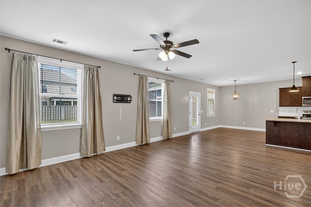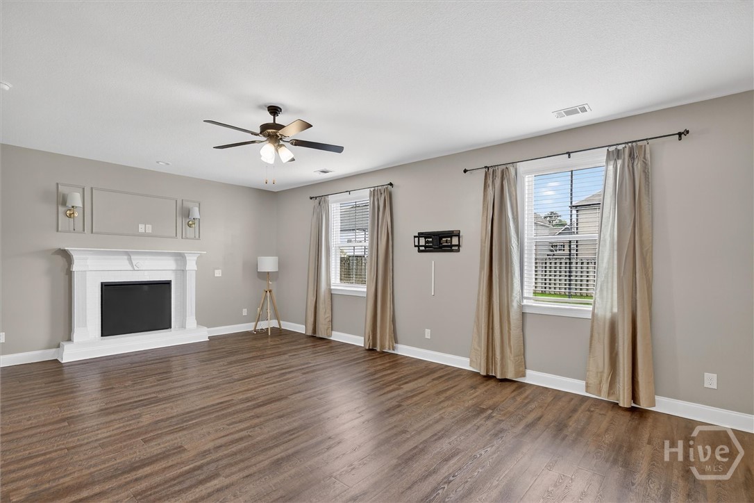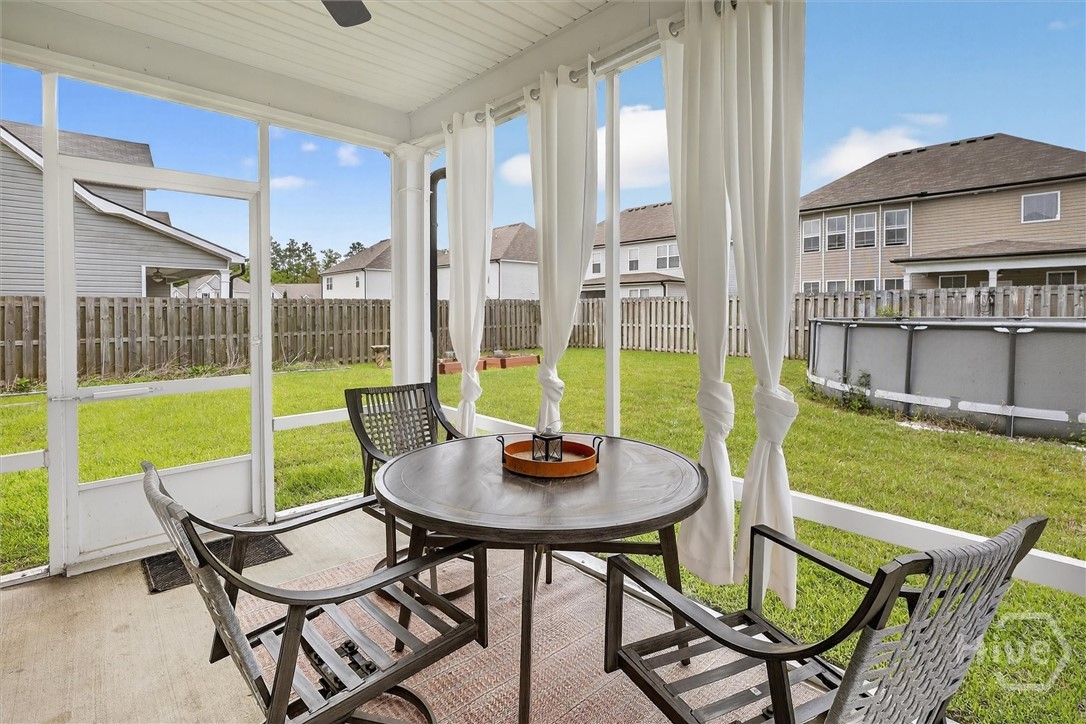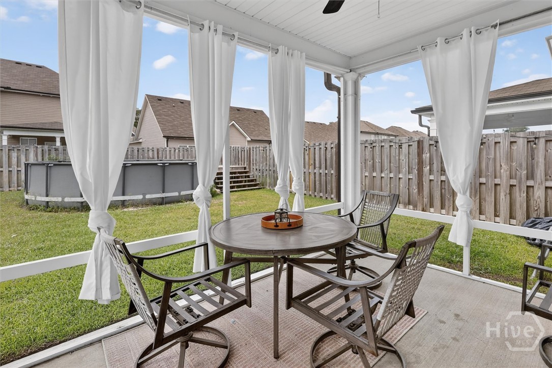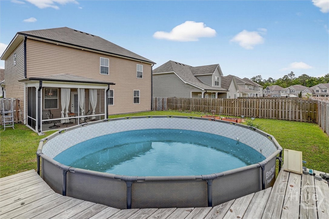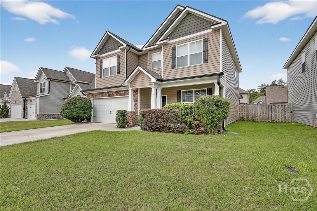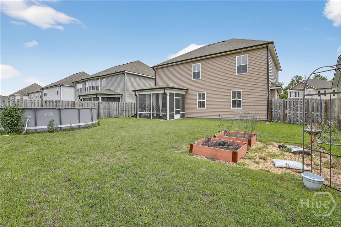 Having only one owner, this 4-bedroom, 2.5-bath property, built in 2022, is located in the Woodlands subdivision of South Effingham. The home features luxury vinyl plank flooring throughout the main living areas, upgraded lighting fixtures, a spacious family room with an electric fireplace, and an eat-in kitchen. A flex room with a coffered ceiling on the main level provides additional space and may be used as a home office or formal dining room. The primary suite includes dual vanities, a separate tub and shower, and a walk-in closet. You’ll find 3 large bedrooms upstairs. Additional features include a dedicated laundry room and a two-car garage. This fully fenced backyard is spacious, with a screened-in back porch, an above-ground pool with a deck, and raised flowerbeds. Don’t miss this move-in ready property!