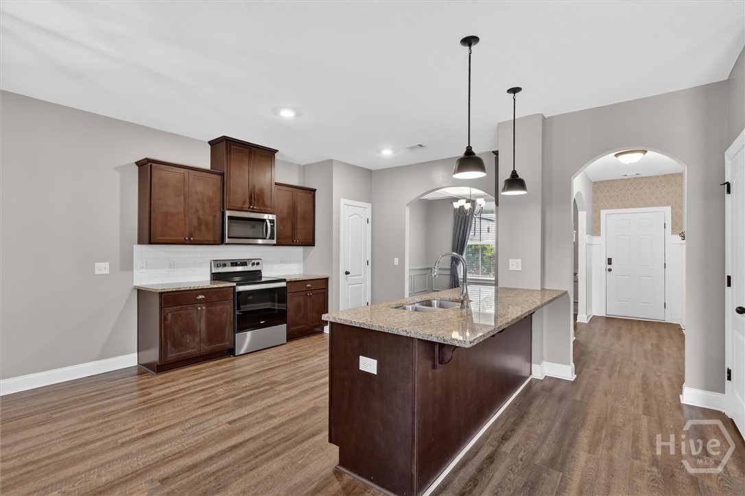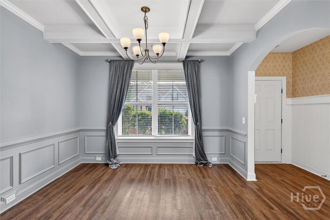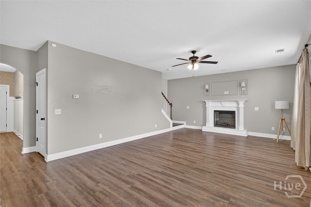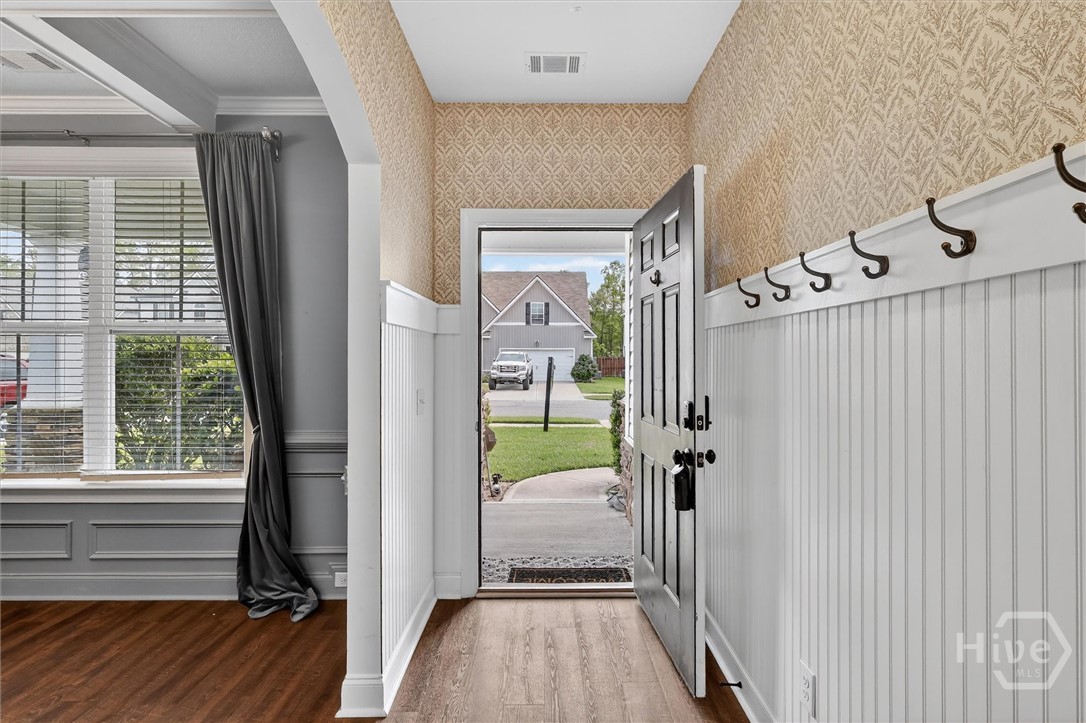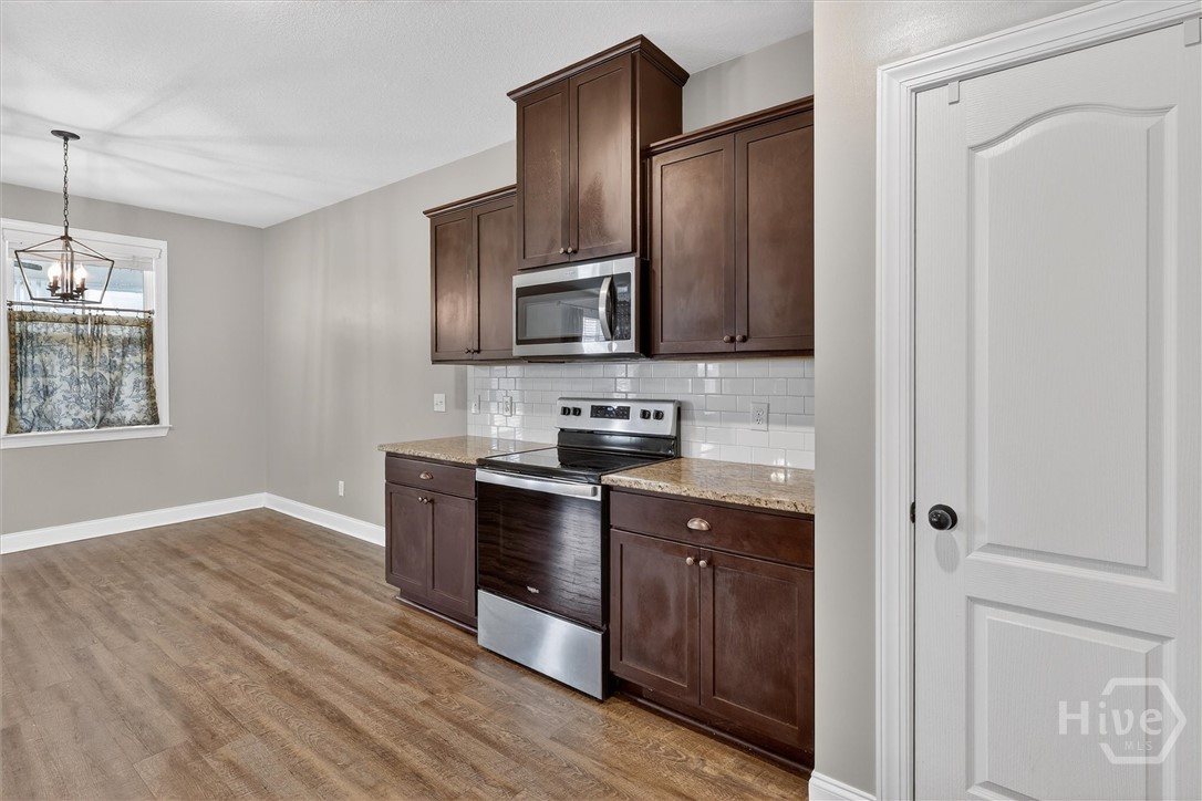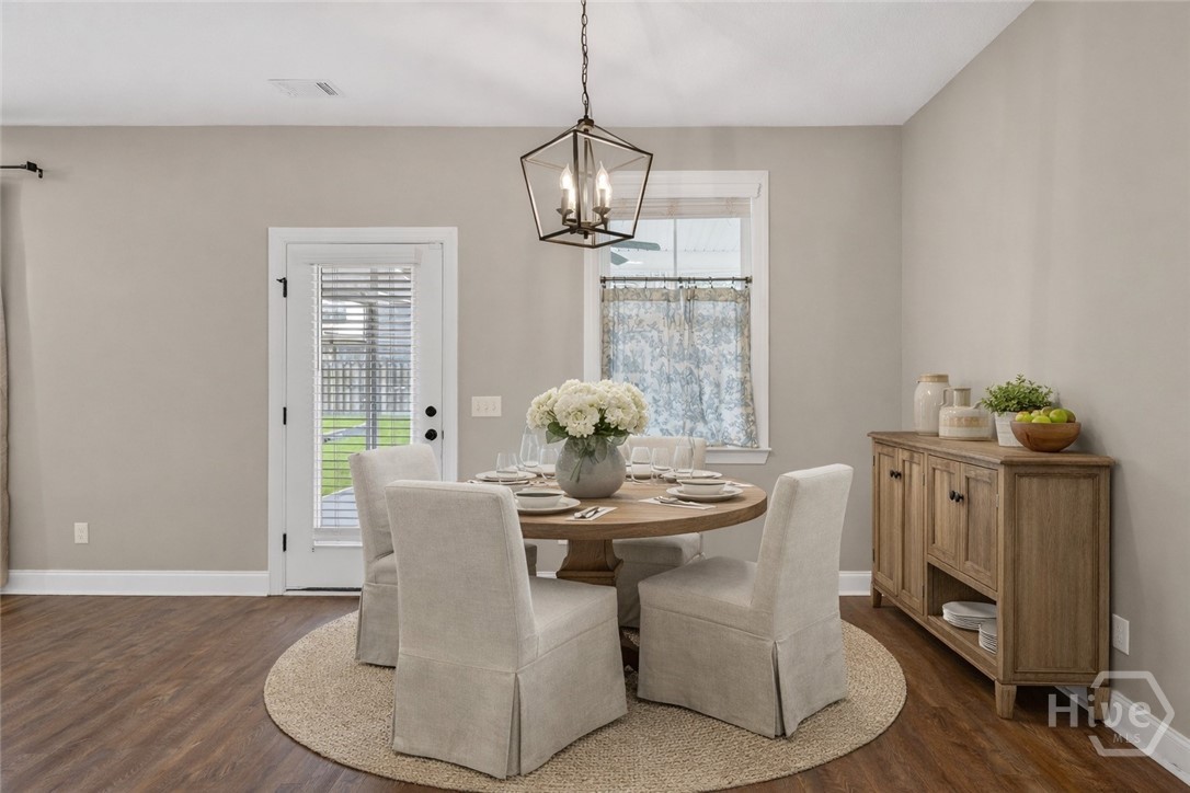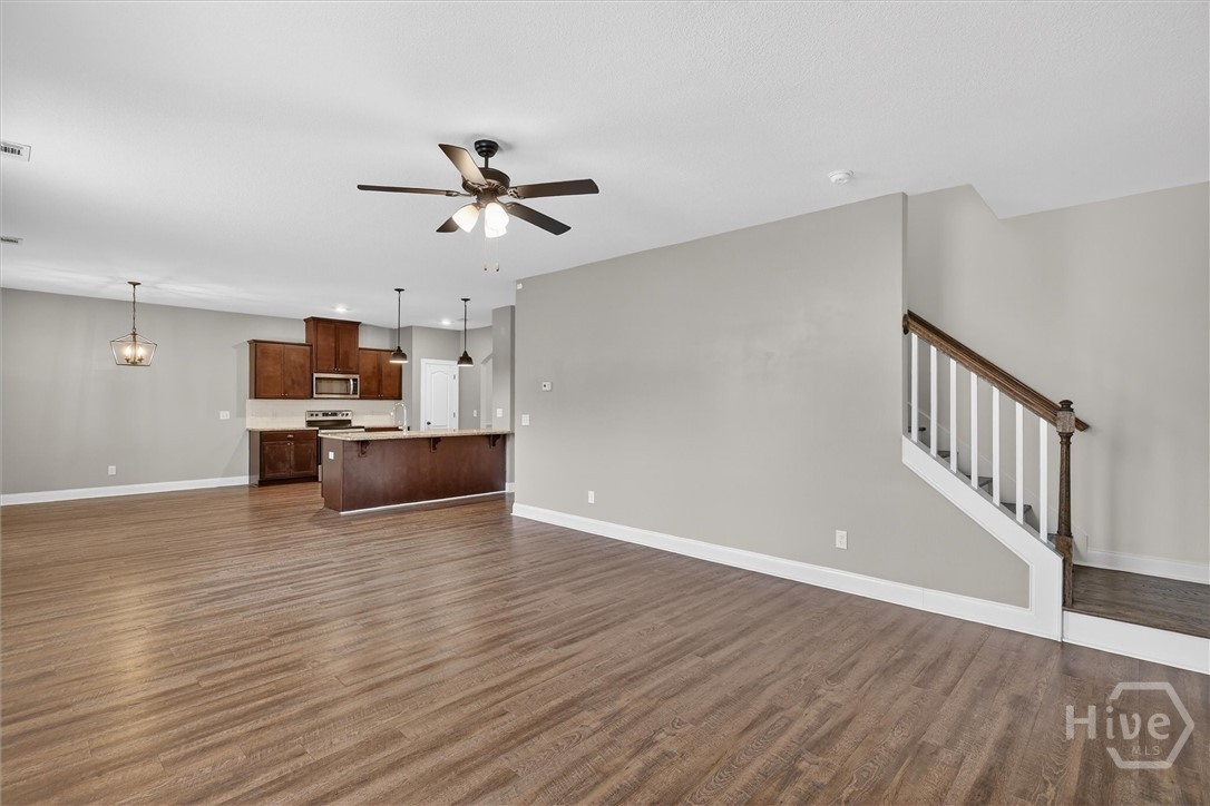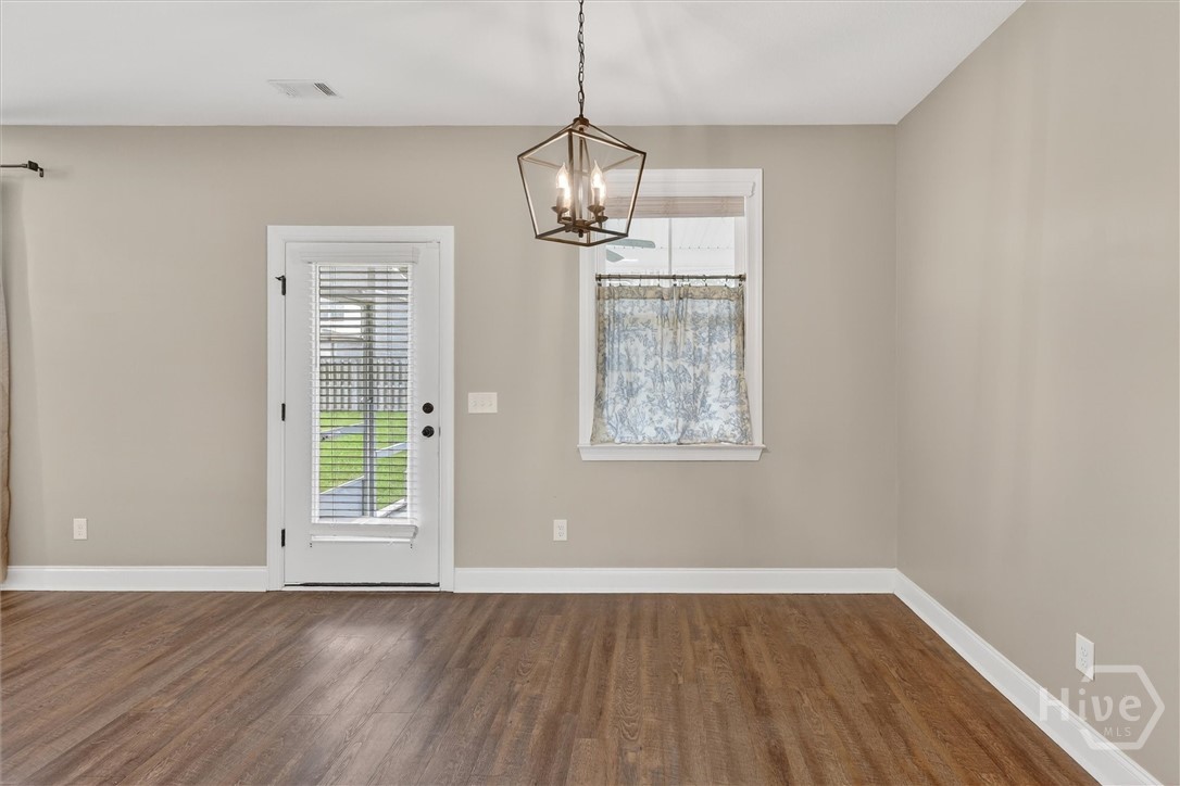 Having only one owner, this 4-bedroom, 2.5-bath property, built in 2022, is located in the Woodlands subdivision of South Effingham. The home features luxury vinyl plank flooring throughout the main living areas, upgraded lighting fixtures, a spacious family room with an electric fireplace, and an eat-in kitchen. A flex room with a coffered ceiling on the main level provides additional space and may be used as a home office or formal dining room. The primary suite includes dual vanities, a separate tub and shower, and a walk-in closet. You’ll find 3 large bedrooms upstairs. Additional features include a dedicated laundry room and a two-car garage. This fully fenced backyard is spacious, with a screened-in back porch, an above-ground pool with a deck, and raised flowerbeds. Don’t miss this move-in ready property!