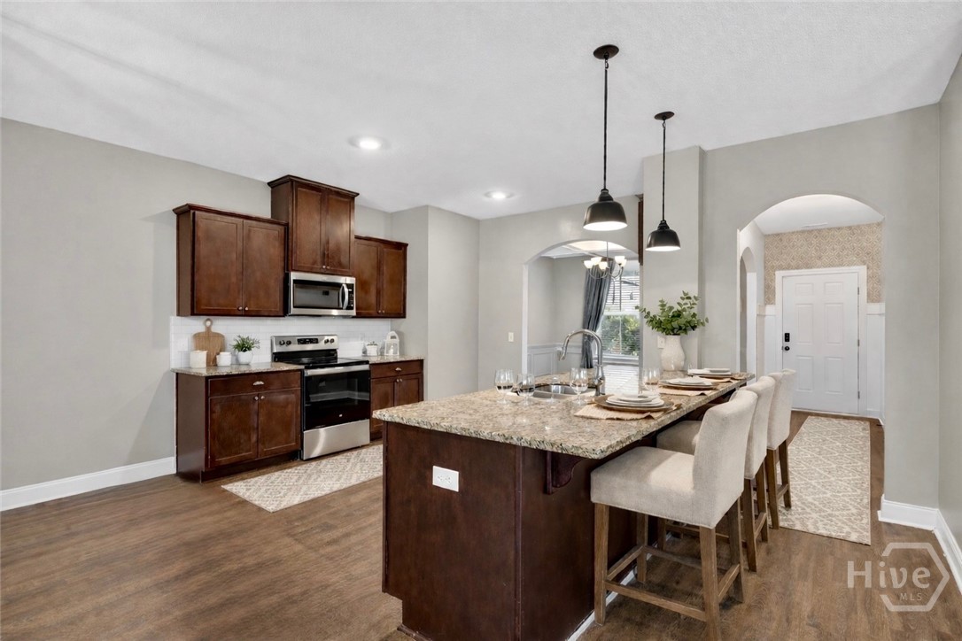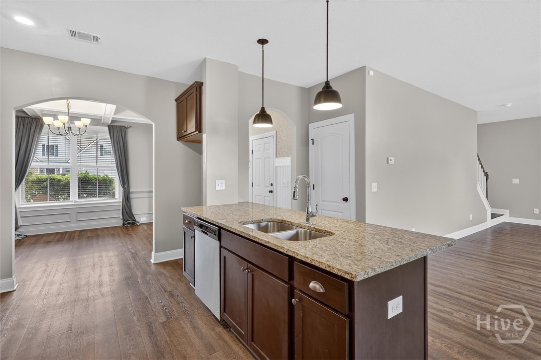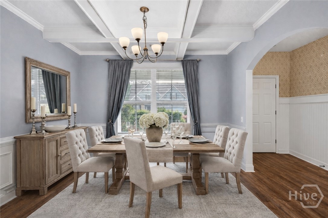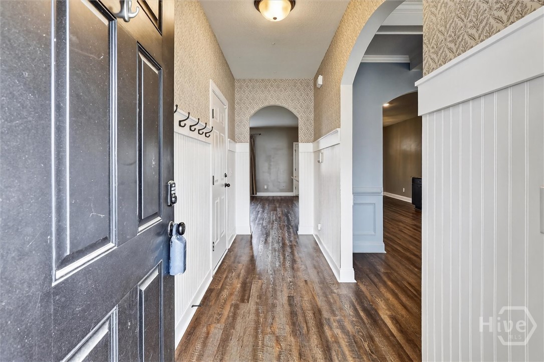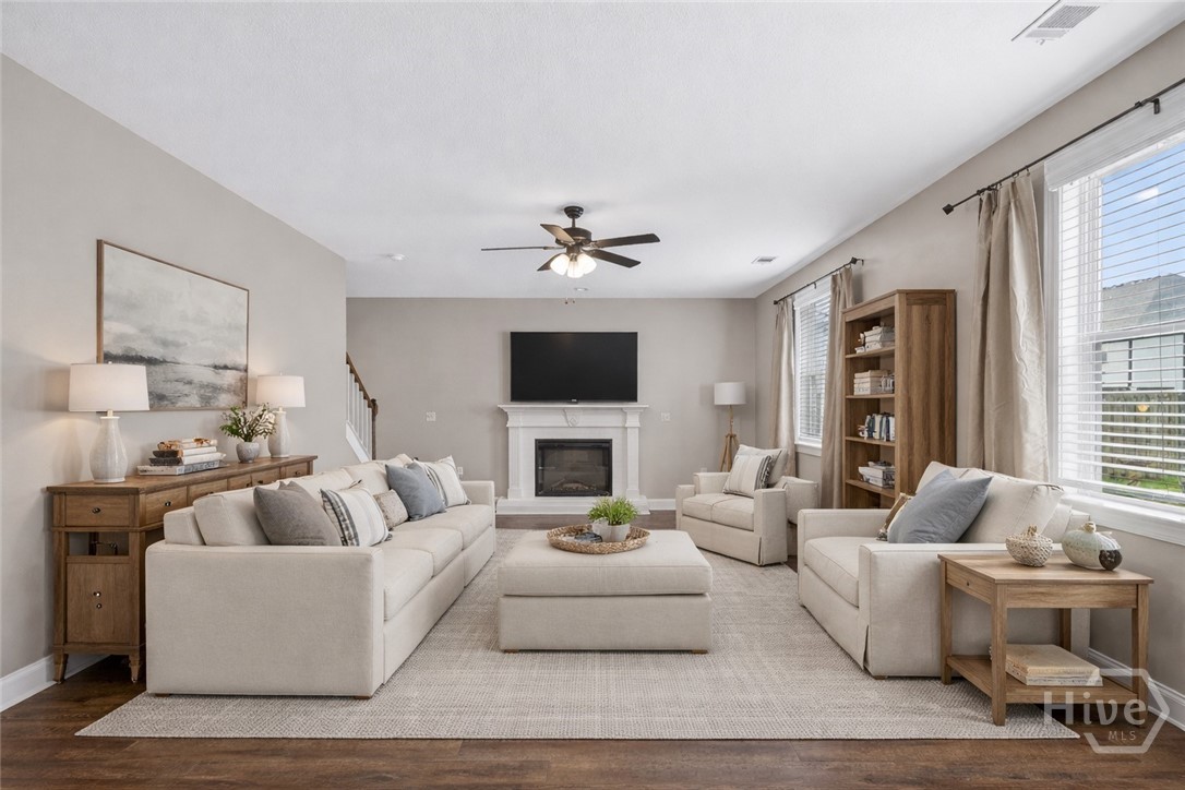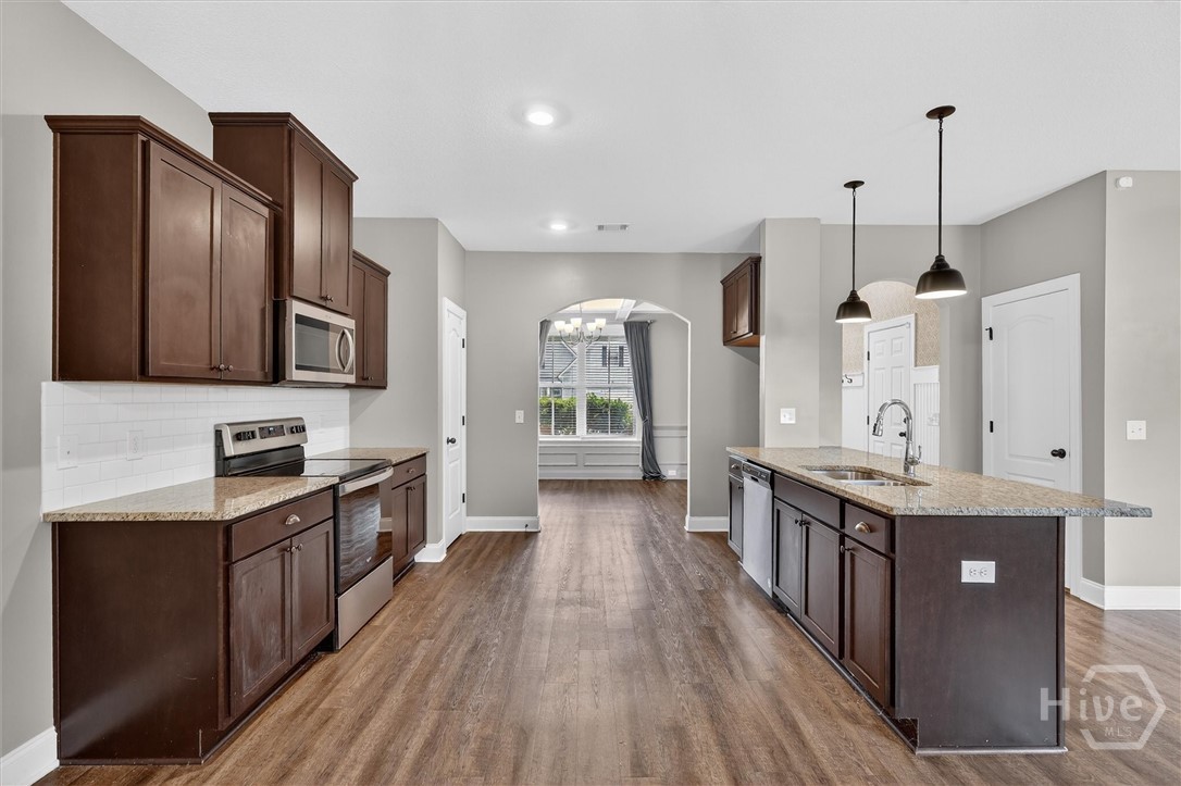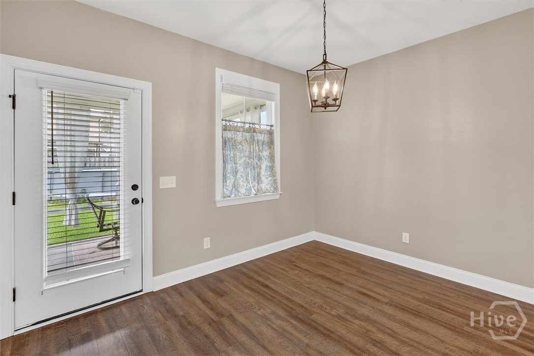 Having only one owner, this 4-bedroom, 2.5-bath property, built in 2022, is located in the Woodlands subdivision of South Effingham. The home features luxury vinyl plank flooring throughout the main living areas, upgraded lighting fixtures, a spacious family room with an electric fireplace, and an eat-in kitchen. A flex room with a coffered ceiling on the main level provides additional space and may be used as a home office or formal dining room. The primary suite includes dual vanities, a separate tub and shower, and a walk-in closet. You’ll find 3 large bedrooms upstairs. Additional features include a dedicated laundry room and a two-car garage. This fully fenced backyard is spacious, with a screened-in back porch, an above-ground pool with a deck, and raised flowerbeds. Don’t miss this move-in ready property!