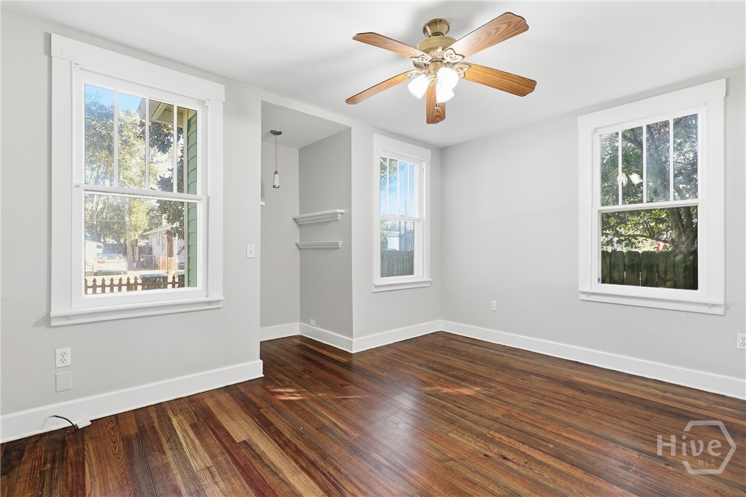 Classic Southern charm meets everyday functionality in this beautifully designed 3 bedroom, 2 bath home with a versatile flex space perfect for a home office, playroom, or guest area. Hardwood floors flow throughout the living spaces and all bedrooms, while abundant natural light fills the home, creating a warm and inviting atmosphere. The kitchen is both stylish and functional, featuring quartz countertops and stainless steel appliances, ideal for daily living and entertaining. Step outside to enjoy a screened porch overlooking a private backyard, offering a peaceful retreat for relaxing or hosting friends. A welcoming Southern front porch adds to the home’s undeniable curb appeal, creating the perfect place to unwind and enjoy the neighborhood. Thoughtfully laid out with classic details and flexible living spaces, this home offers comfort, character, and versatility all in one. Conveniently located close to downtown Savannah & SCAD with easy access to the city’s dining, shopping, and historic charm blending classic style with an unbeatable location.