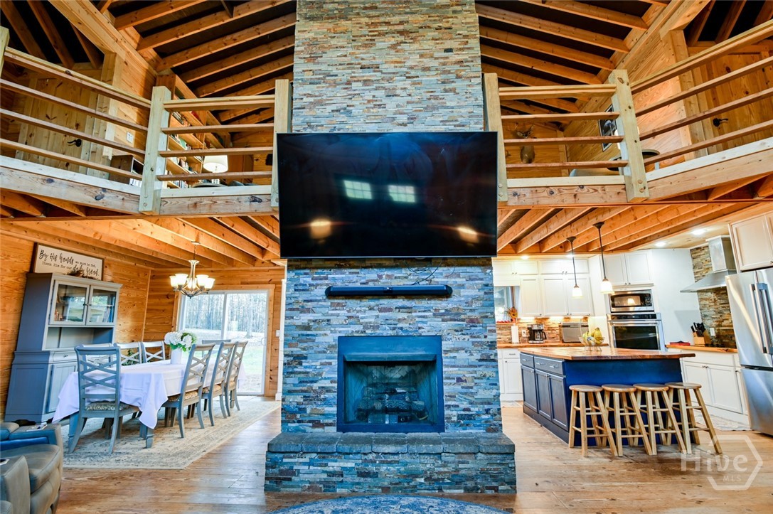 4 Bed | 2 Bath Farm-Style Home on 18+ Acres This beautiful farm-style home sits on over 18 acres of private land featuring walking trails, healthy hunting game, a large creek, underground spring, and irrigation system. The front of the property includes a possible additional home site with septic already in place. Outdoor amenities include a large covered animal kennel , pool with expansive deck, pergola with power and lighting, and an outdoor shower. A welcoming rocking-chair front porch adds classic country charm. Inside, the home offers knotty pine walls and floors throughout, high ceilings, and abundant natural light. A walk-in mudroom/laundry room features a stone dog-washing station. The great room and upstairs sitting loft each showcase masonry stone fireplaces, creating a warm mountain cabin feel. The spacious kitchen provides ample counter space, great lighting, and a stone backsplash. Bedrooms are generously sized, with a study currently used as a fourth bedroom and ample closet space. Natural slate wall accents are featured in the bathrooms and thoughtfully throughout the home. Deep closets and multiple attic storage areas provide excellent storage. With the property you are bonused with: a New Holland Tractor 75 horse power with a front loader, 6ft bush hog, 8ft box scrap, Car/tractor hauler trailer and a 2000 Ford Excursion V10 to pull Tractor. What more could you ask?
